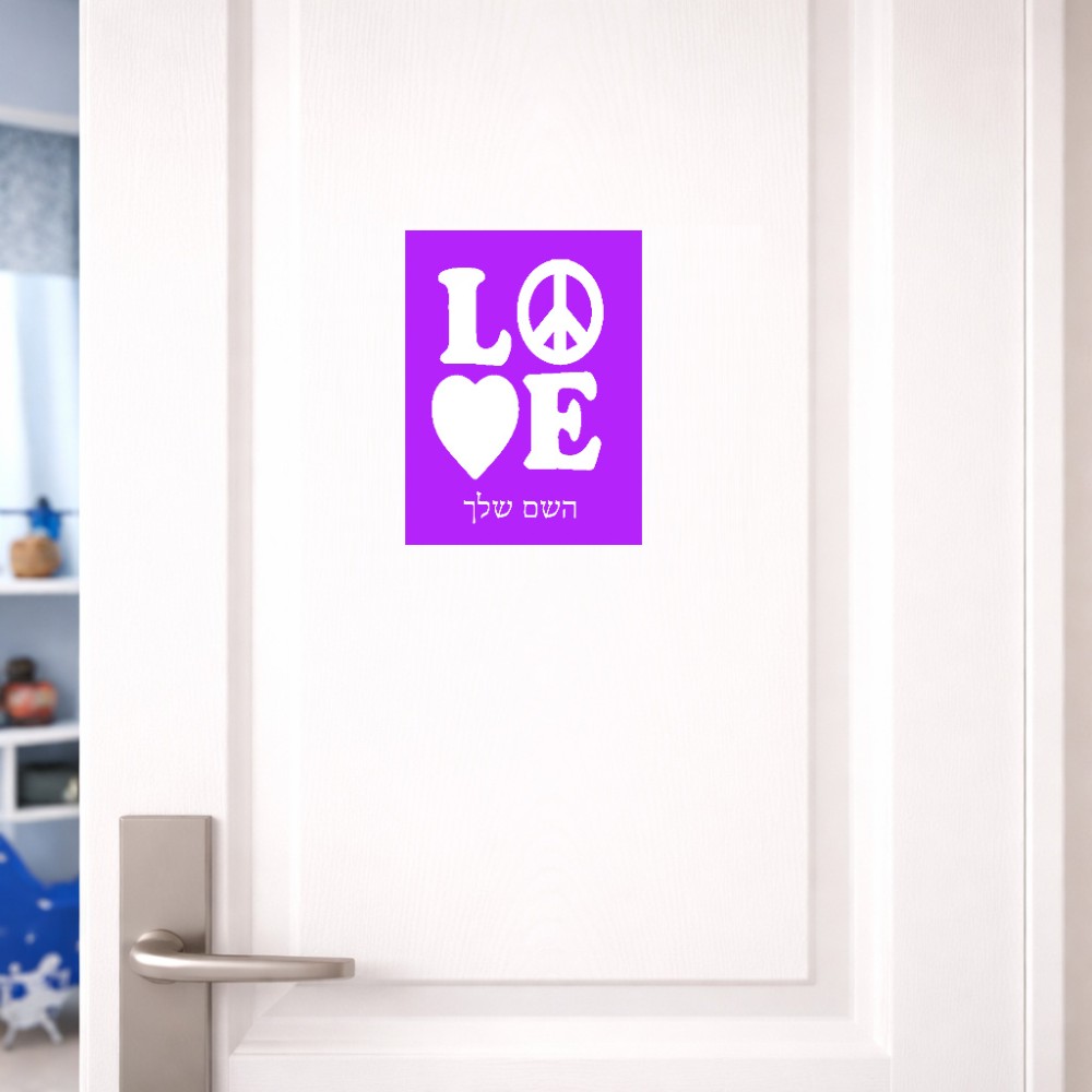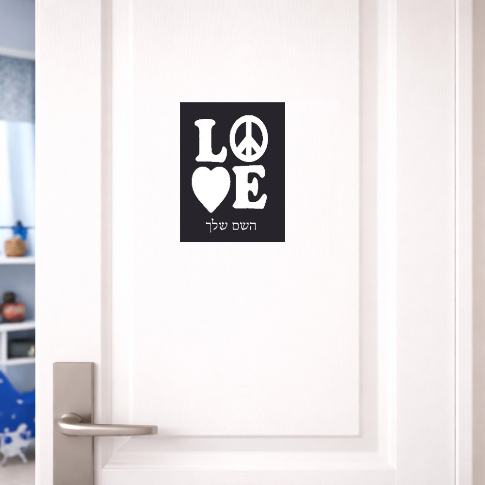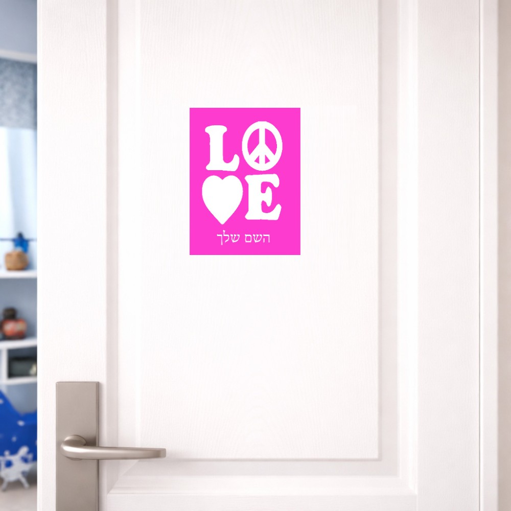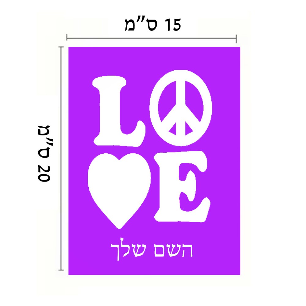 שלט אלומיניום קטן לחדר בעיצוב אישי עם השם שלך בעיצוב אהבה גודל השלט 15 × 20 ס"מ. את השם המבוקש ניתן לציין בהזמנה, אם לא צויין אנחנו ניצור קשר לבירור.