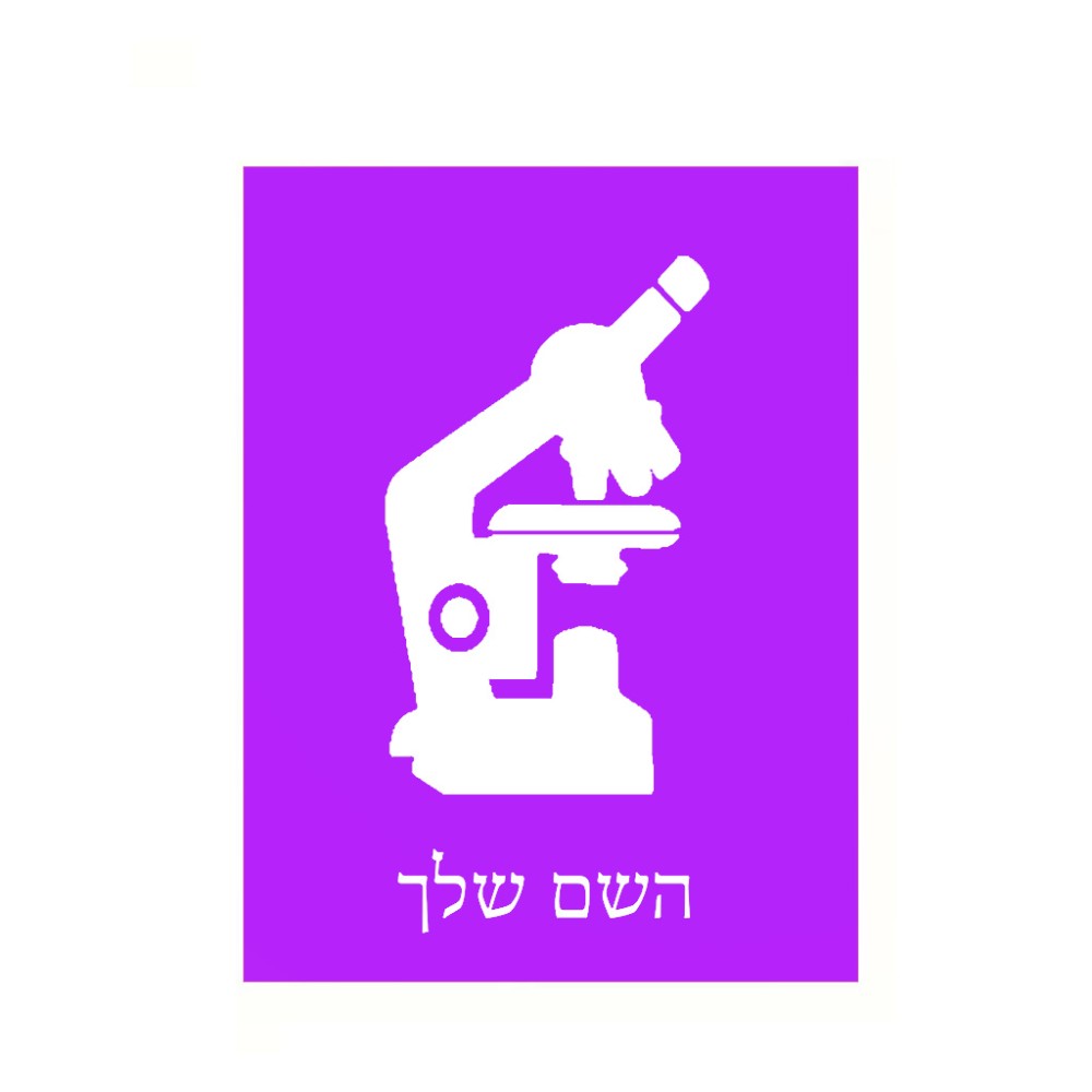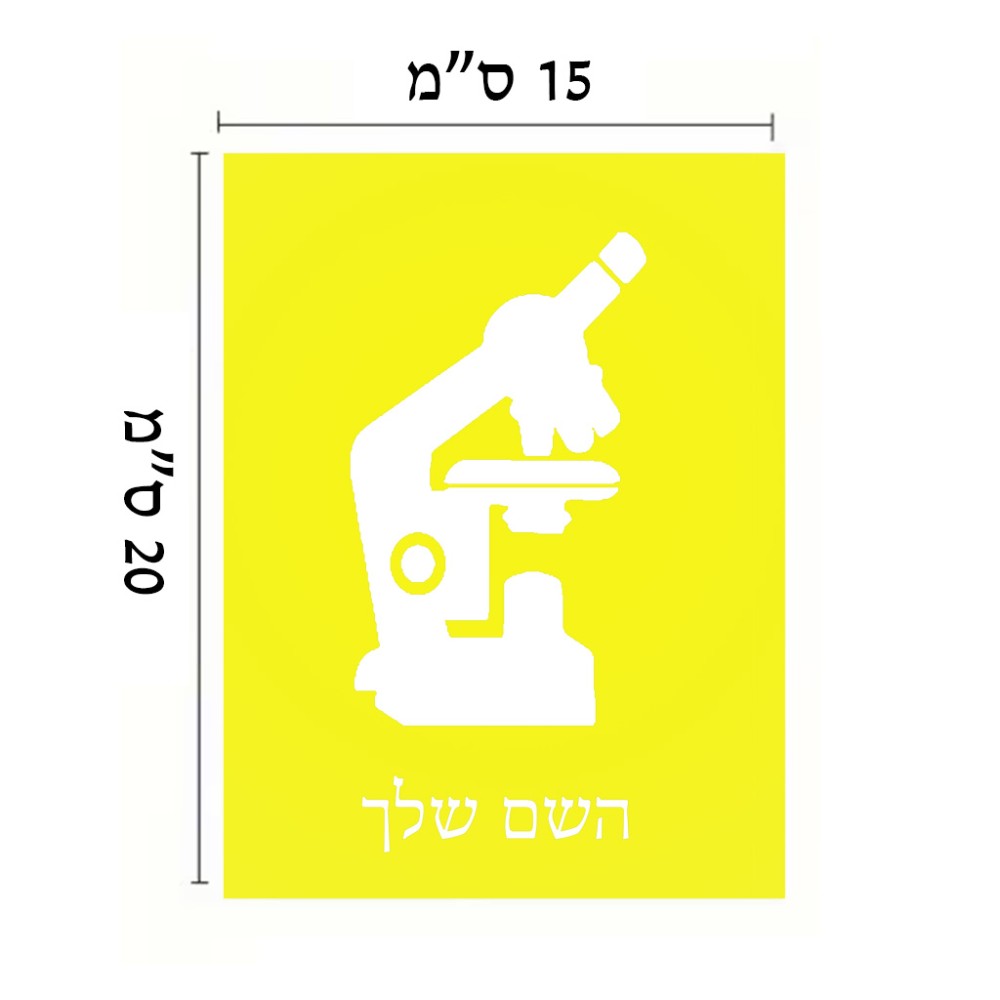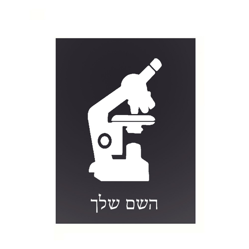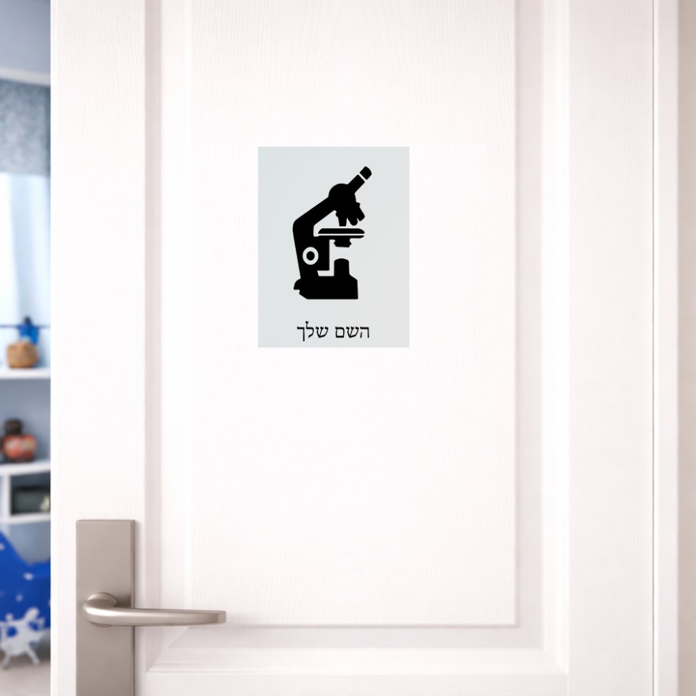 שלט אלומיניום קטן לחדר בעיצוב אישי עם השם שלך בעיצוב מיקרוסקופ גודל השלט 15 × 20 ס"מ. את השם המבוקש ניתן לציין בהזמנה, אם לא צויין אנחנו ניצור קשר לבירור.
