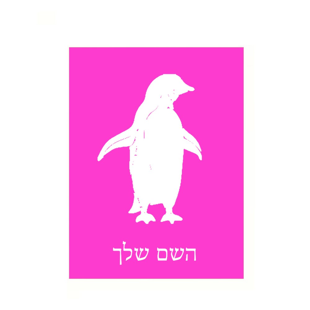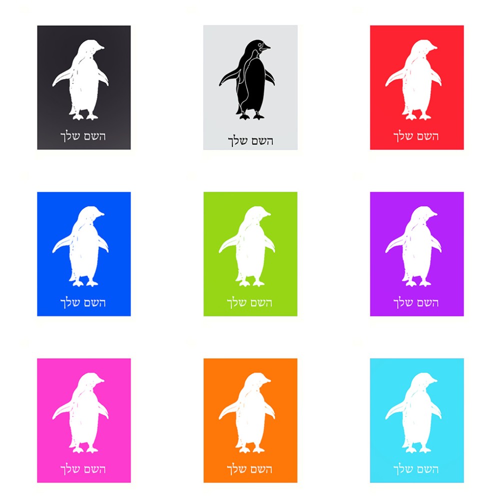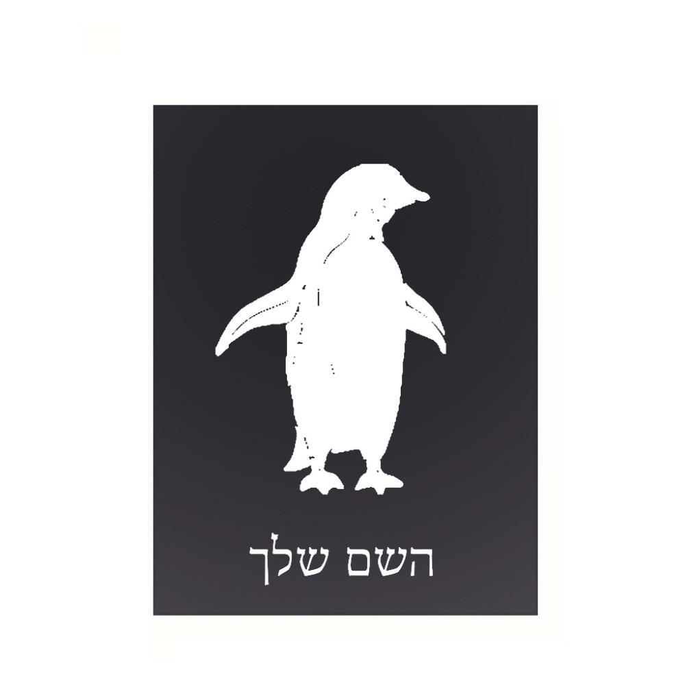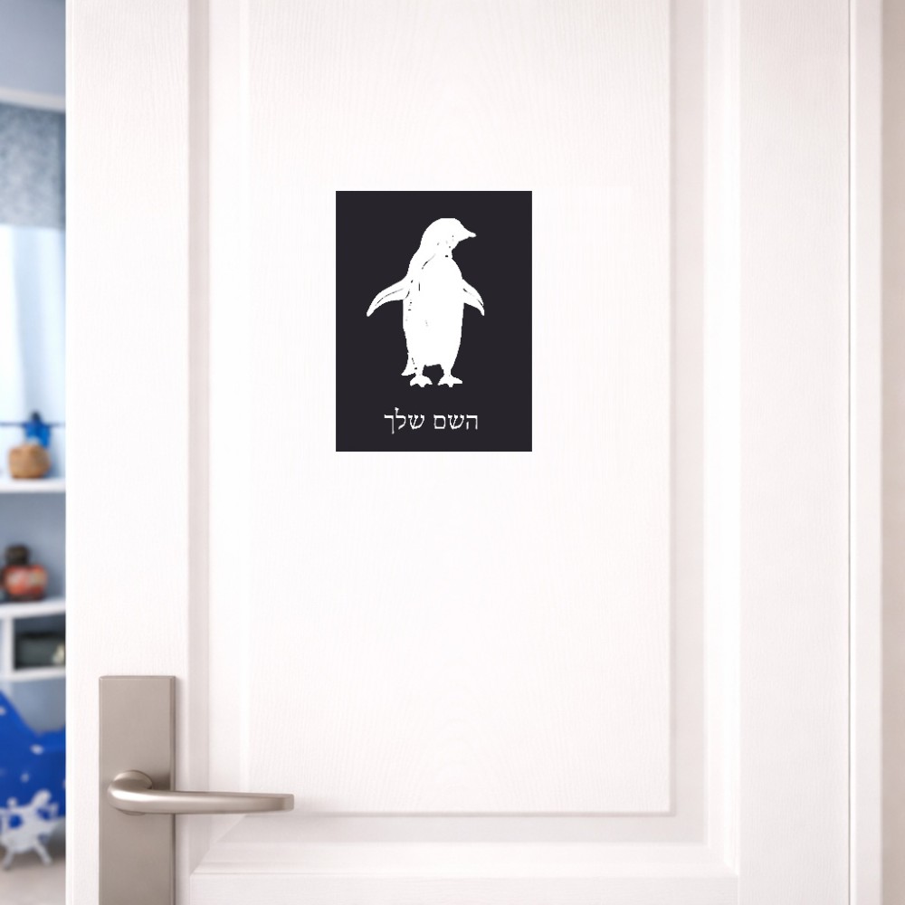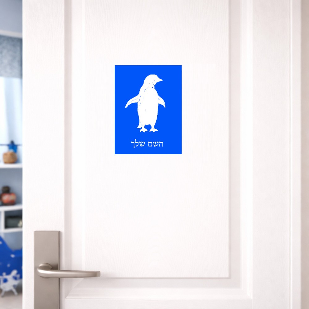 שלט אלומיניום קטן לחדר בעיצוב אישי עם השם שלך בעיצוב פינגווין גודל השלט 15 × 20 ס"מ. את השם המבוקש ניתן לציין בהזמנה, אם לא צויין אנחנו ניצור קשר לבירור.