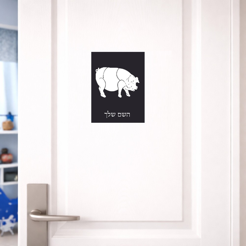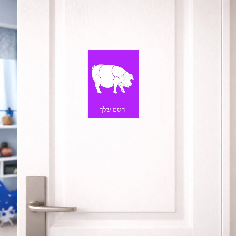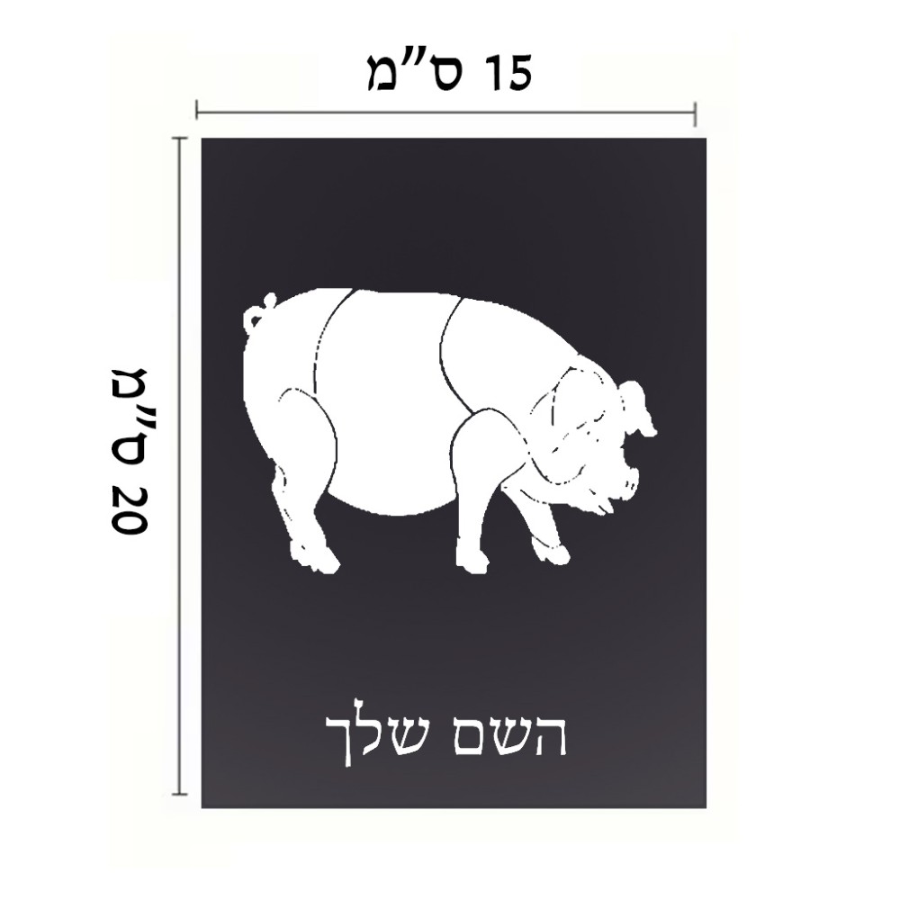 שלט אלומיניום קטן לחדר בעיצוב אישי עם השם שלך בעיצוב חזיר גודל השלט 15 × 20 ס"מ. את השם המבוקש ניתן לציין בהזמנה, אם לא צויין אנחנו ניצור קשר לבירור.