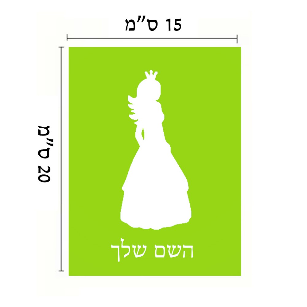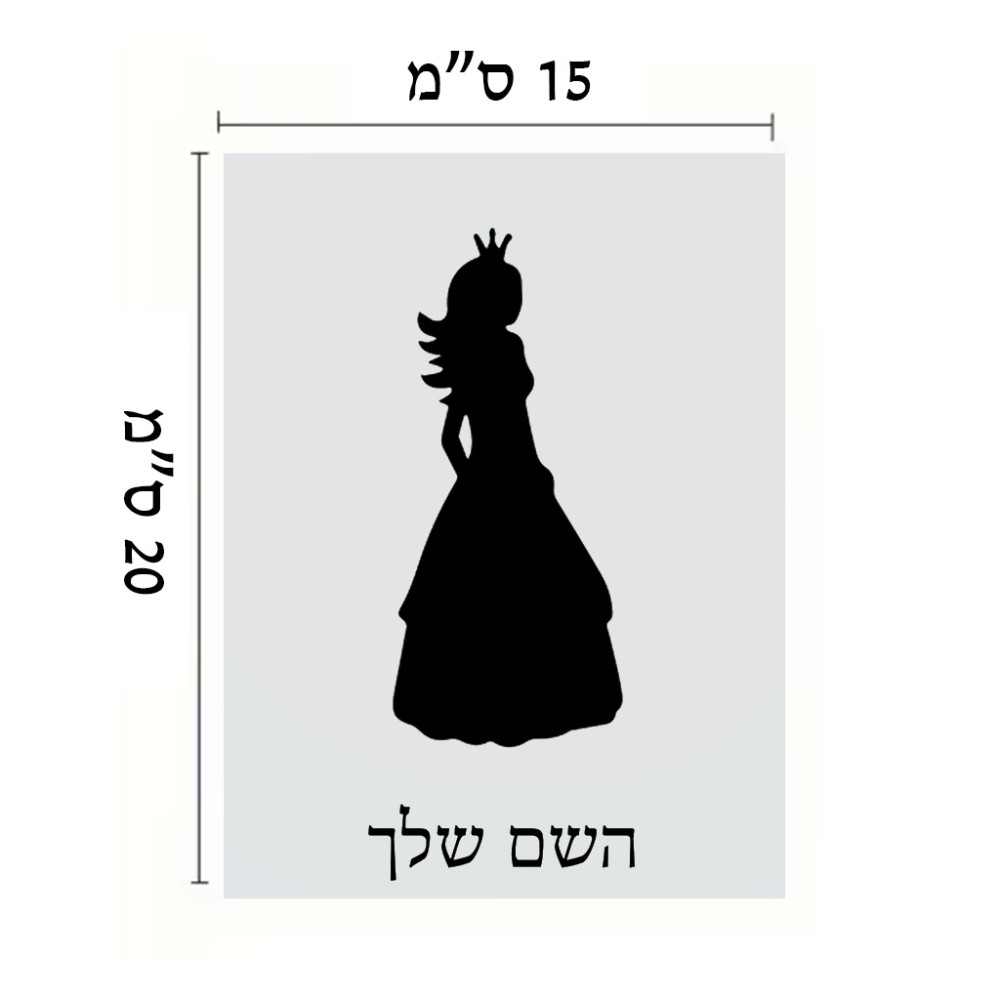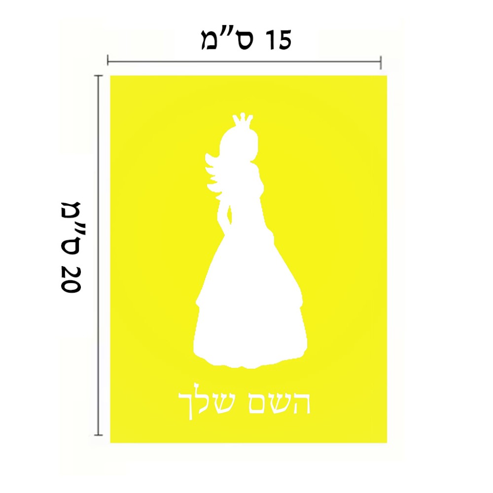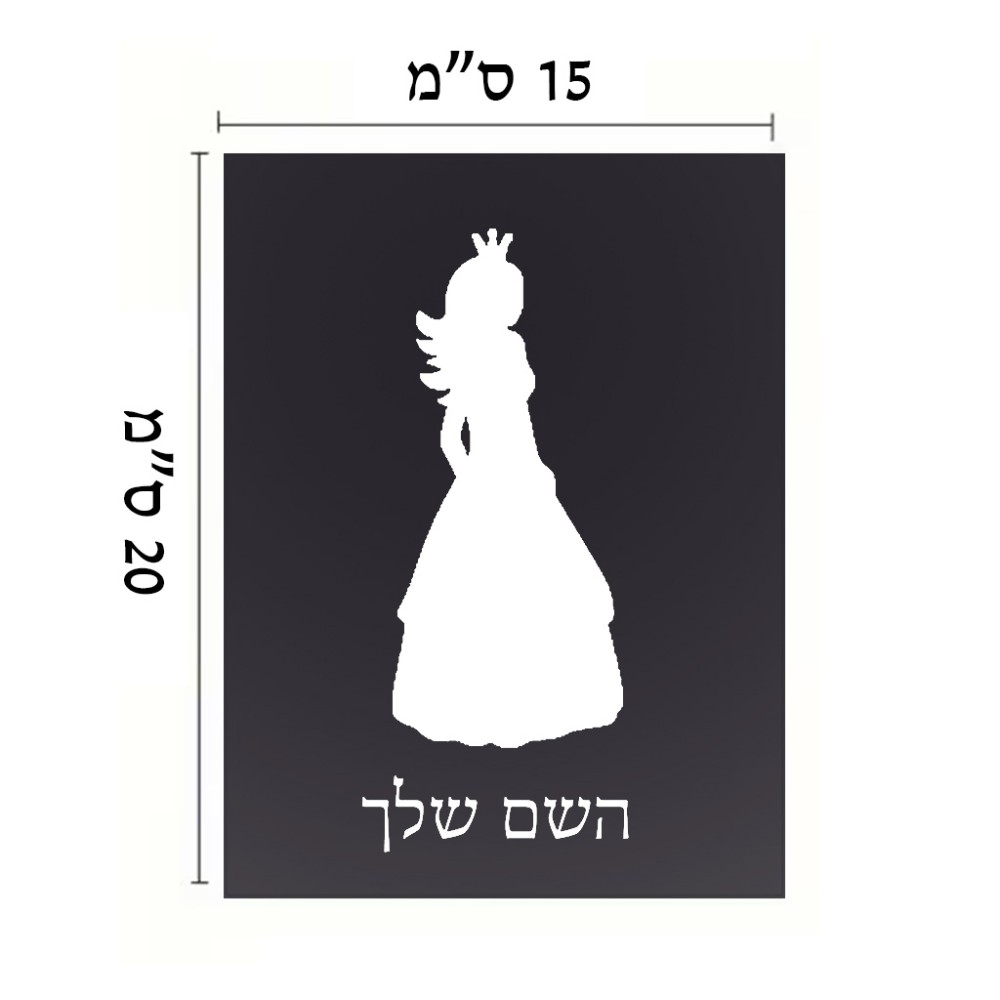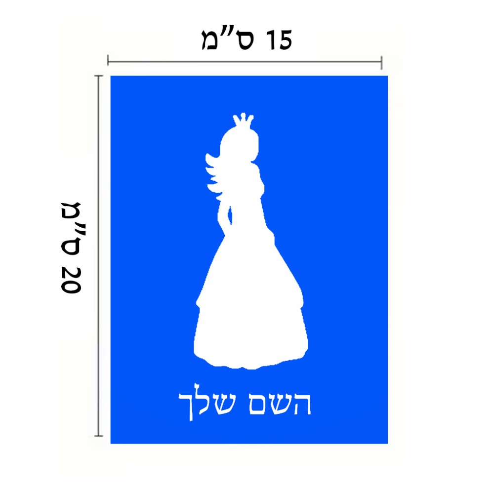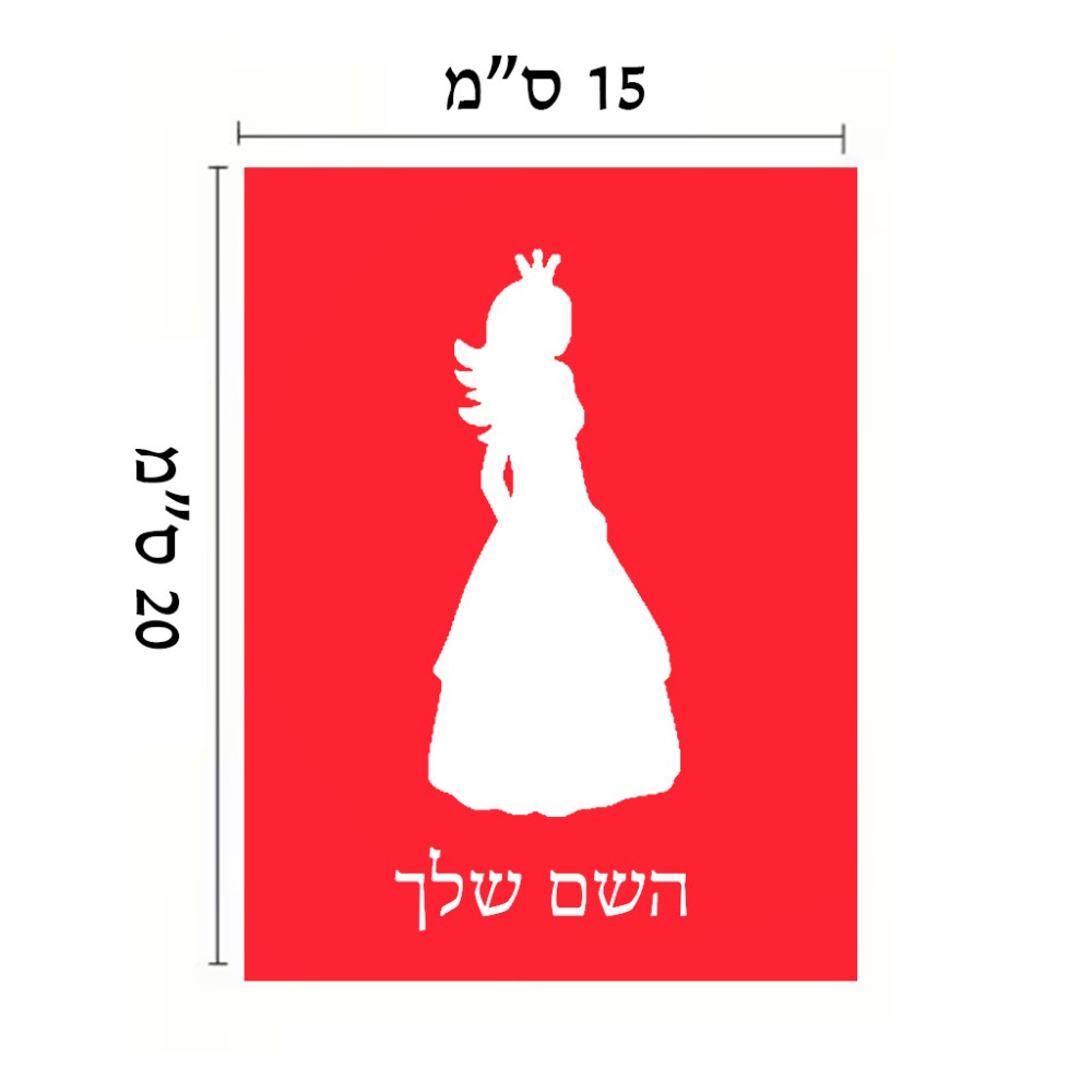 שלט אלומיניום קטן לחדר בעיצוב אישי עם השם שלך בעיצוב נסיכה גודל השלט 15 × 20 ס"מ. את השם המבוקש ניתן לציין בהזמנה, אם לא צויין אנחנו ניצור קשר לבירור.