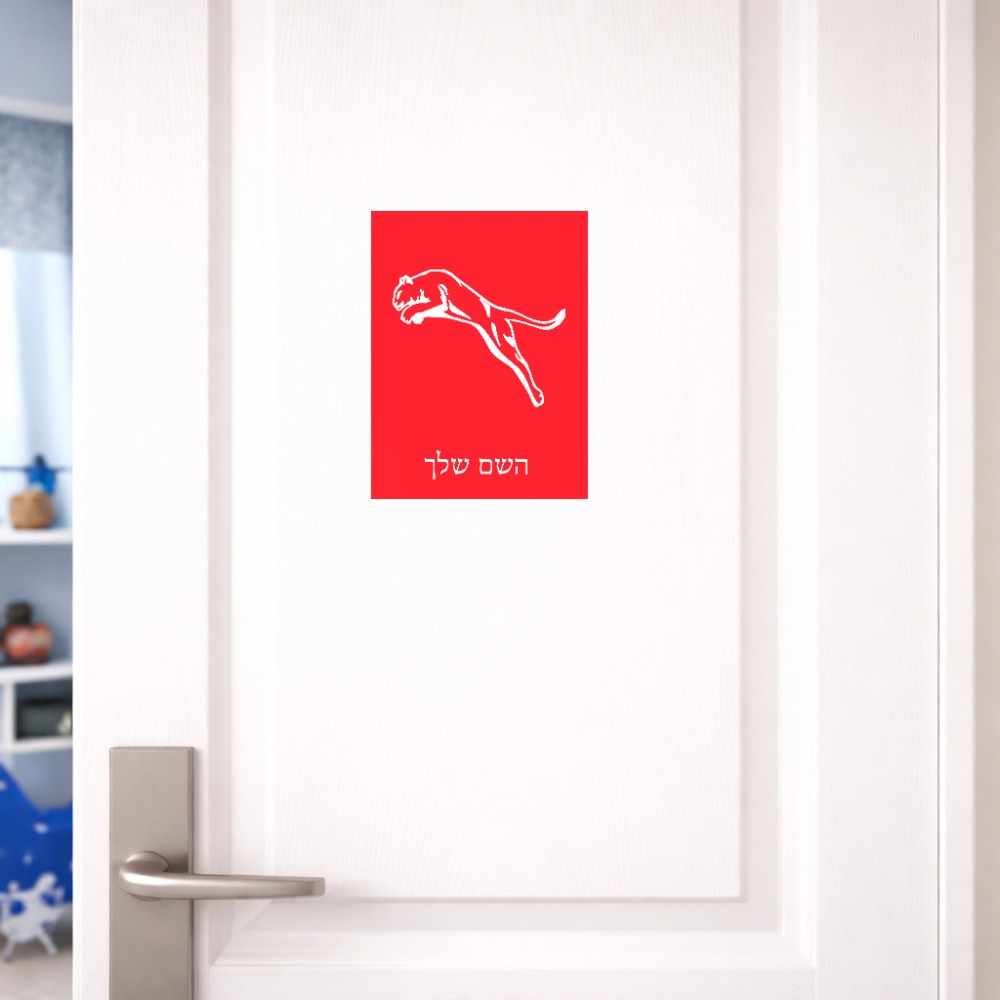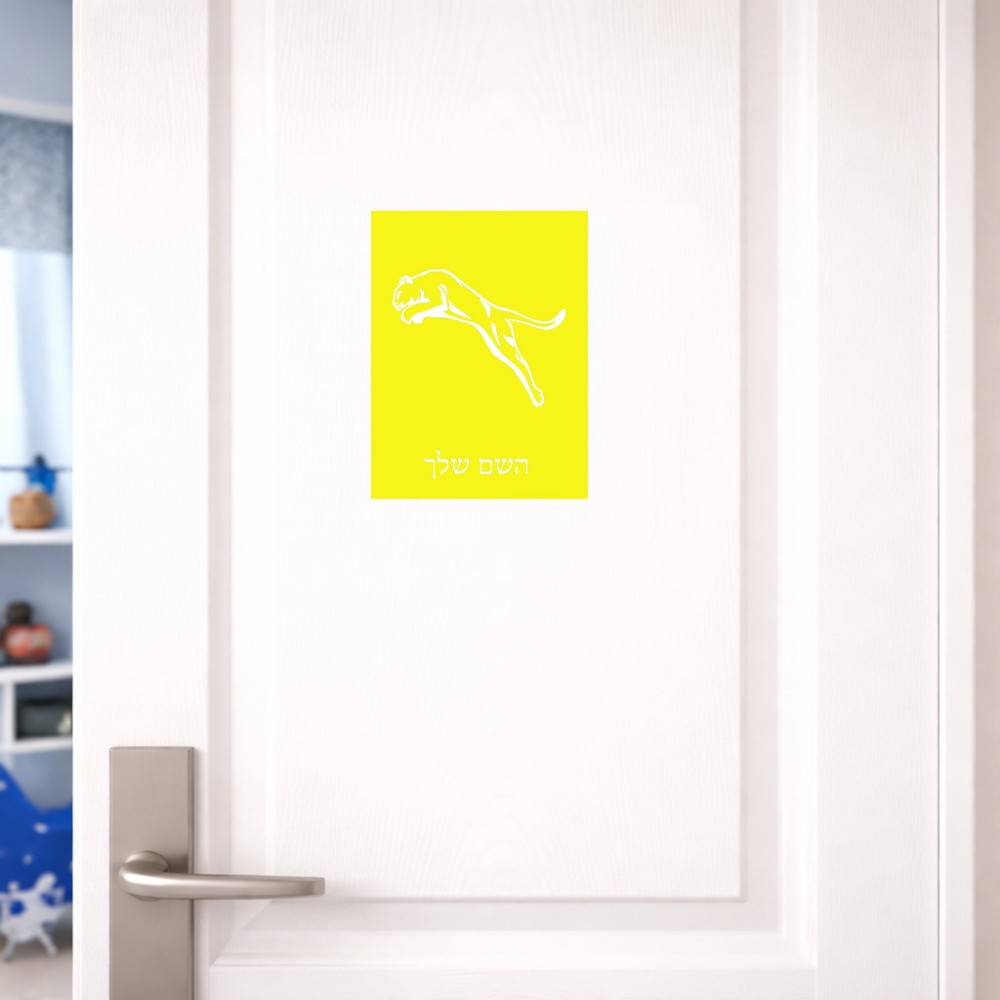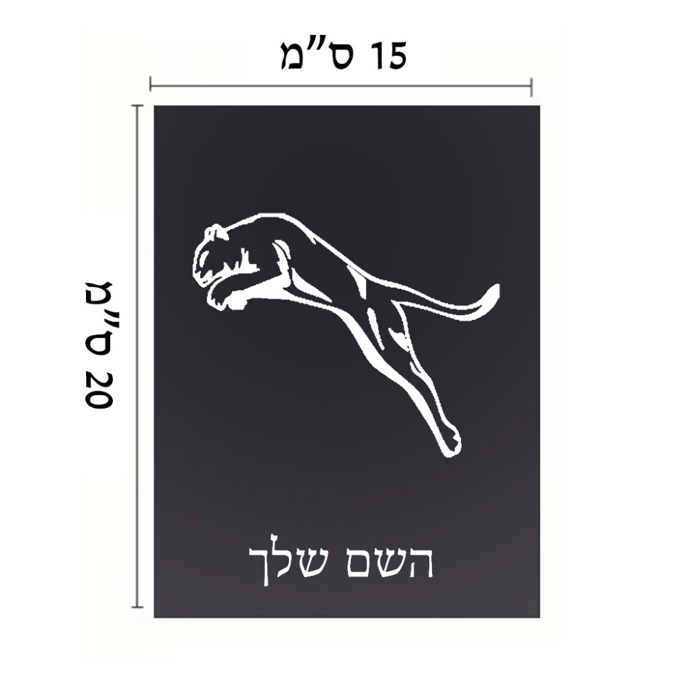 שלט אלומיניום קטן לחדר בעיצוב אישי עם השם שלך בעיצוב פומה גודל השלט 15 × 20 ס"מ. את השם המבוקש ניתן לציין בהזמנה, אם לא צויין אנחנו ניצור קשר לבירור.