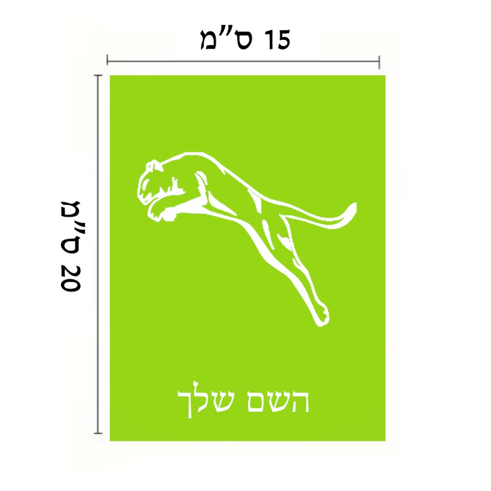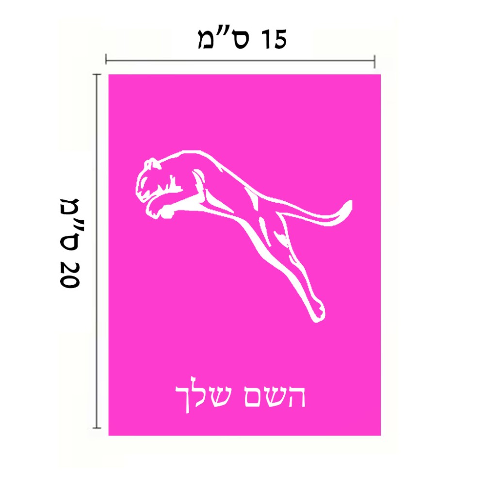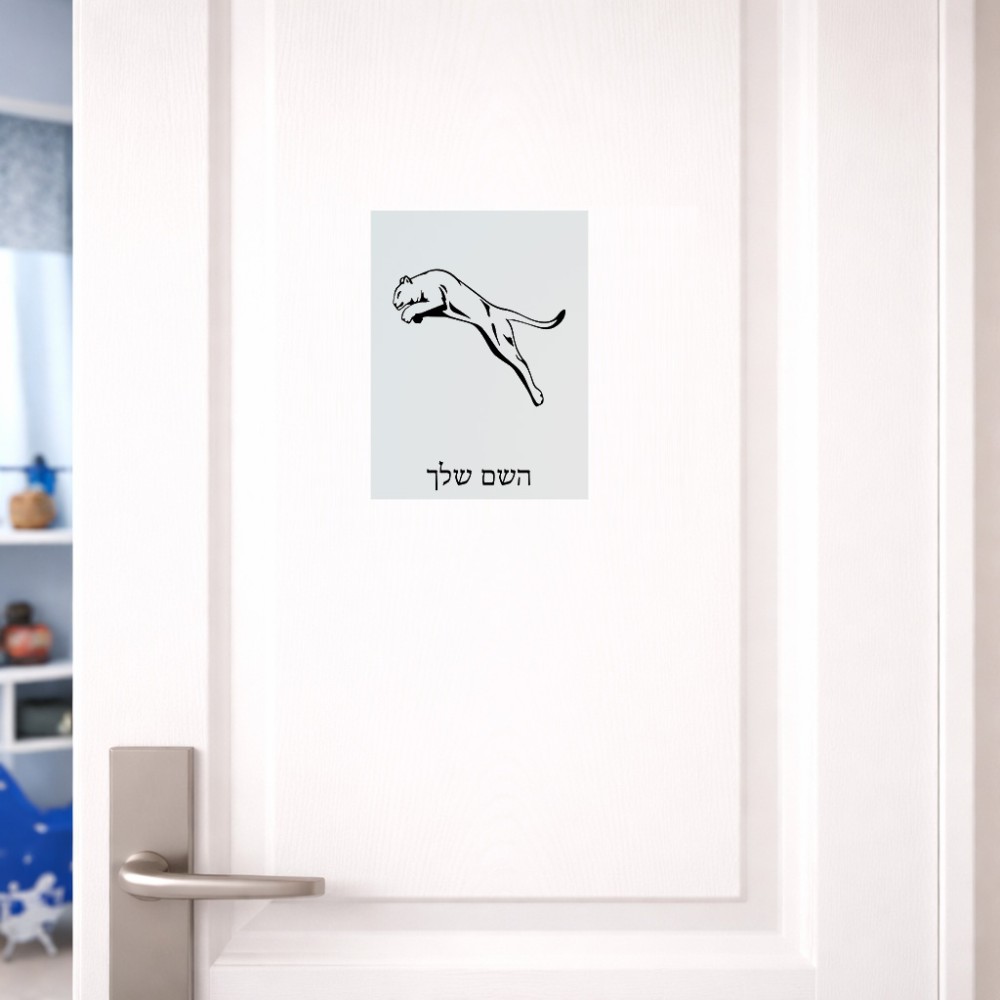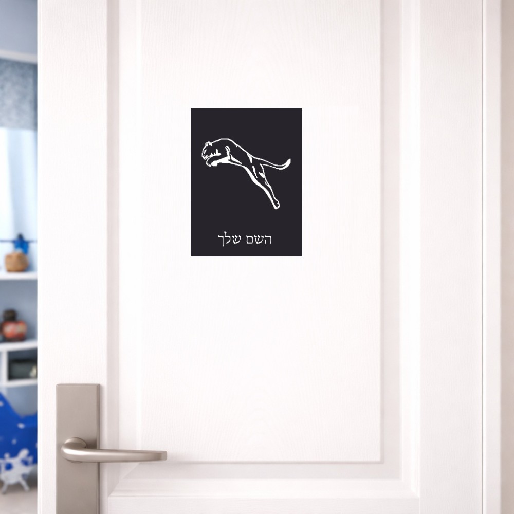 שלט אלומיניום קטן לחדר בעיצוב אישי עם השם שלך בעיצוב פומה גודל השלט 15 × 20 ס"מ. את השם המבוקש ניתן לציין בהזמנה, אם לא צויין אנחנו ניצור קשר לבירור.