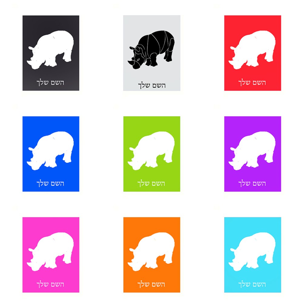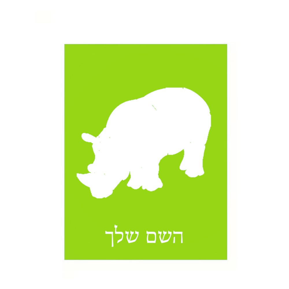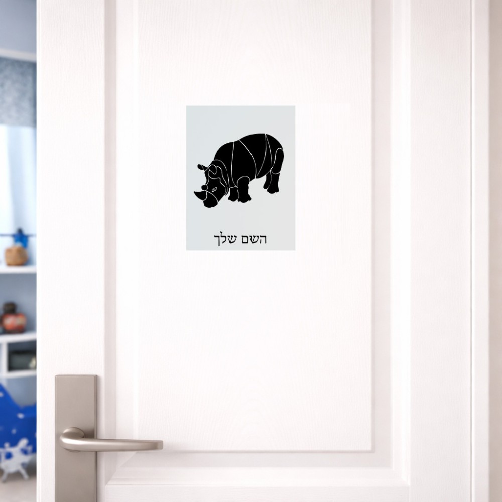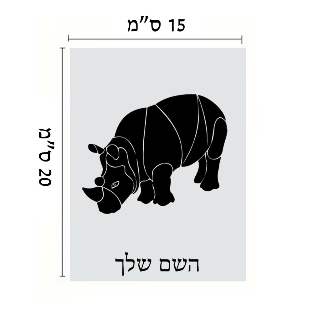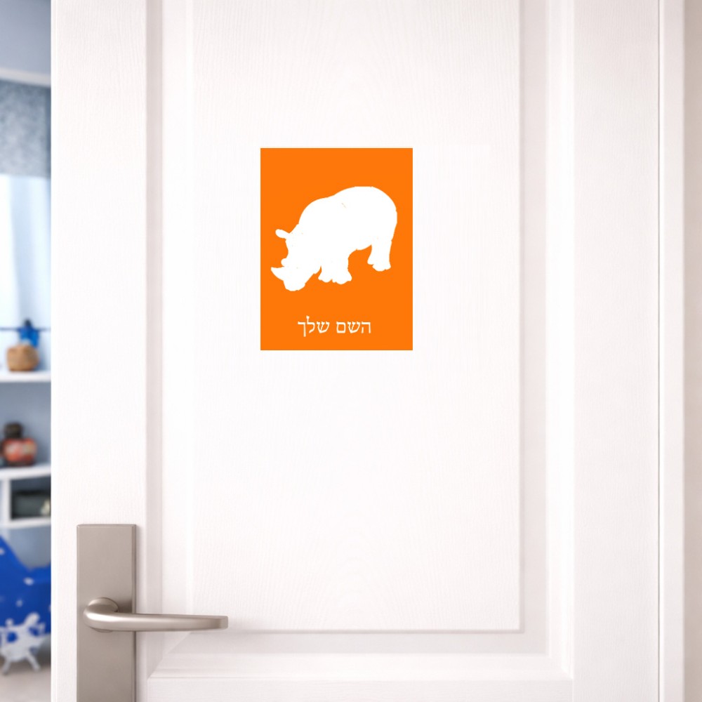 שלט אלומיניום קטן לחדר בעיצוב אישי עם השם שלך בעיצוב קרנף גודל השלט 15 × 20 ס"מ. את השם המבוקש ניתן לציין בהזמנה, אם לא צויין אנחנו ניצור קשר לבירור.