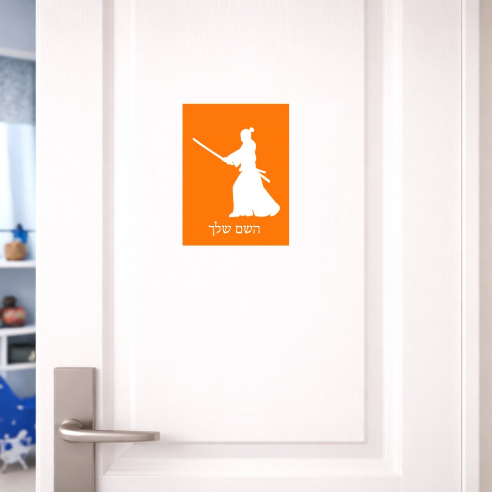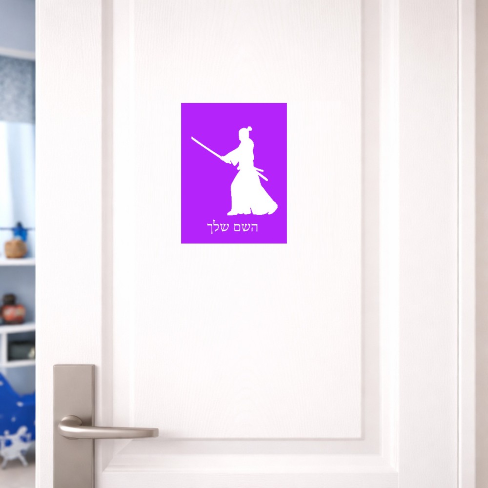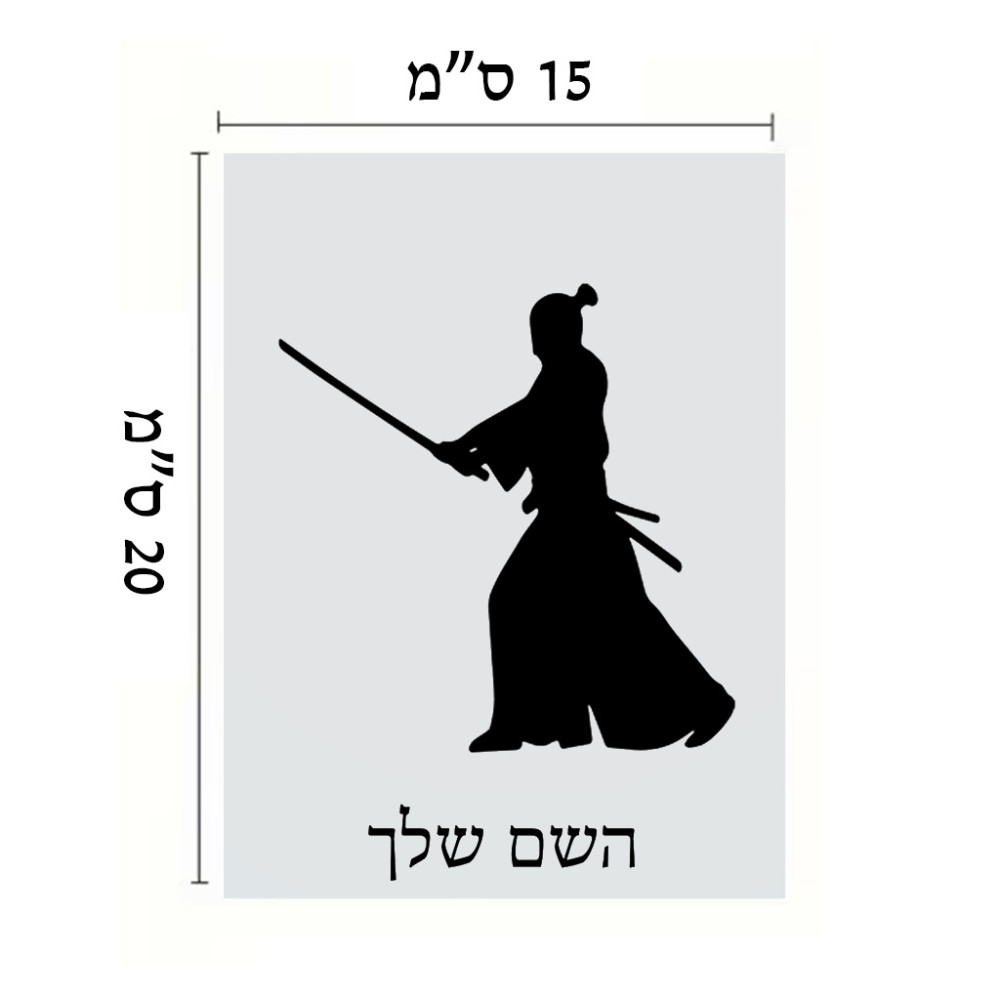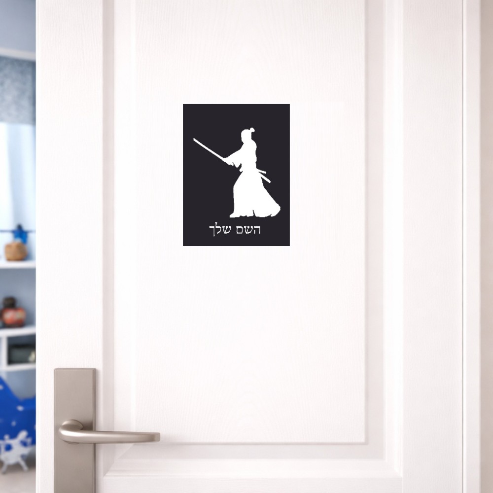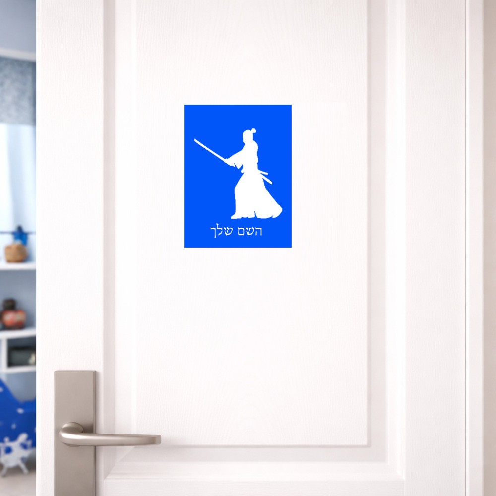 שלט אלומיניום קטן לחדר בעיצוב אישי עם השם שלך בעיצוב סמוראי גודל השלט 15 × 20 ס"מ. את השם המבוקש ניתן לציין בהזמנה, אם לא צויין אנחנו ניצור קשר לבירור.