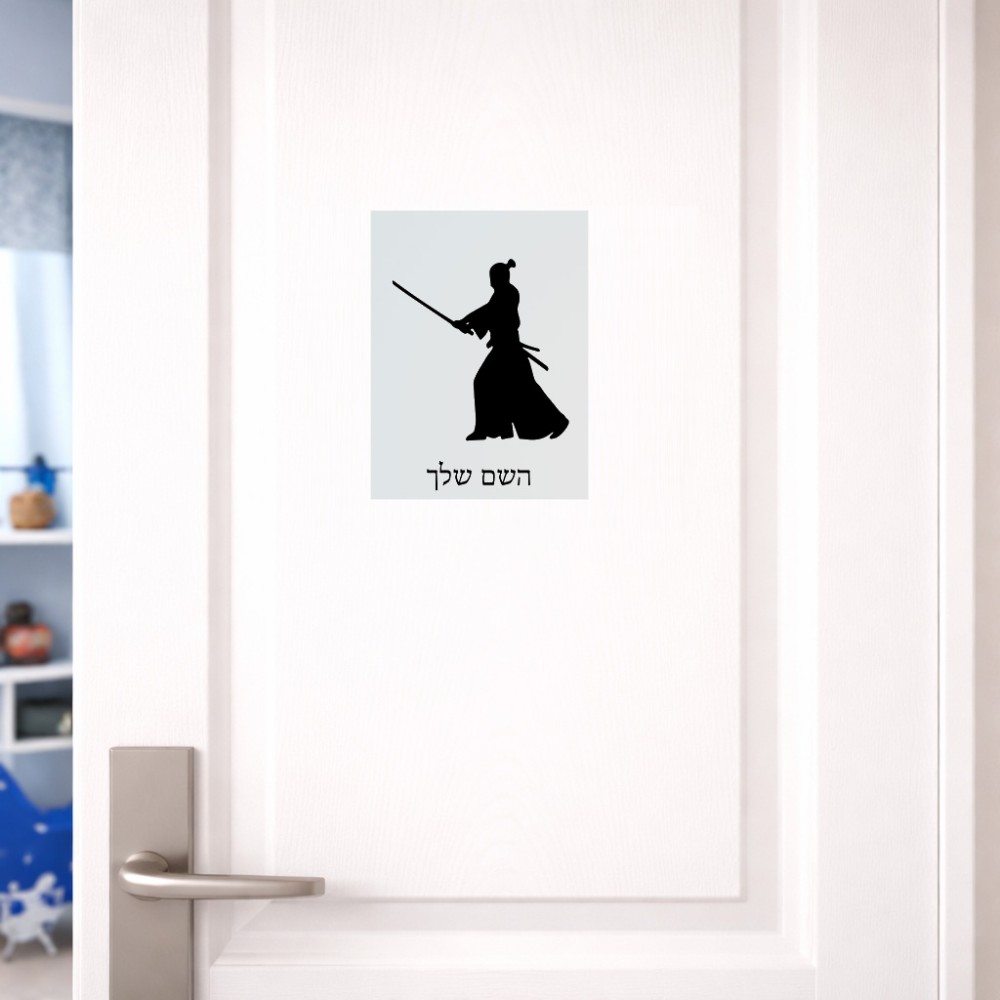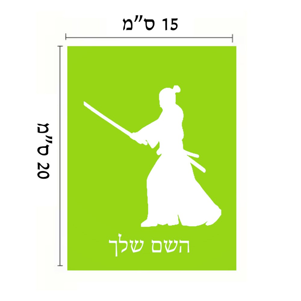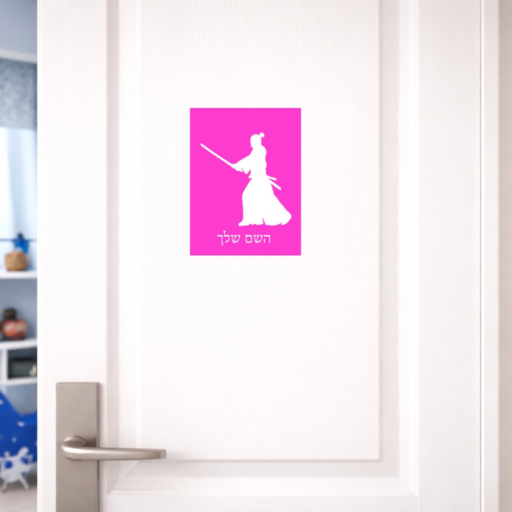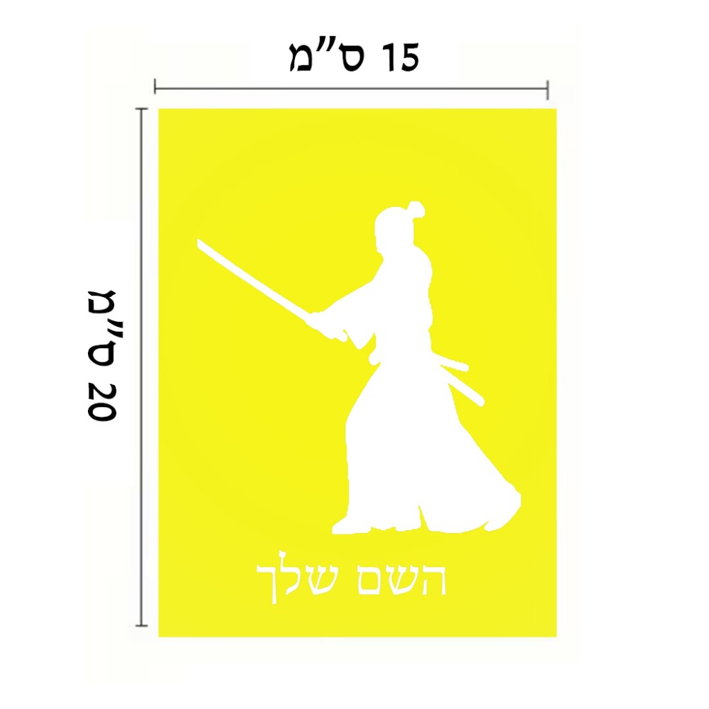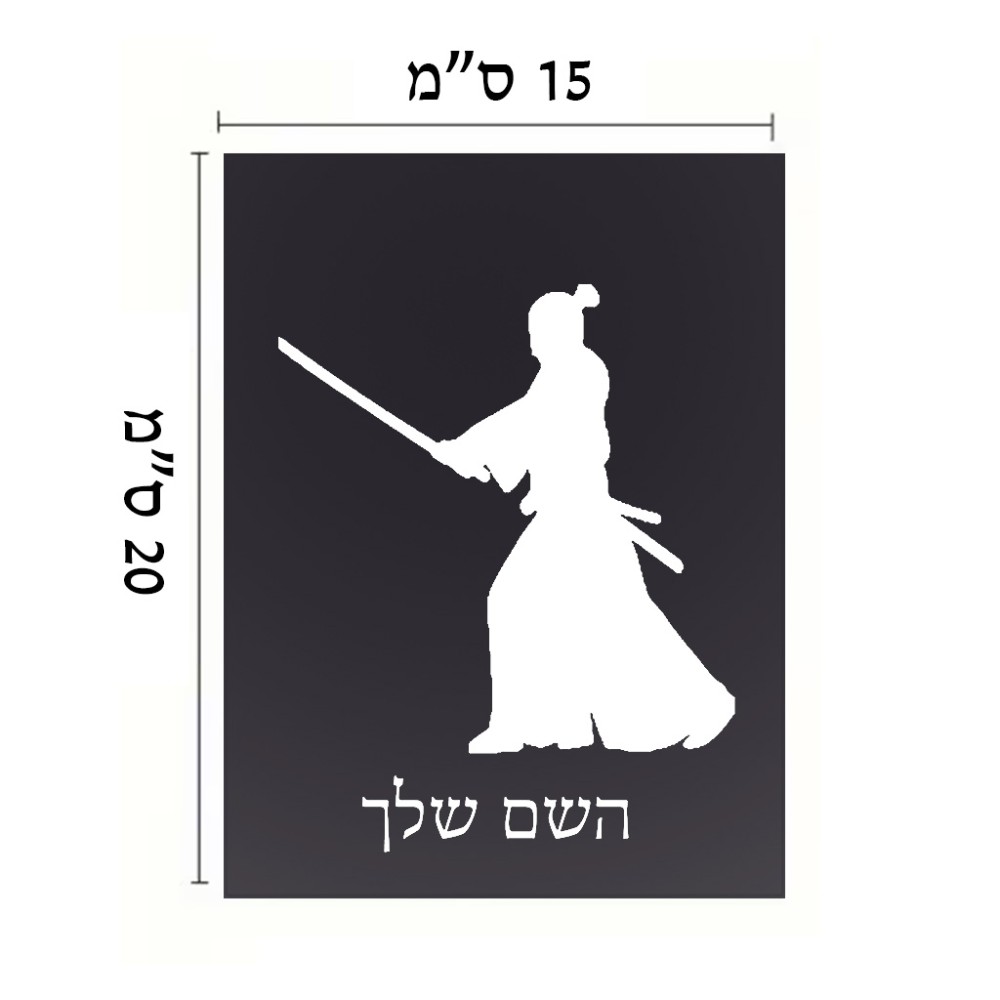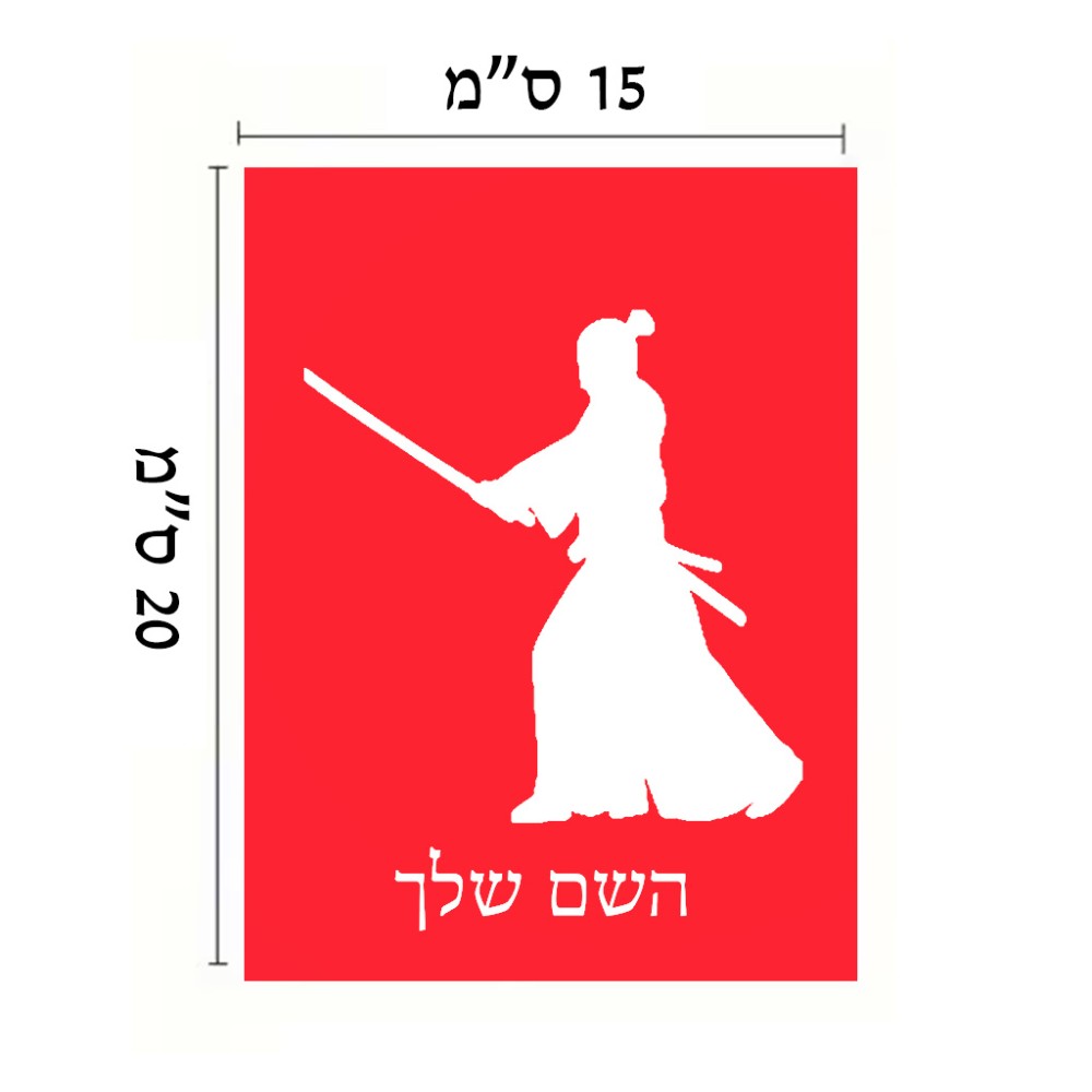 שלט אלומיניום קטן לחדר בעיצוב אישי עם השם שלך בעיצוב סמוראי גודל השלט 15 × 20 ס"מ. את השם המבוקש ניתן לציין בהזמנה, אם לא צויין אנחנו ניצור קשר לבירור.