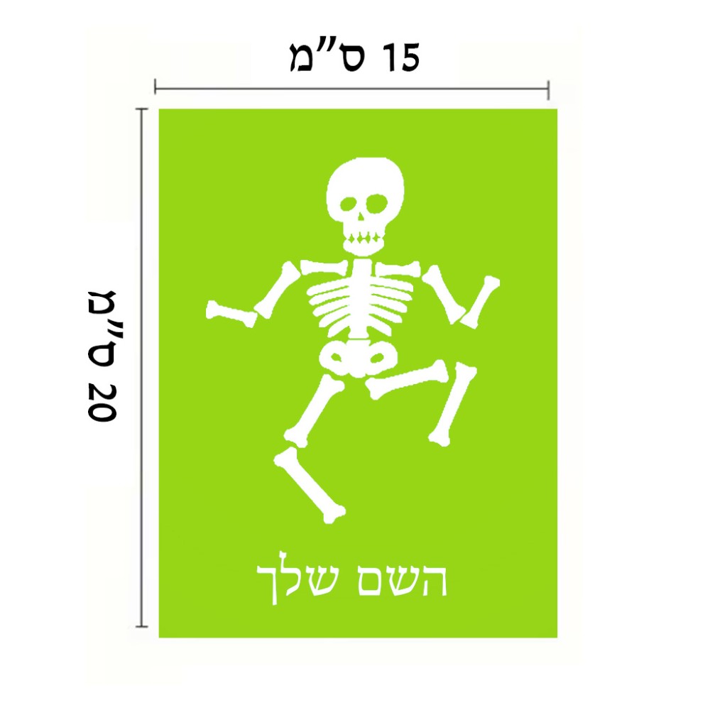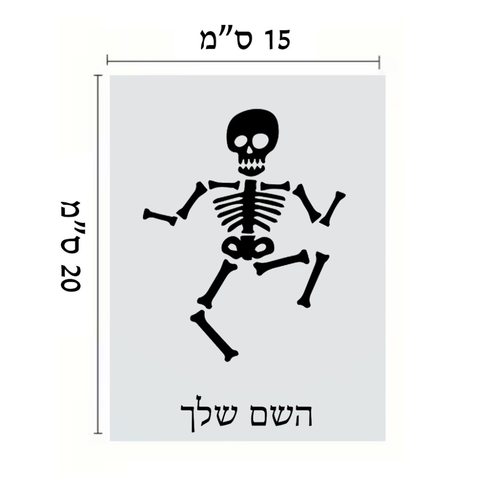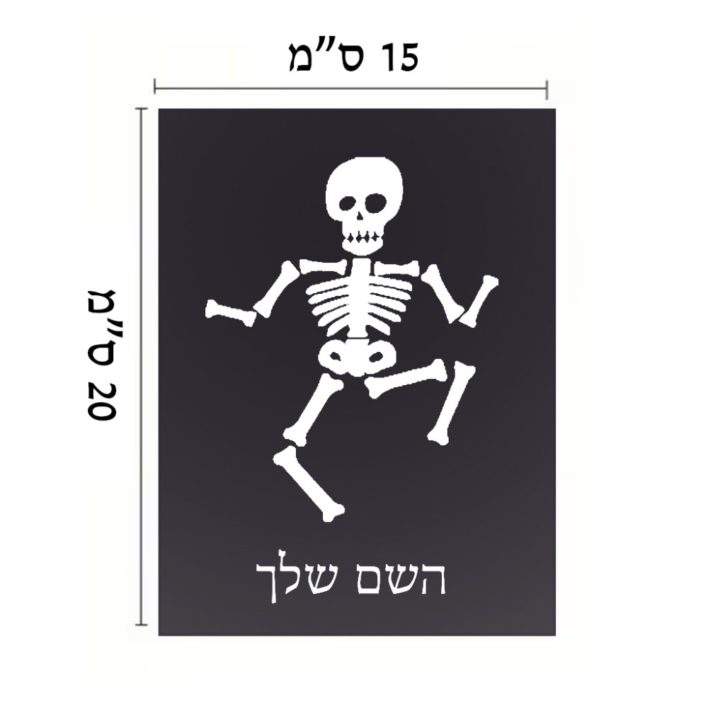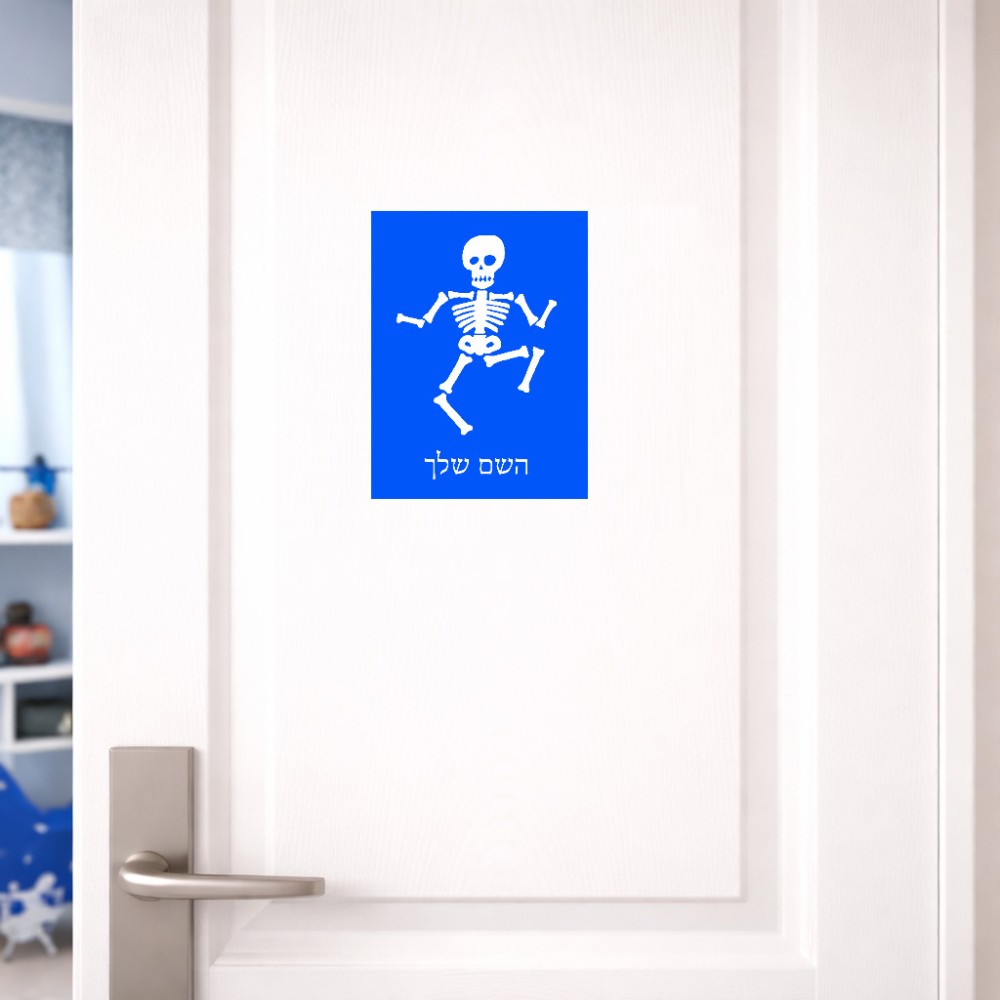 שלט אלומיניום קטן לחדר בעיצוב אישי עם השם שלך בעיצוב סקלטון גודל השלט 15 × 20 ס"מ. את השם המבוקש ניתן לציין בהזמנה, אם לא צויין אנחנו ניצור קשר לבירור.