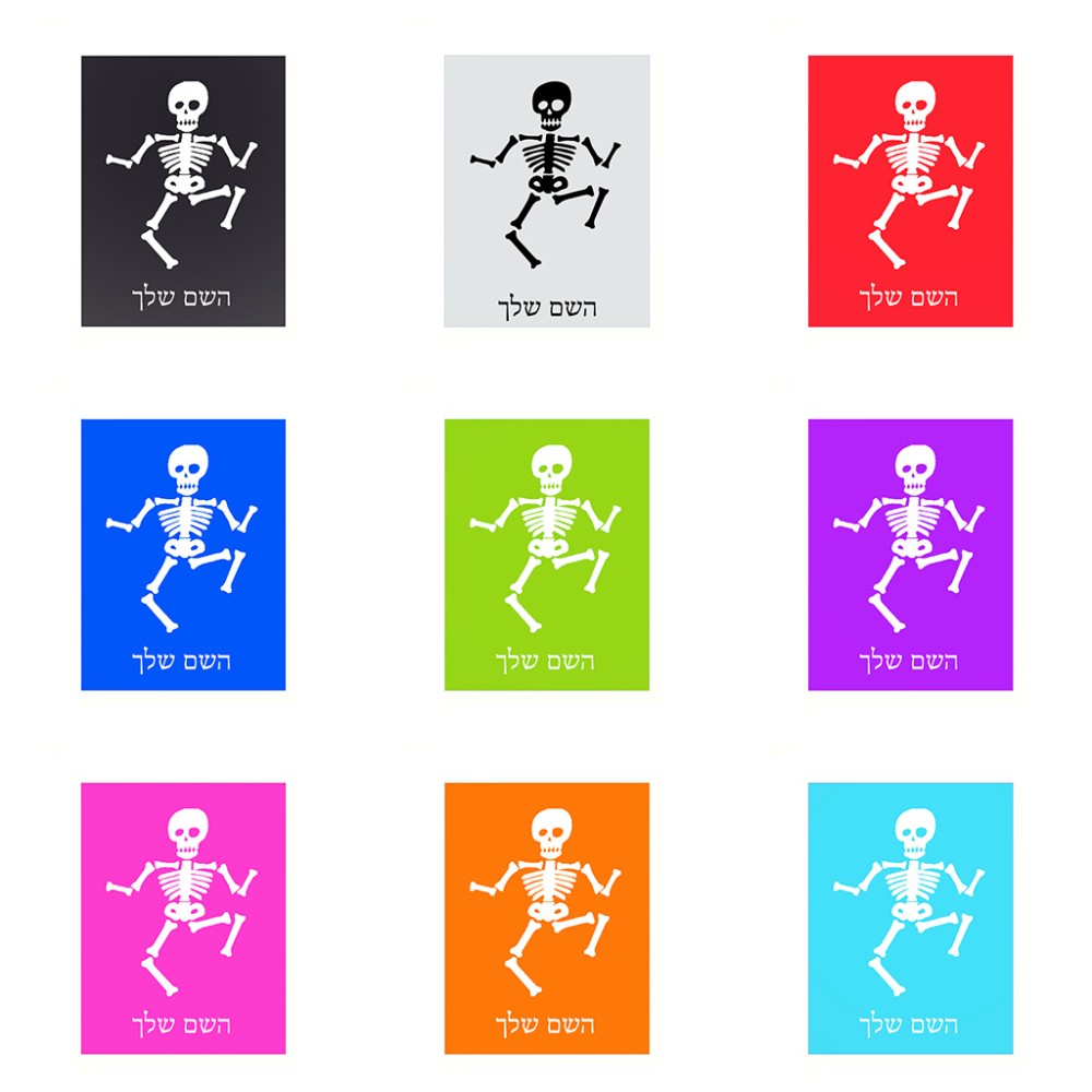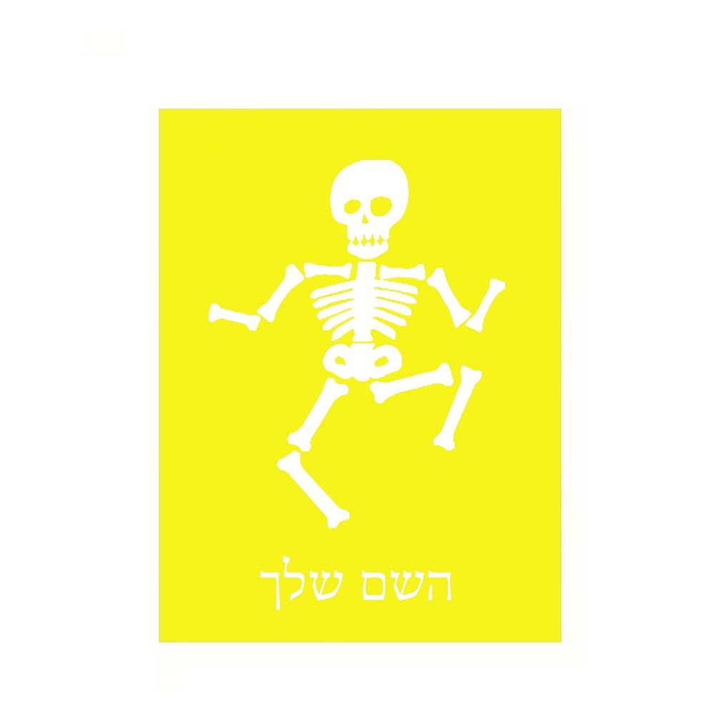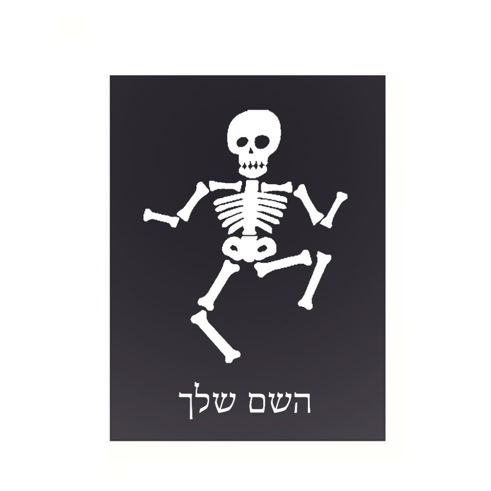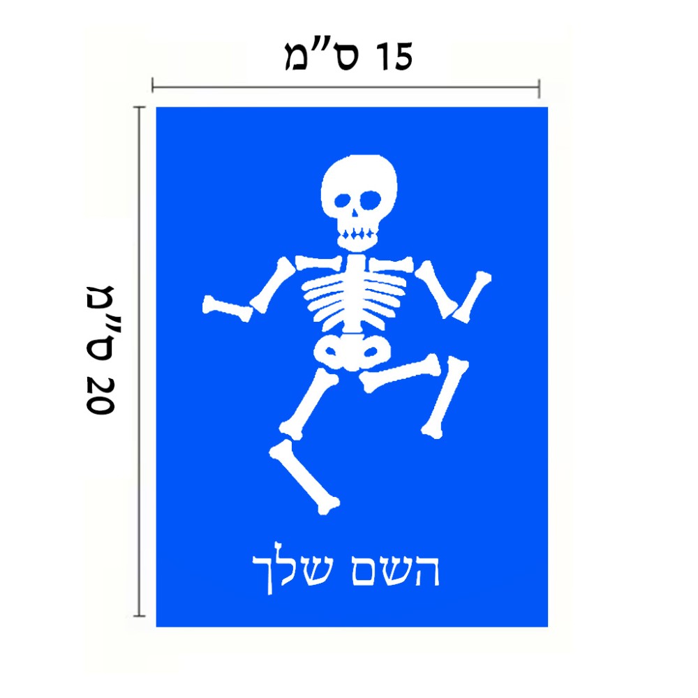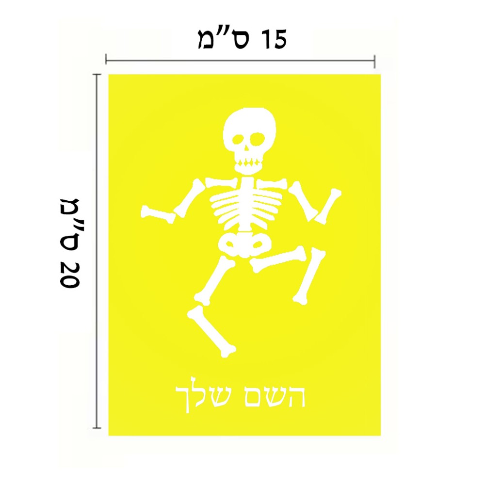שלט אלומיניום קטן לחדר בעיצוב אישי עם השם שלך בעיצוב סקלטון גודל השלט 15 × 20 ס"מ. את השם המבוקש ניתן לציין בהזמנה, אם לא צויין אנחנו ניצור קשר לבירור.