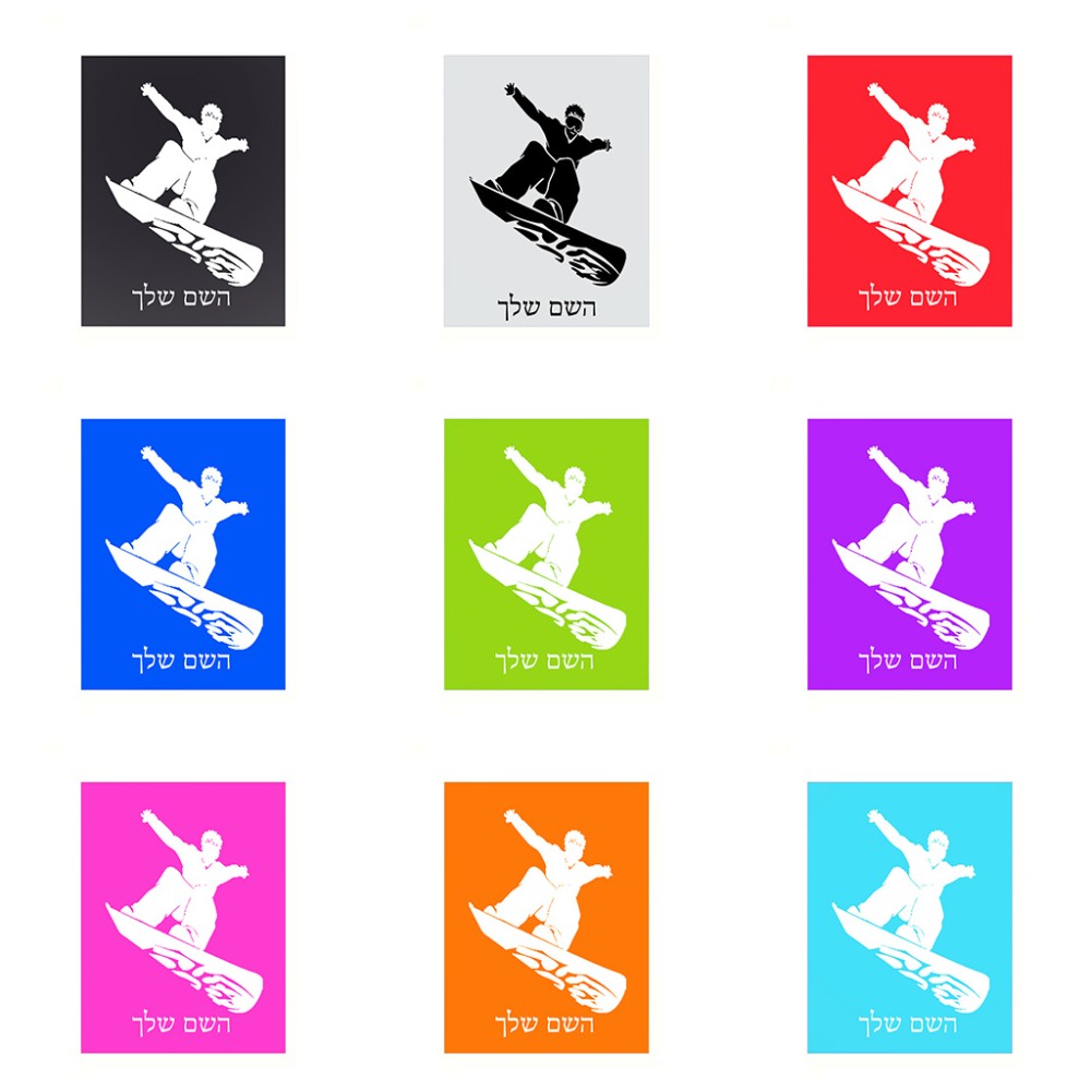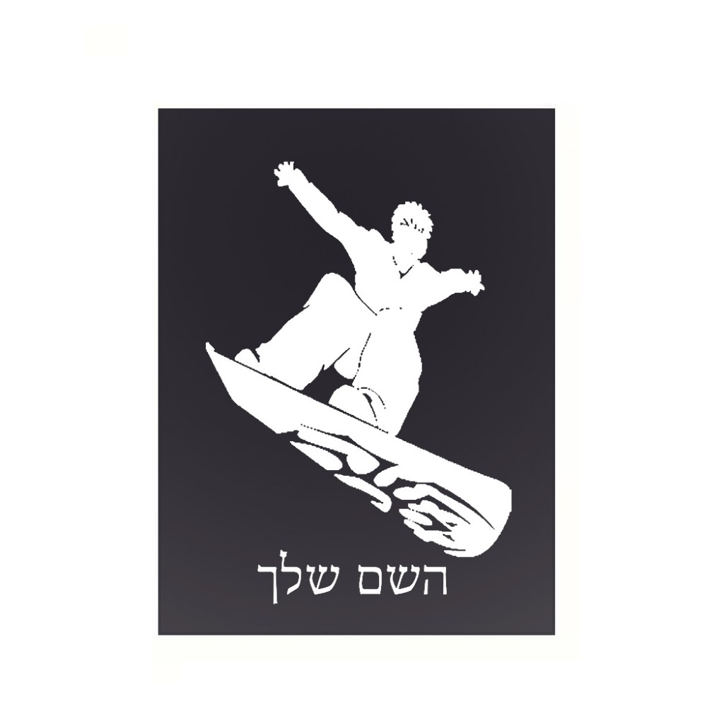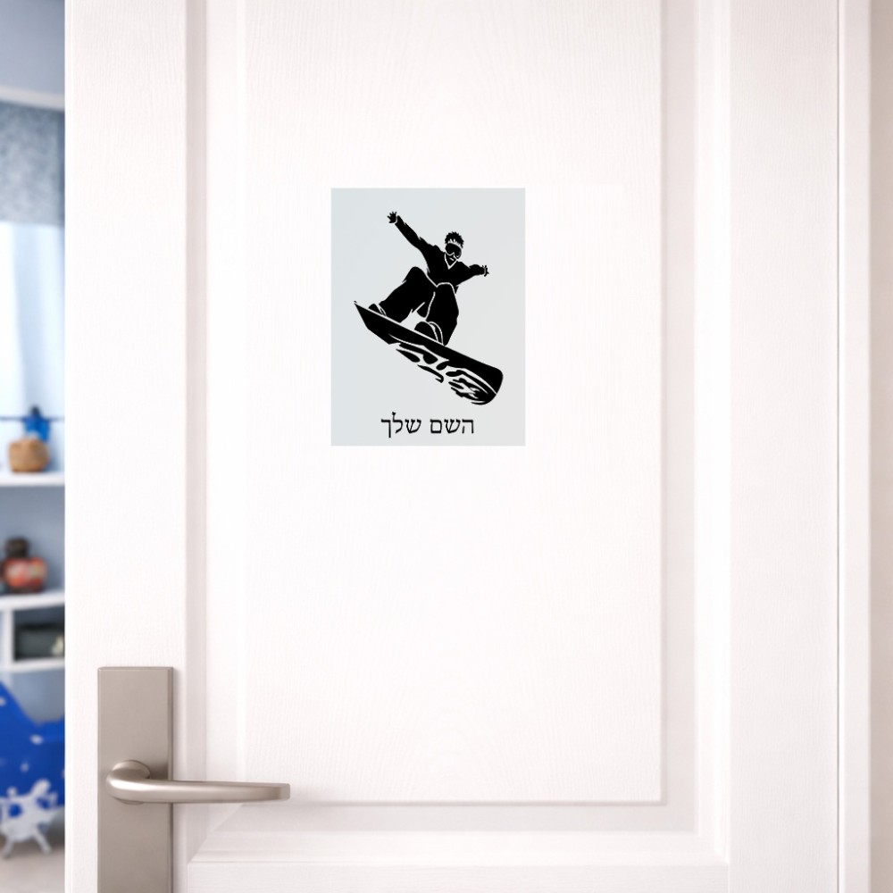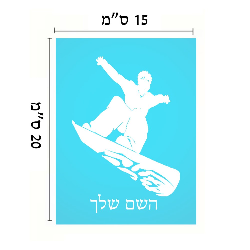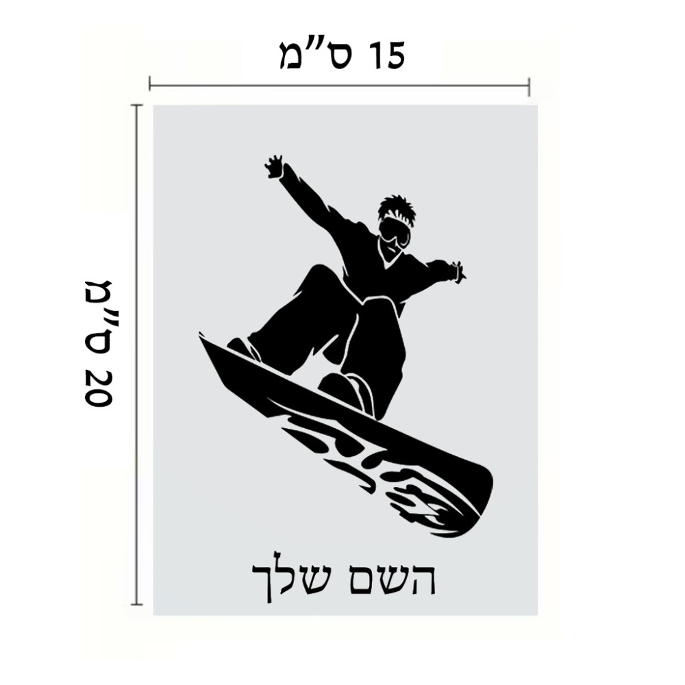 שלט אלומיניום קטן לחדר בעיצוב אישי עם השם שלך בעיצוב סנובורדיסט גודל השלט 15 × 20 ס"מ. את השם המבוקש ניתן לציין בהזמנה, אם לא צויין אנחנו ניצור קשר לבירור.