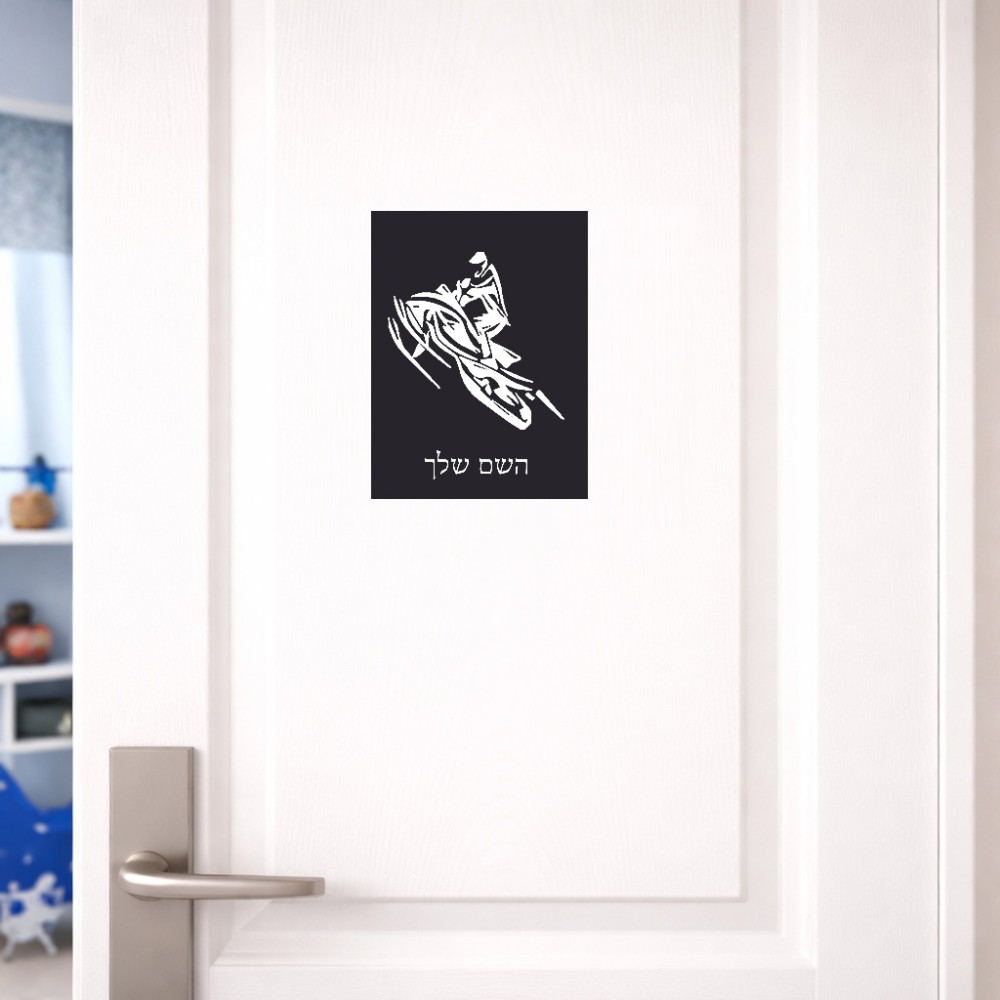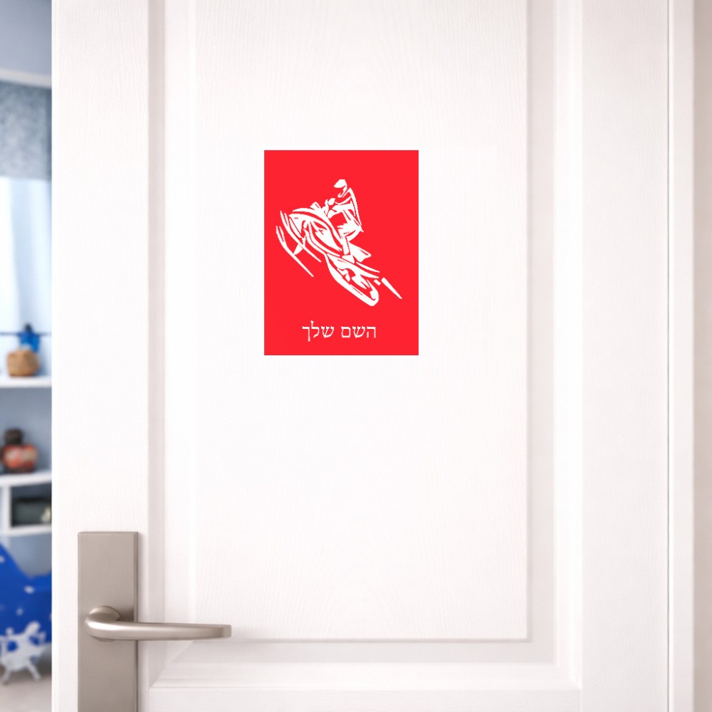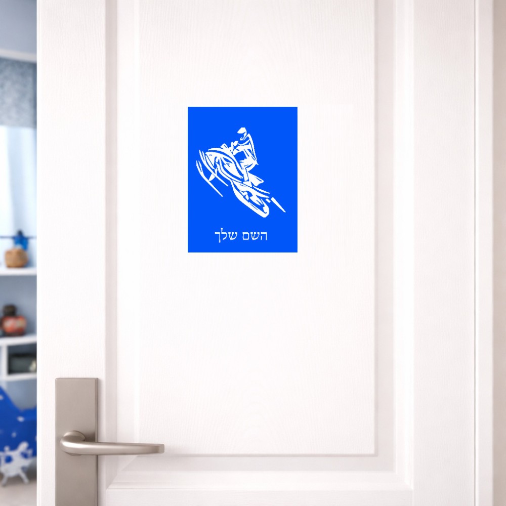 שלט אלומיניום קטן לחדר בעיצוב אישי עם השם שלך בעיצוב אופנוע שלג גודל השלט 15 × 20 ס"מ. את השם המבוקש ניתן לציין בהזמנה, אם לא צויין אנחנו ניצור קשר לבירור.