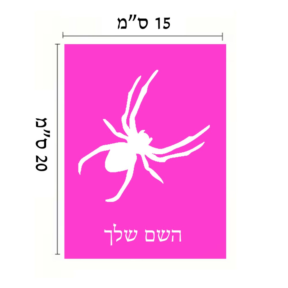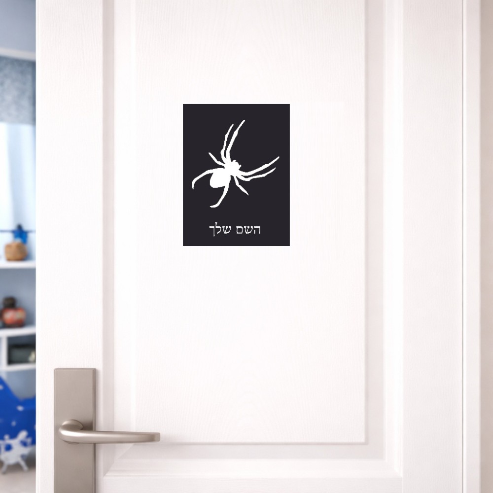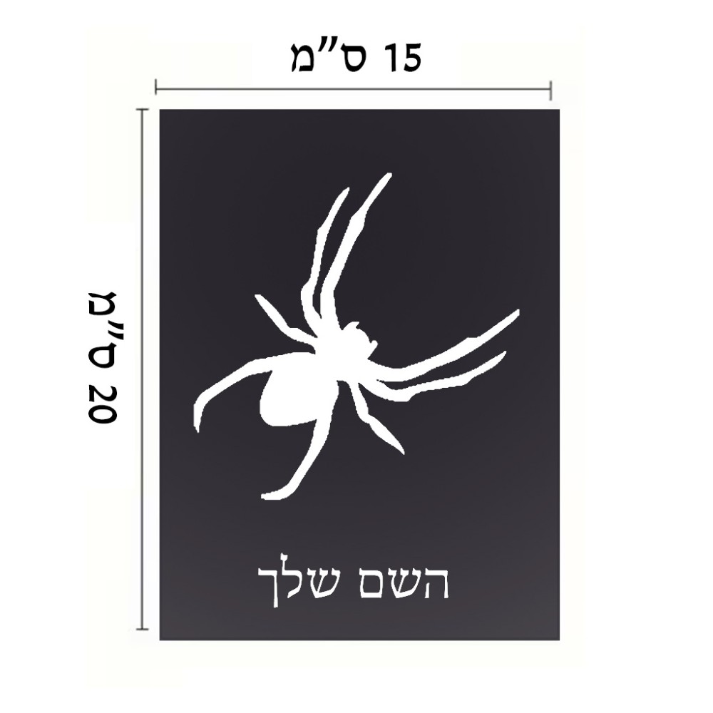 שלט אלומיניום קטן לחדר בעיצוב אישי עם השם שלך בעיצוב עכביש גודל השלט 15 × 20 ס"מ. את השם המבוקש ניתן לציין בהזמנה, אם לא צויין אנחנו ניצור קשר לבירור.