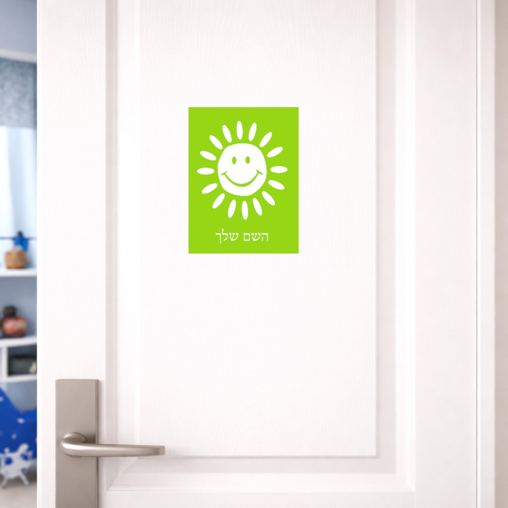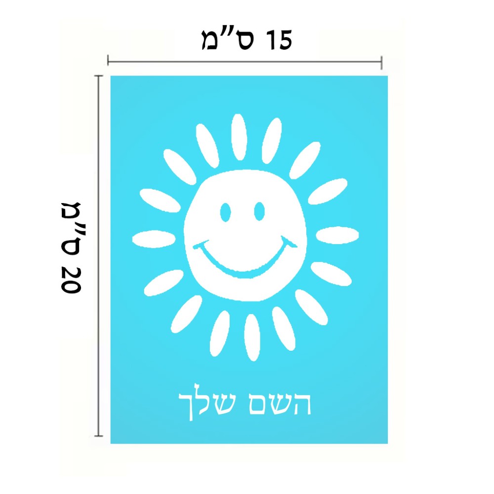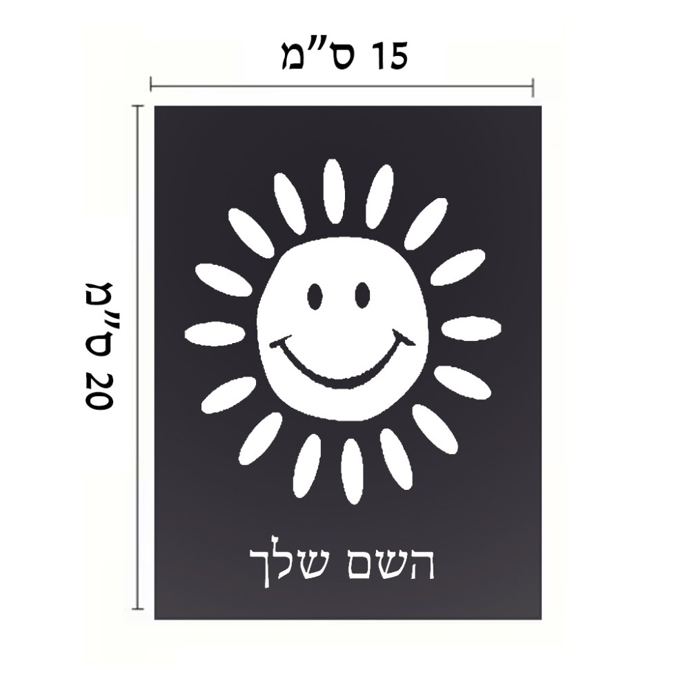שלט אלומיניום קטן לחדר בעיצוב אישי עם השם שלך בעיצוב שמש גודל השלט 15 × 20 ס"מ. את השם המבוקש ניתן לציין בהזמנה, אם לא צויין אנחנו ניצור קשר לבירור.