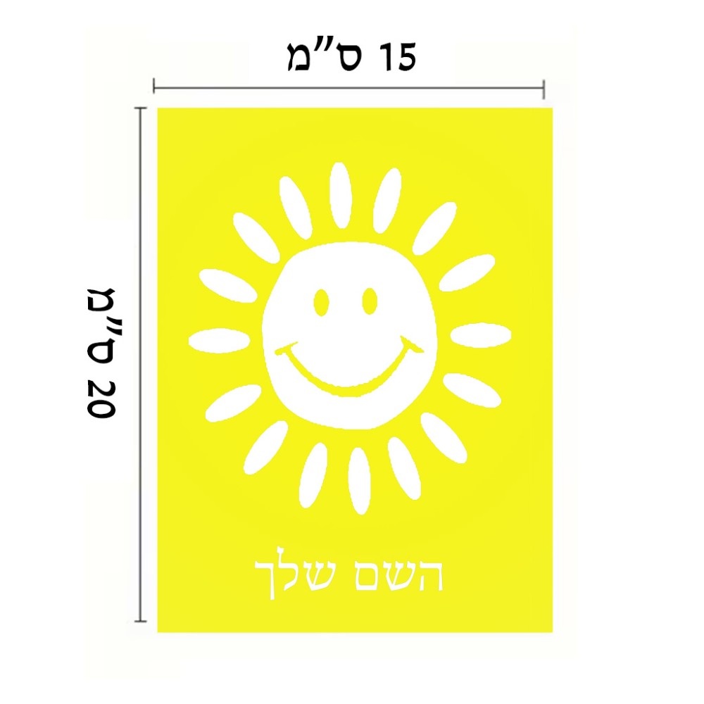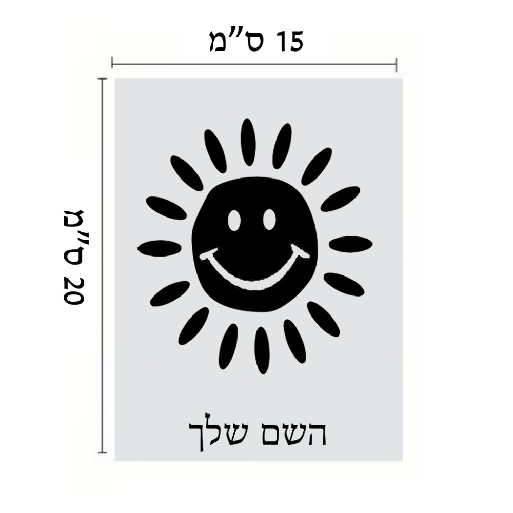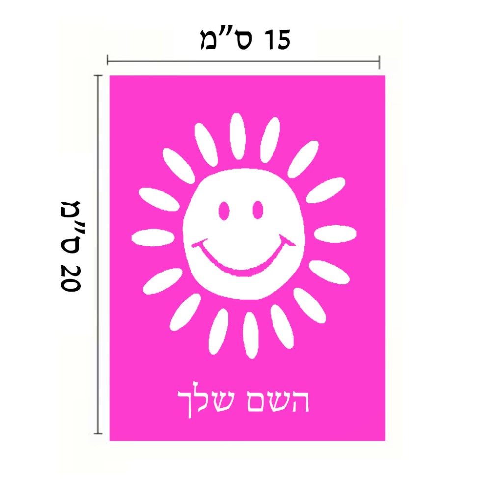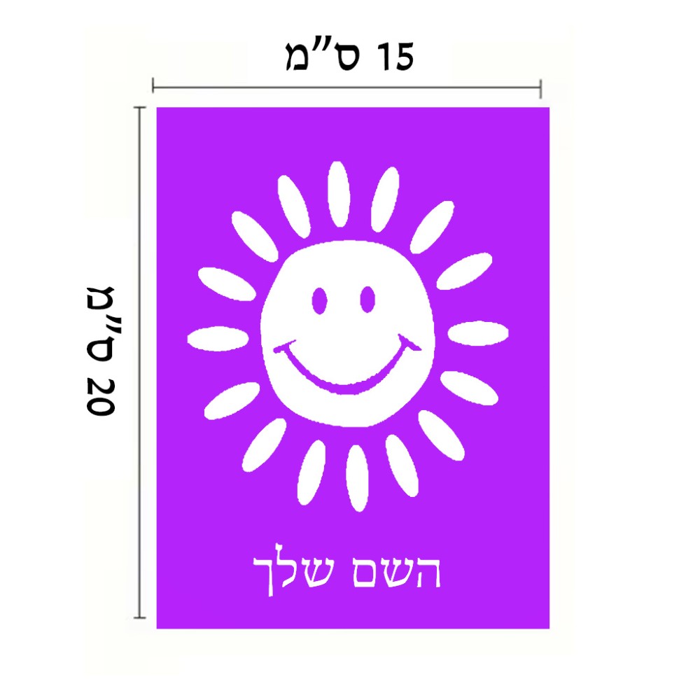 שלט אלומיניום קטן לחדר בעיצוב אישי עם השם שלך בעיצוב שמש גודל השלט 15 × 20 ס"מ. את השם המבוקש ניתן לציין בהזמנה, אם לא צויין אנחנו ניצור קשר לבירור.