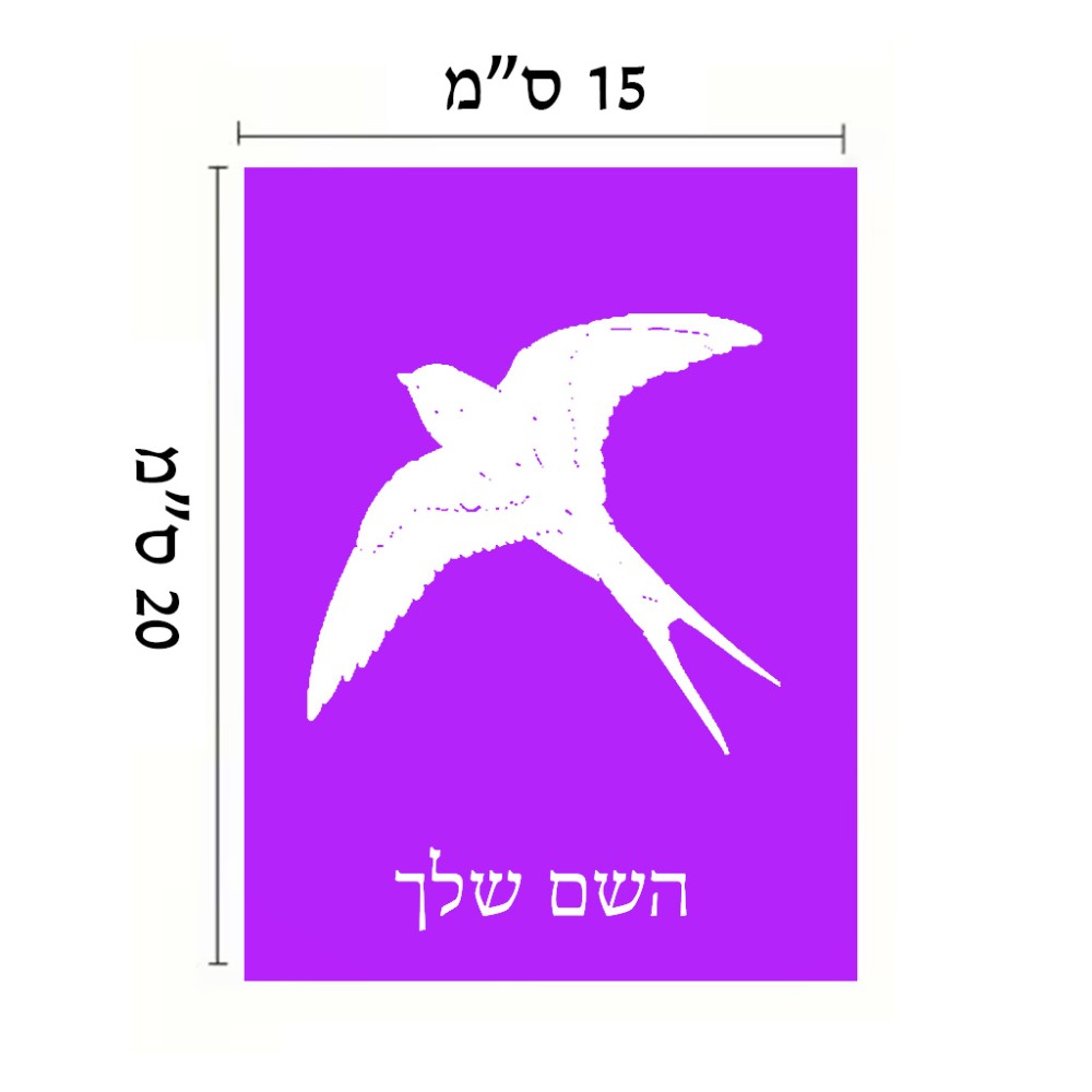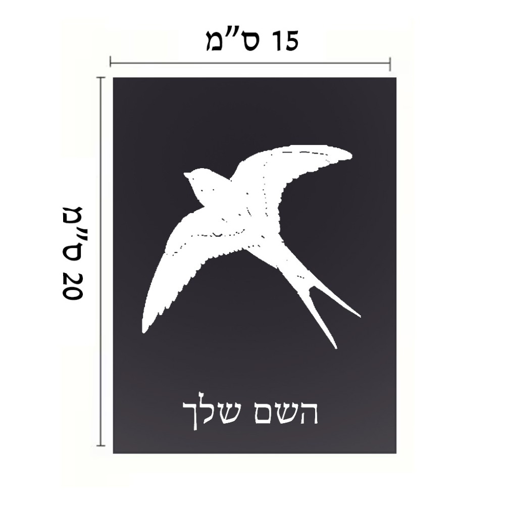 שלט אלומיניום קטן לחדר בעיצוב אישי עם השם שלך בעיצוב לבלוע גודל השלט 15 × 20 ס"מ. את השם המבוקש ניתן לציין בהזמנה, אם לא צויין אנחנו ניצור קשר לבירור.