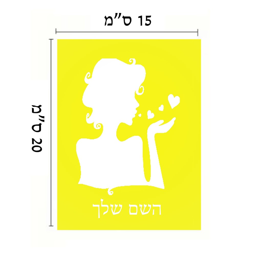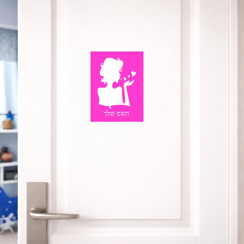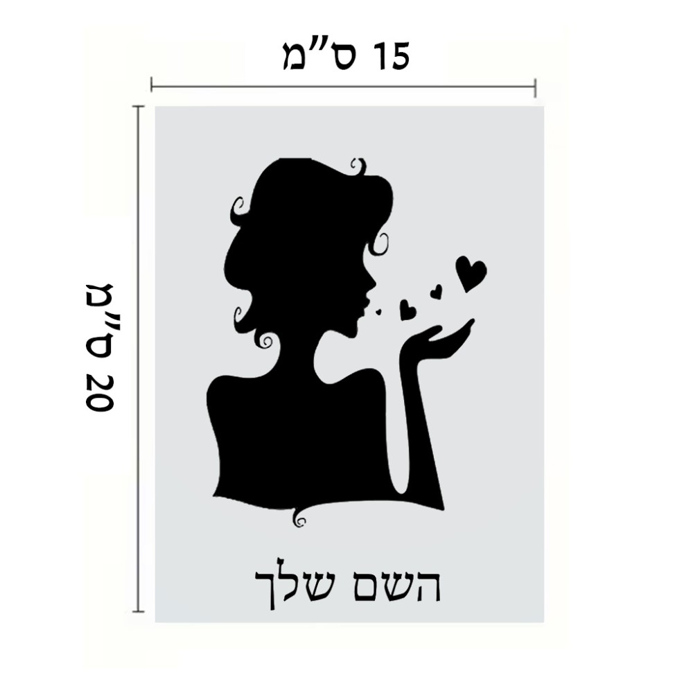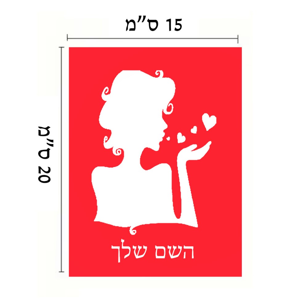 שלט אלומיניום קטן לחדר בעיצוב אישי עם השם שלך בעיצוב אהבת נשים גודל השלט 15 × 20 ס"מ. את השם המבוקש ניתן לציין בהזמנה, אם לא צויין אנחנו ניצור קשר לבירור.