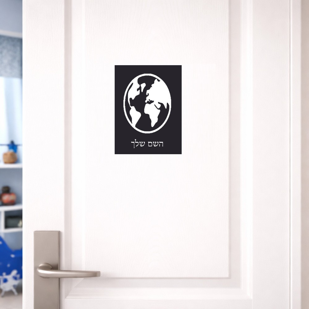 שלט אלומיניום קטן לחדר בעיצוב אישי עם השם שלך בעיצוב עולם גודל השלט 15 × 20 ס"מ. את השם המבוקש ניתן לציין בהזמנה, אם לא צויין אנחנו ניצור קשר לבירור.
