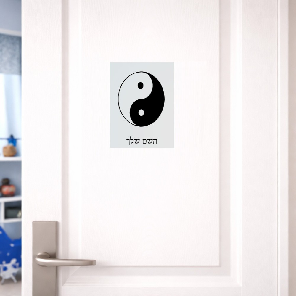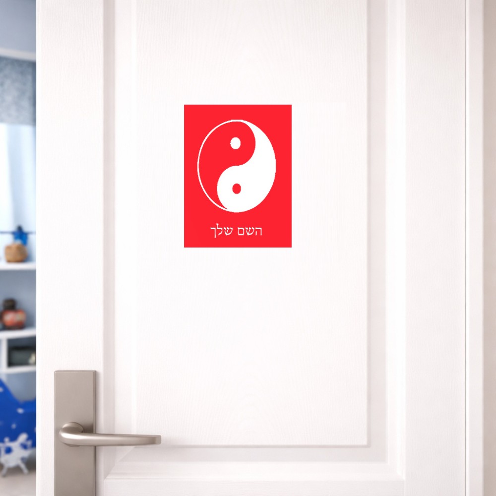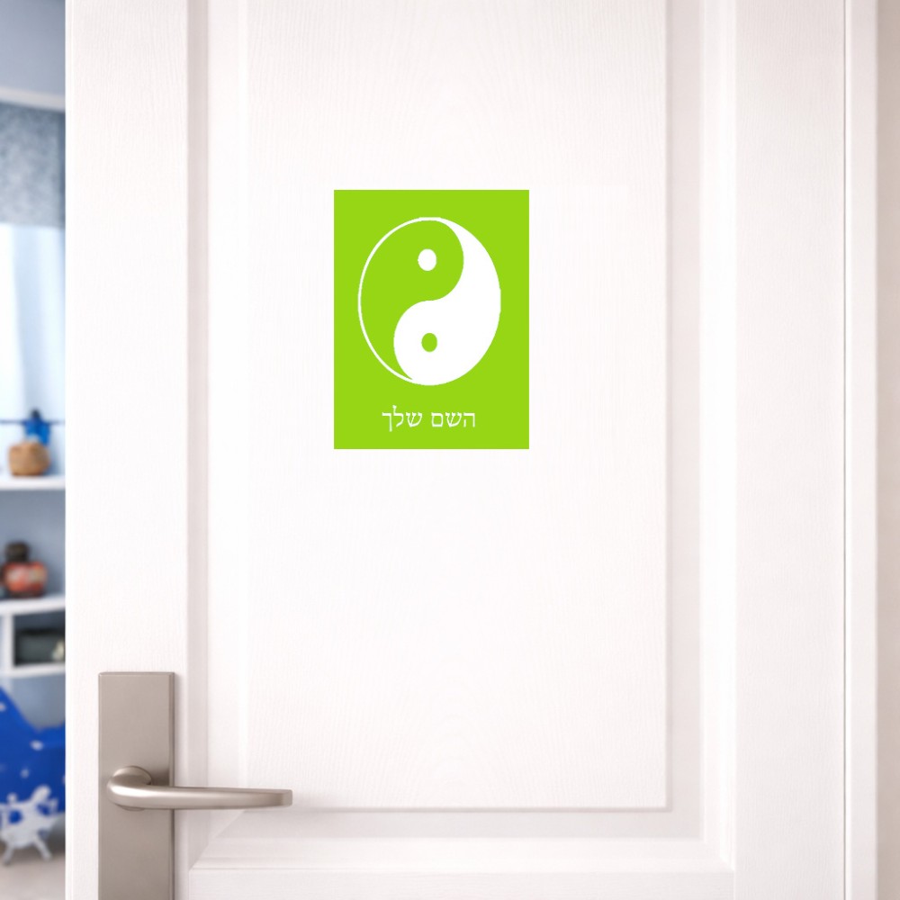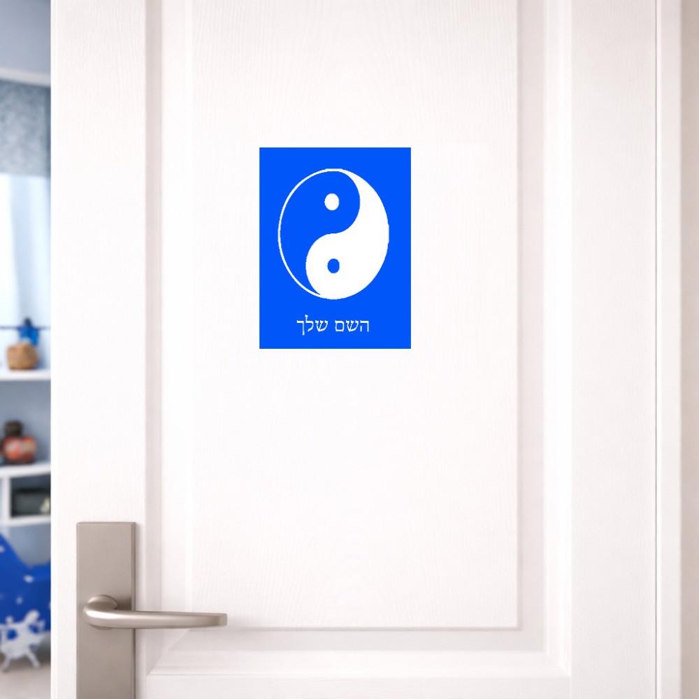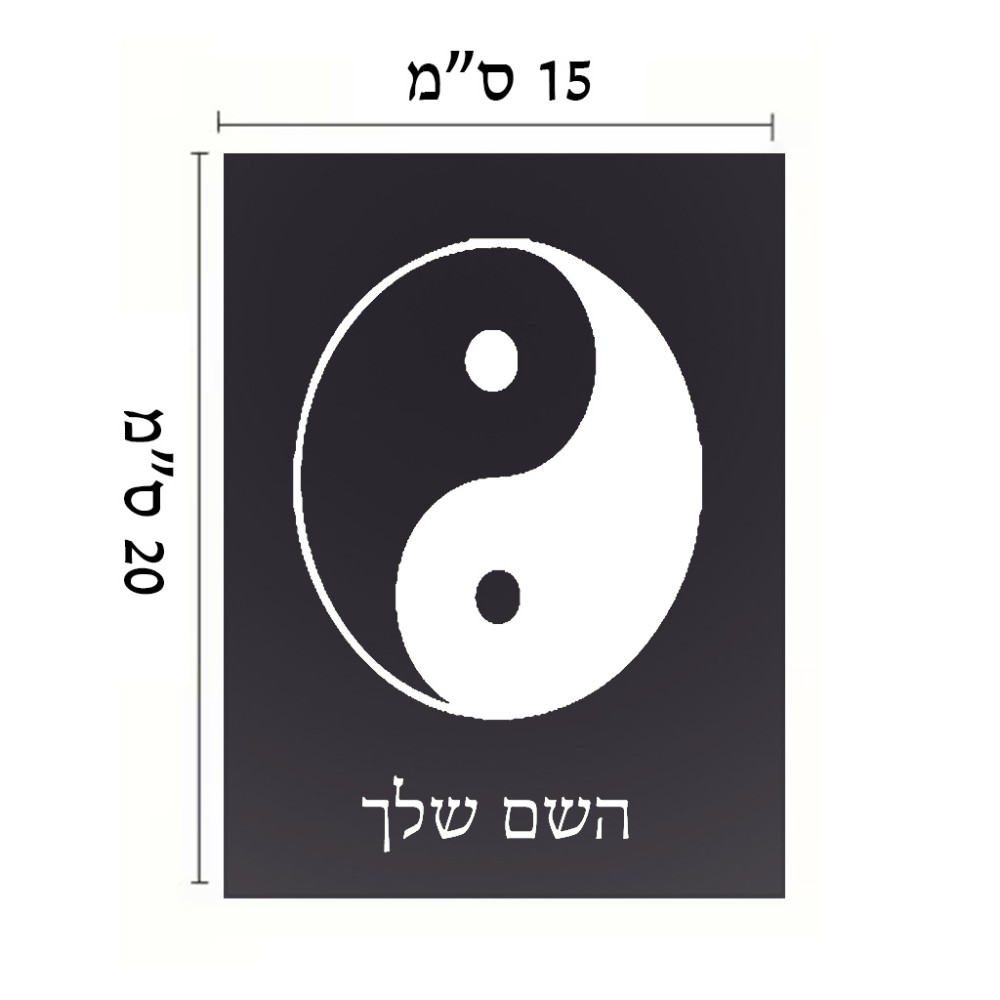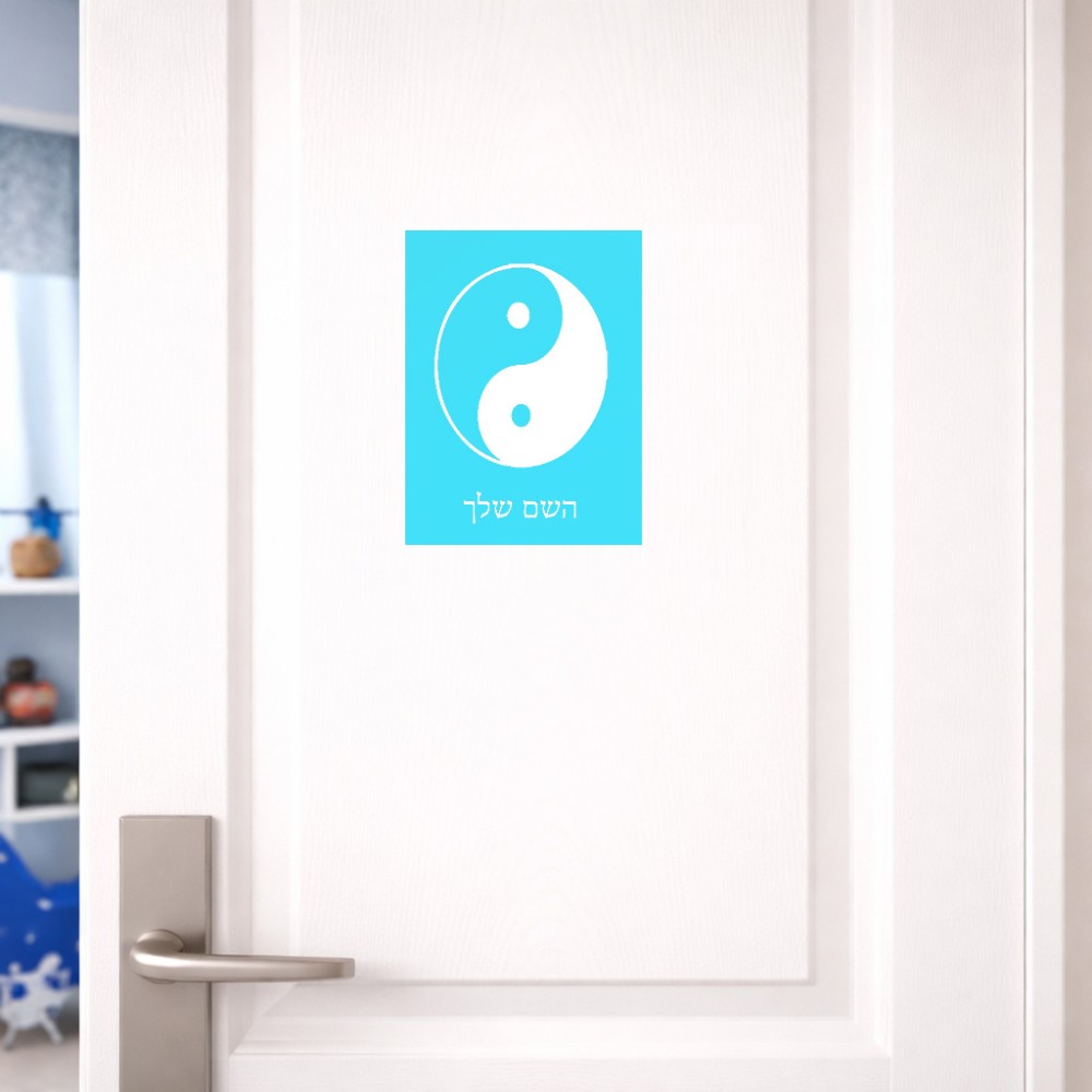 שלט אלומיניום קטן לחדר בעיצוב אישי עם השם שלך בעיצוב סמל יינג יאנג גודל השלט 15 × 20 ס"מ. את השם המבוקש ניתן לציין בהזמנה, אם לא צויין אנחנו ניצור קשר לבירור.