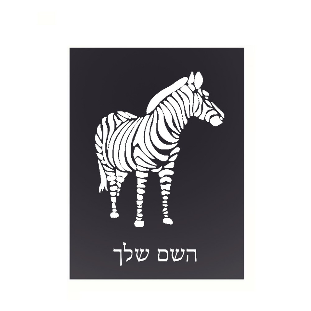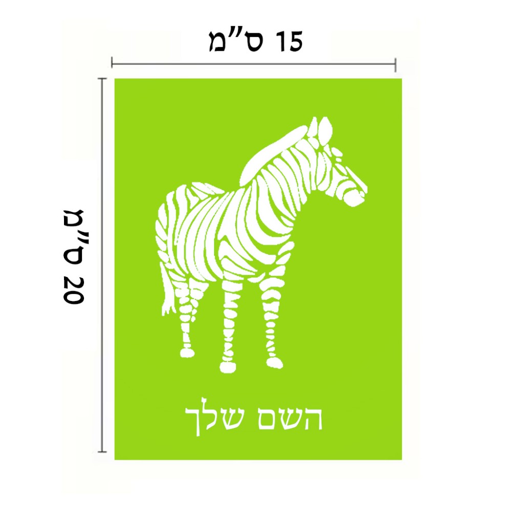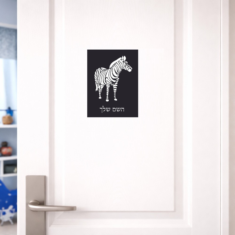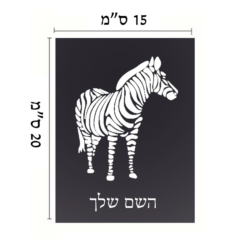 שלט אלומיניום קטן לחדר בעיצוב אישי עם השם שלך בעיצוב זברה גודל השלט 15 × 20 ס"מ. את השם המבוקש ניתן לציין בהזמנה, אם לא צויין אנחנו ניצור קשר לבירור.