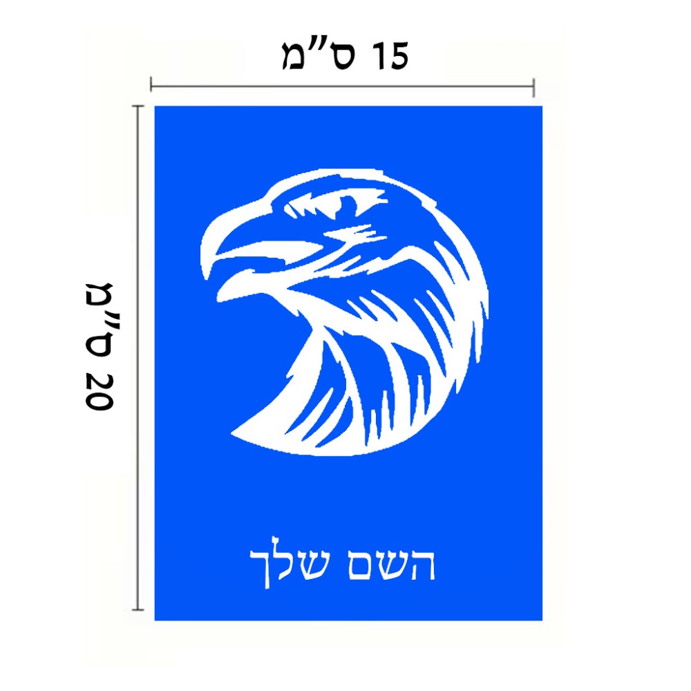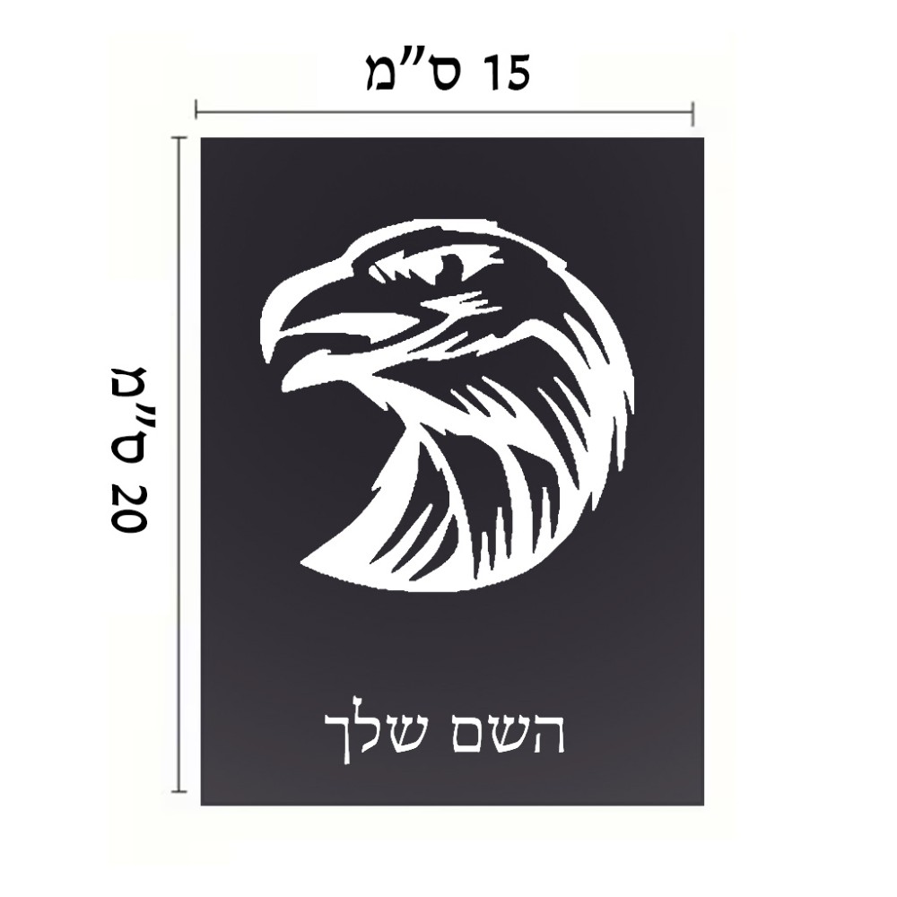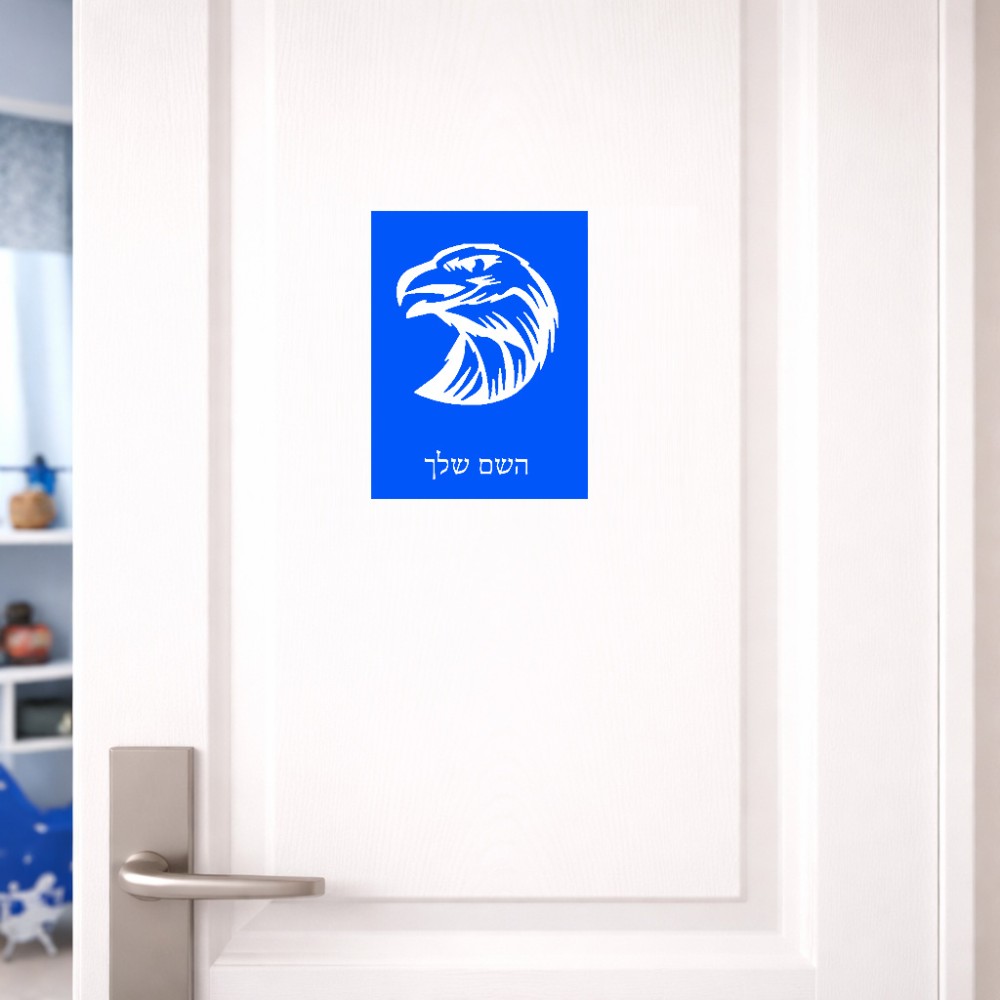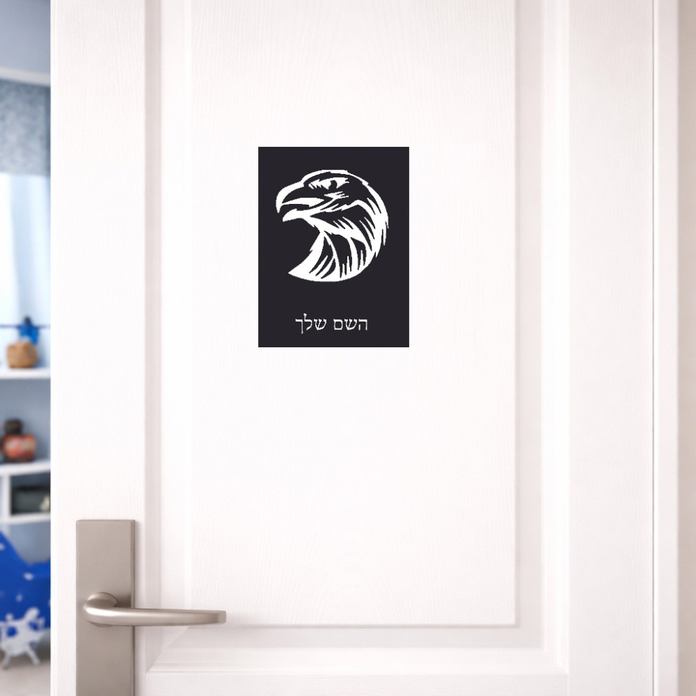 שלט אלומיניום קטן לחדר בעיצוב אישי עם השם שלך בעיצוב ראש נשר גודל השלט 15 × 20 ס"מ. את השם המבוקש ניתן לציין בהזמנה, אם לא צויין אנחנו ניצור קשר לבירור.