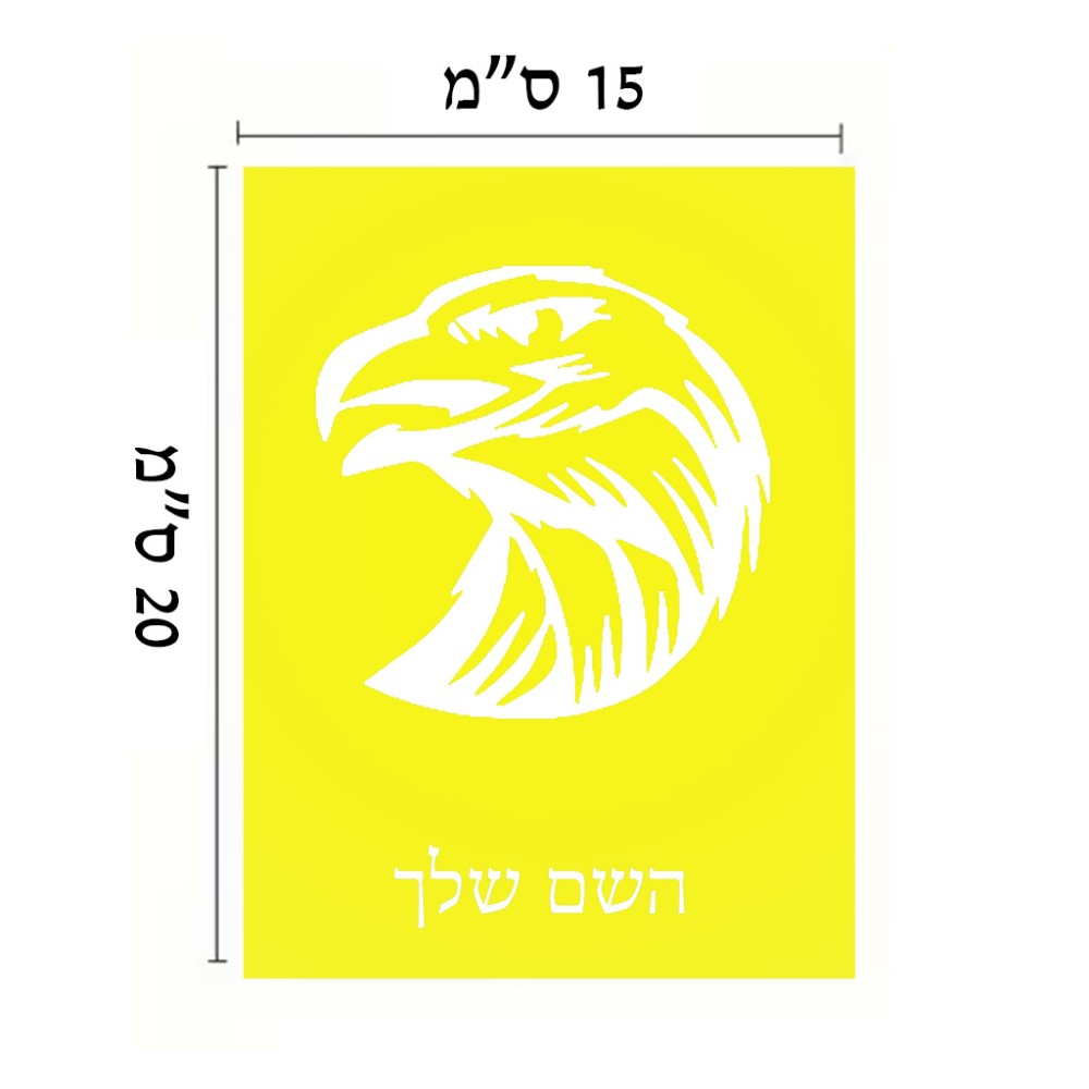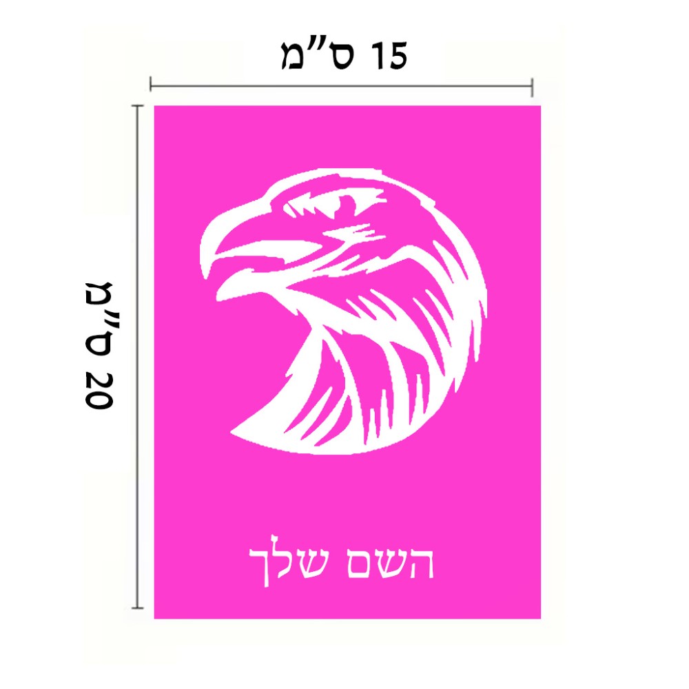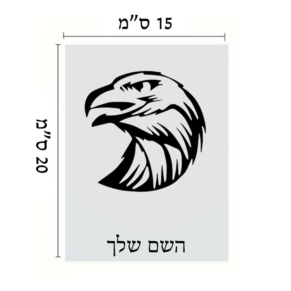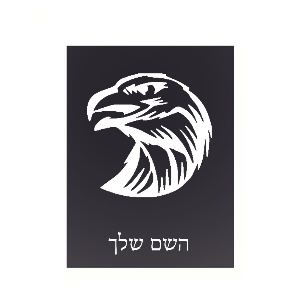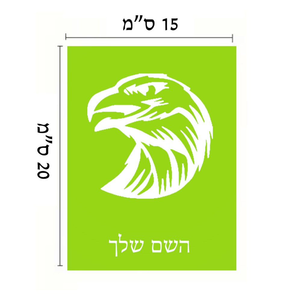 שלט אלומיניום קטן לחדר בעיצוב אישי עם השם שלך בעיצוב ראש נשר גודל השלט 15 × 20 ס"מ. את השם המבוקש ניתן לציין בהזמנה, אם לא צויין אנחנו ניצור קשר לבירור.