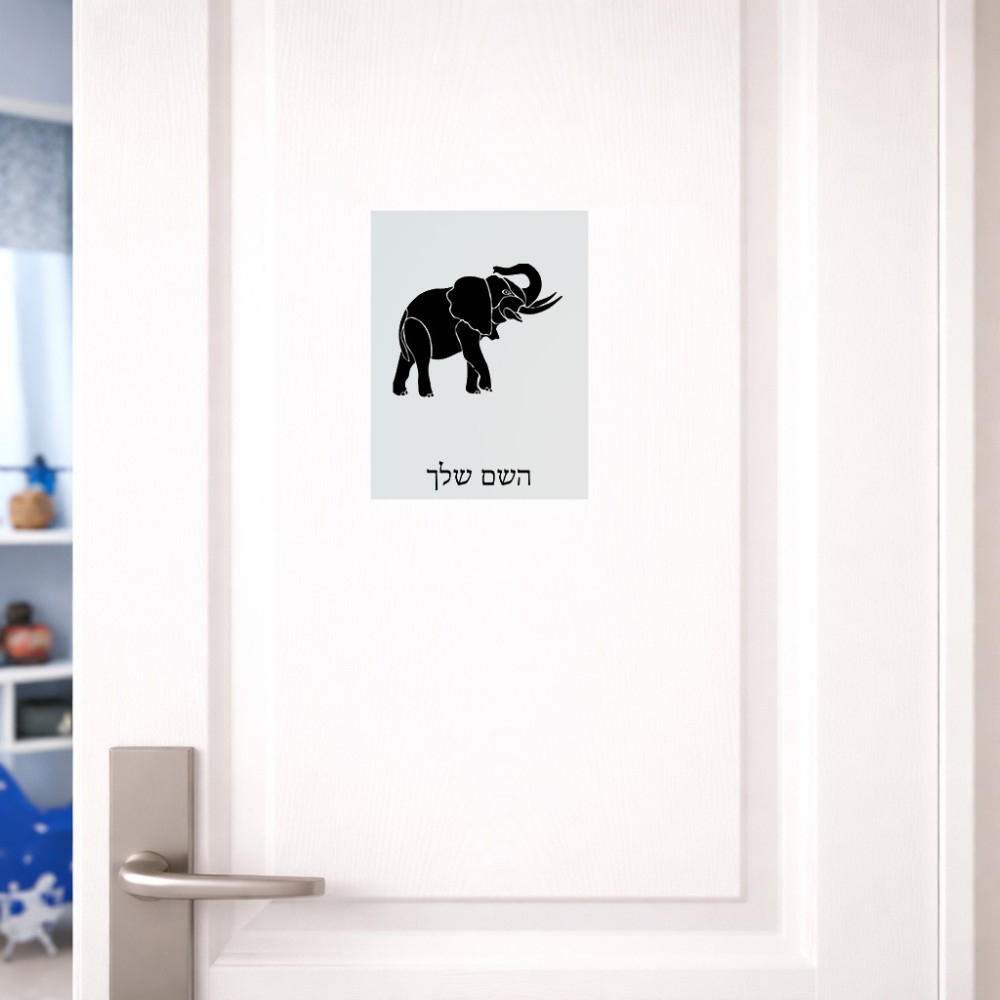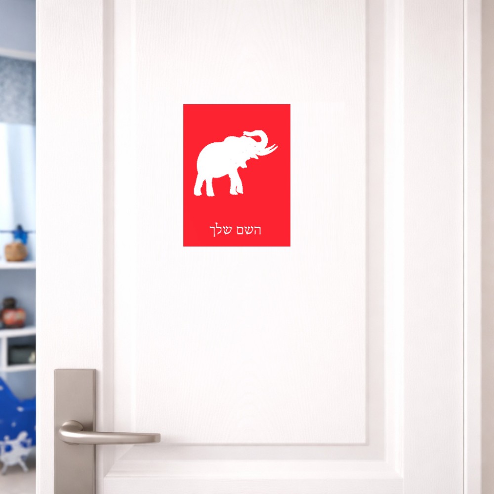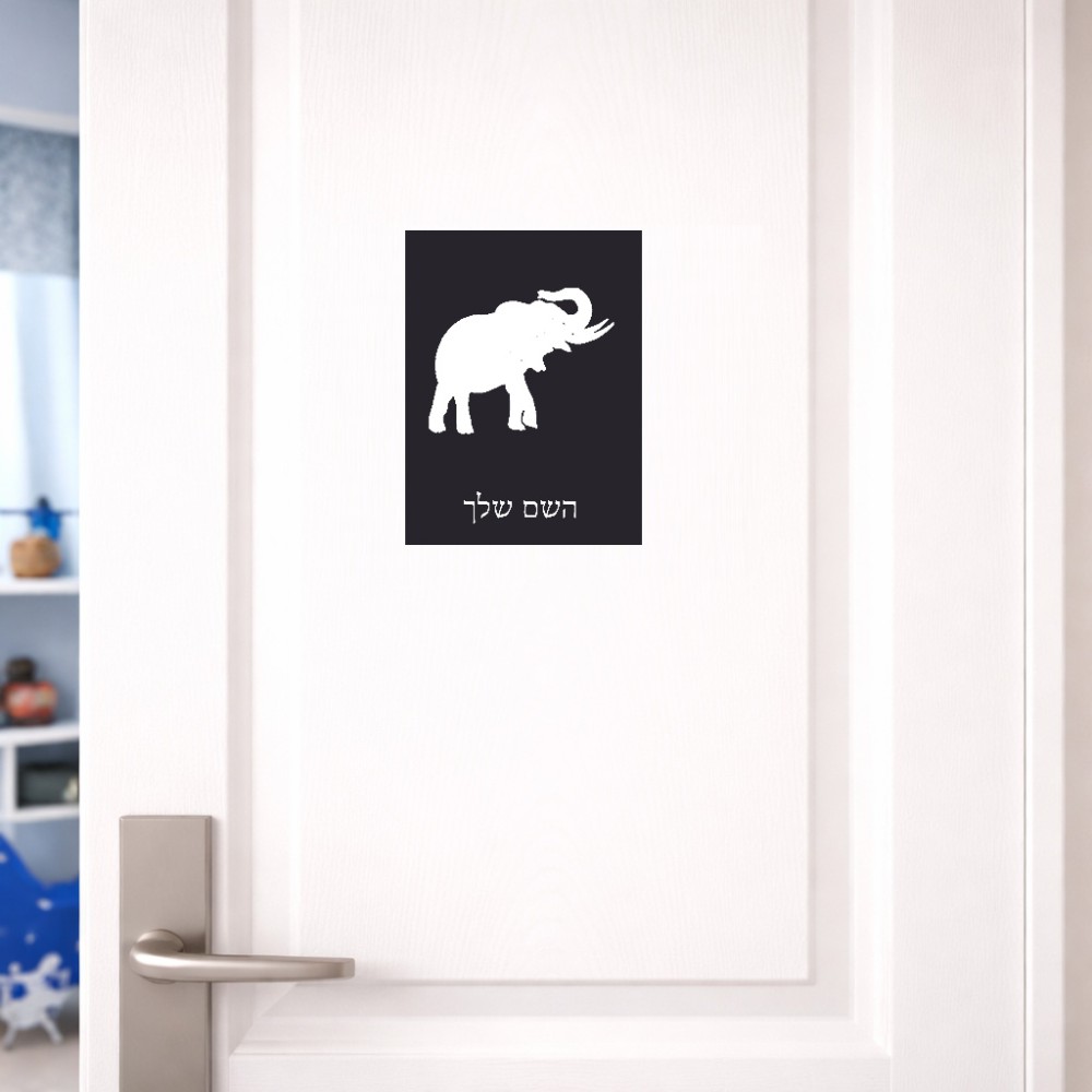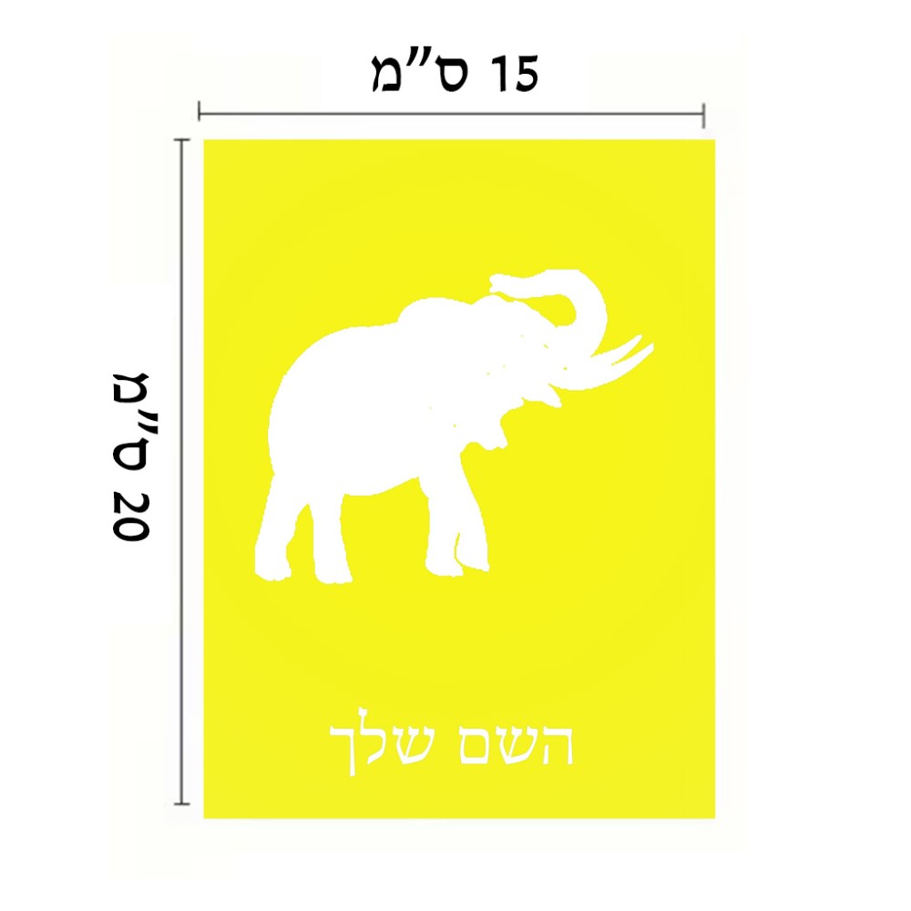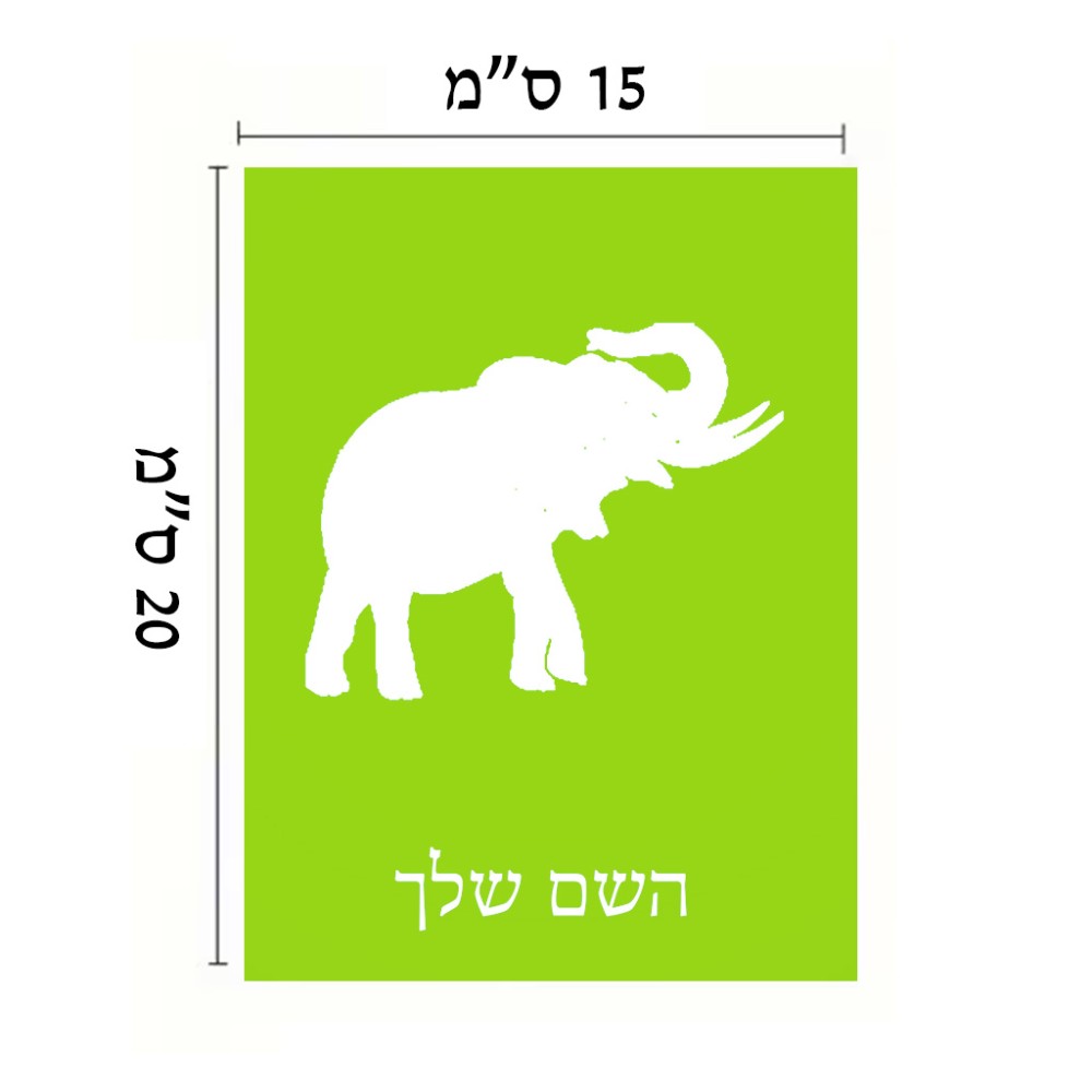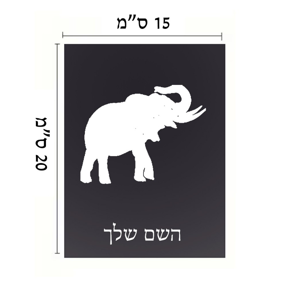 שלט אלומיניום קטן לחדר בעיצוב אישי עם השם שלך בעיצוב פיל גודל השלט 15 × 20 ס"מ. את השם המבוקש ניתן לציין בהזמנה, אם לא צויין אנחנו ניצור קשר לבירור.