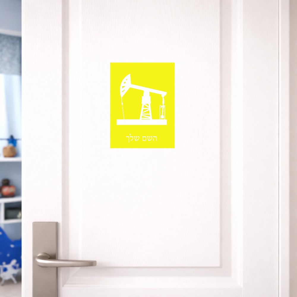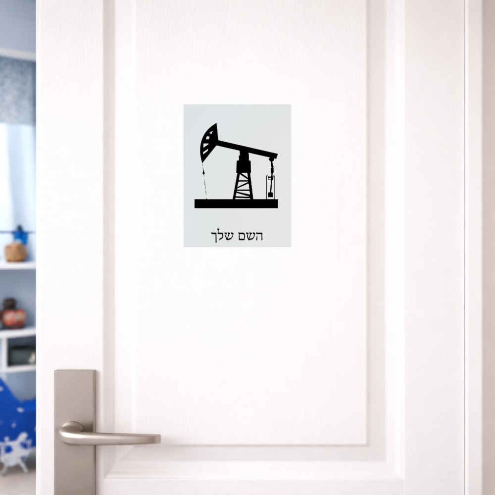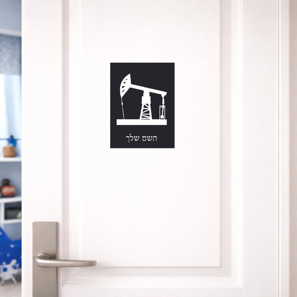 שלט אלומיניום קטן לחדר בעיצוב אישי עם השם שלך בעיצוב באר נפט גודל השלט 15 × 20 ס"מ. את השם המבוקש ניתן לציין בהזמנה, אם לא צויין אנחנו ניצור קשר לבירור.