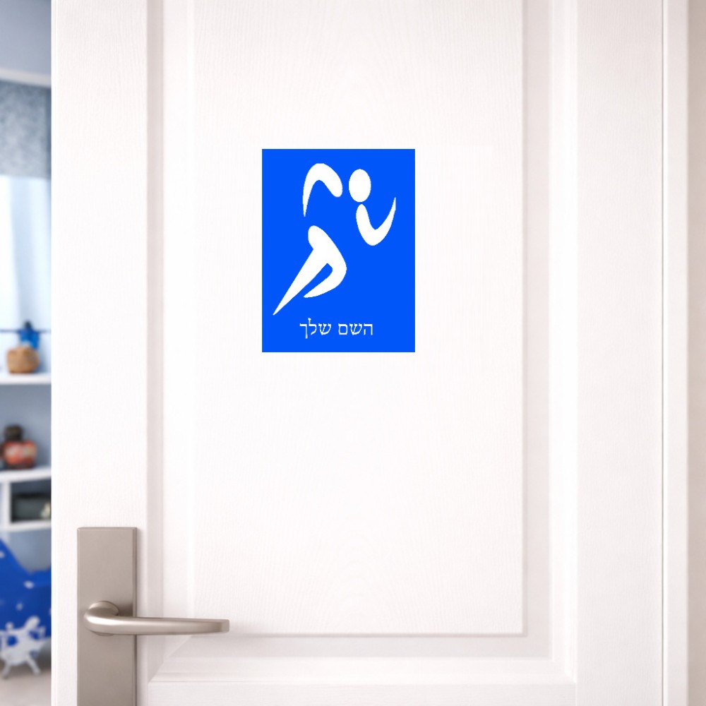 שלט אלומיניום קטן לחדר בעיצוב אישי עם השם שלך בעיצוב רצים אולימפיים גודל השלט 15 × 20 ס"מ. את השם המבוקש ניתן לציין בהזמנה, אם לא צויין אנחנו ניצור קשר לבירור.