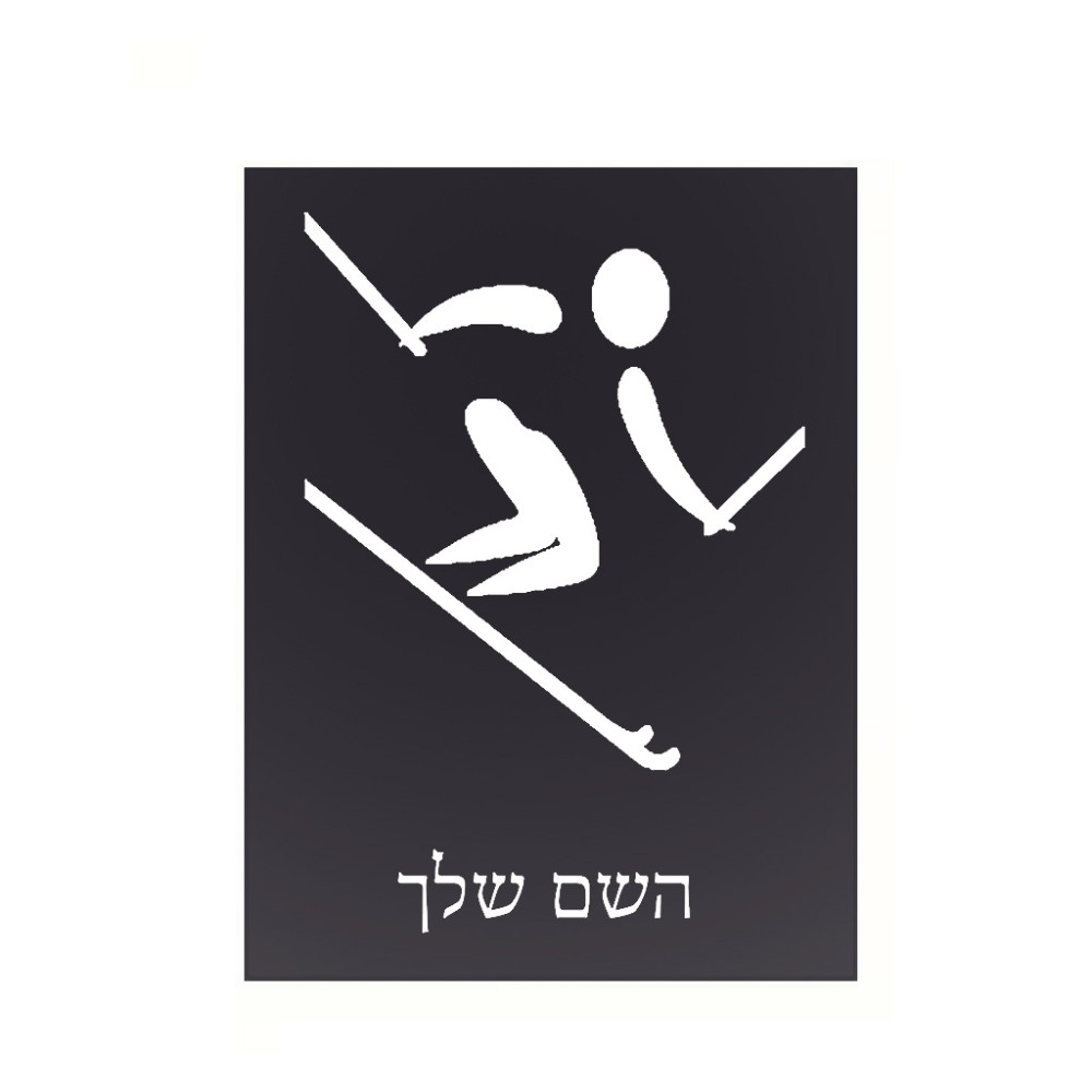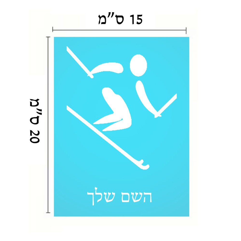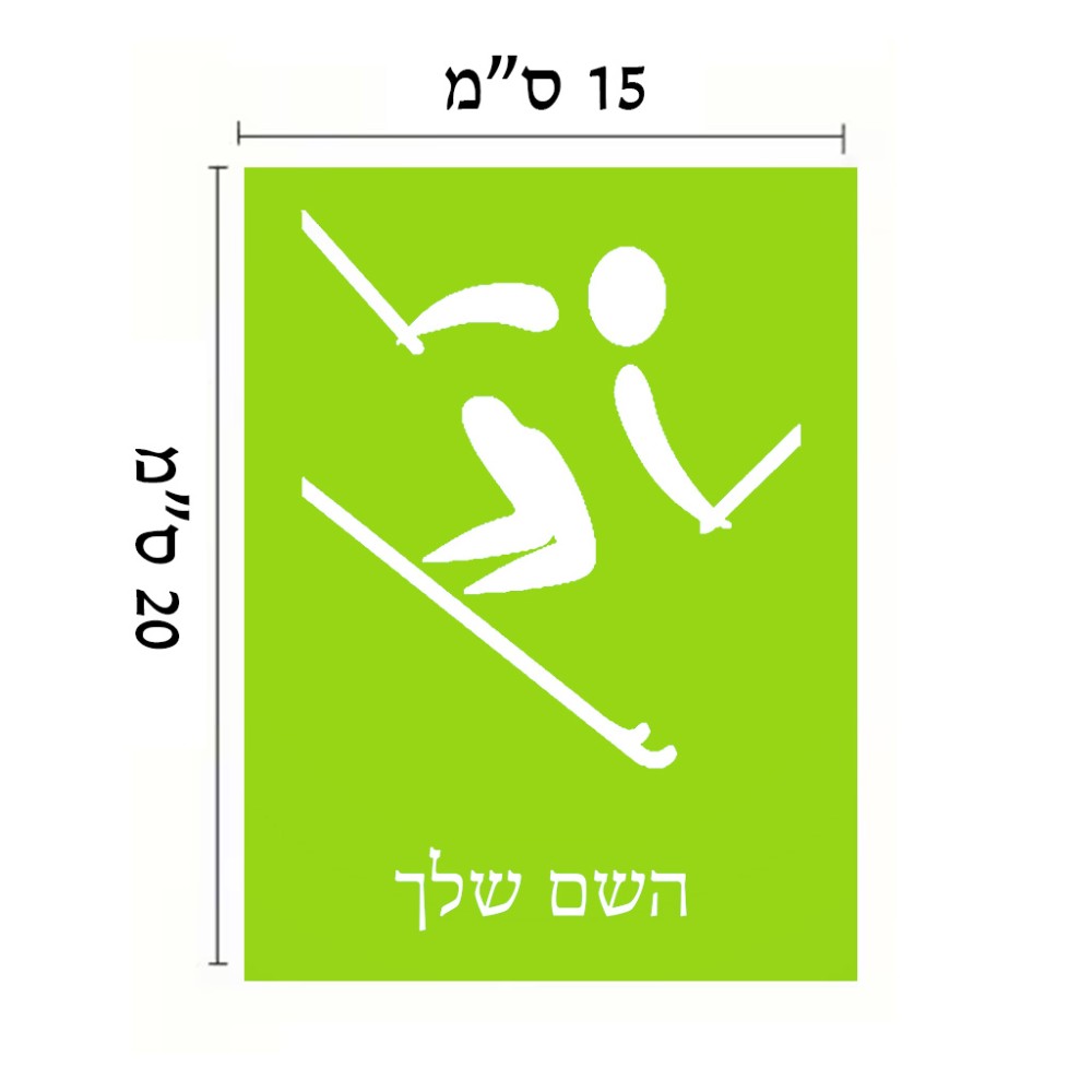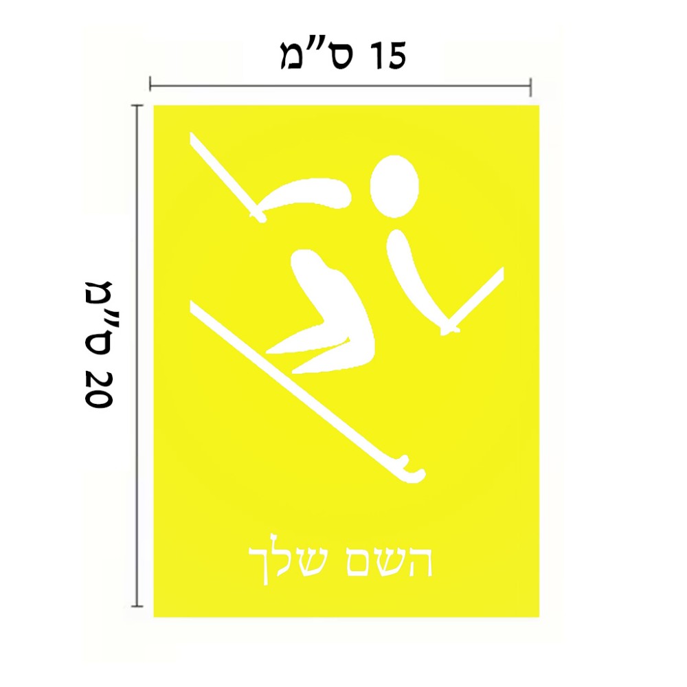 שלט אלומיניום קטן לחדר בעיצוב אישי עם השם שלך בעיצוב סקי אולימפי גודל השלט 15 × 20 ס"מ. את השם המבוקש ניתן לציין בהזמנה, אם לא צויין אנחנו ניצור קשר לבירור.