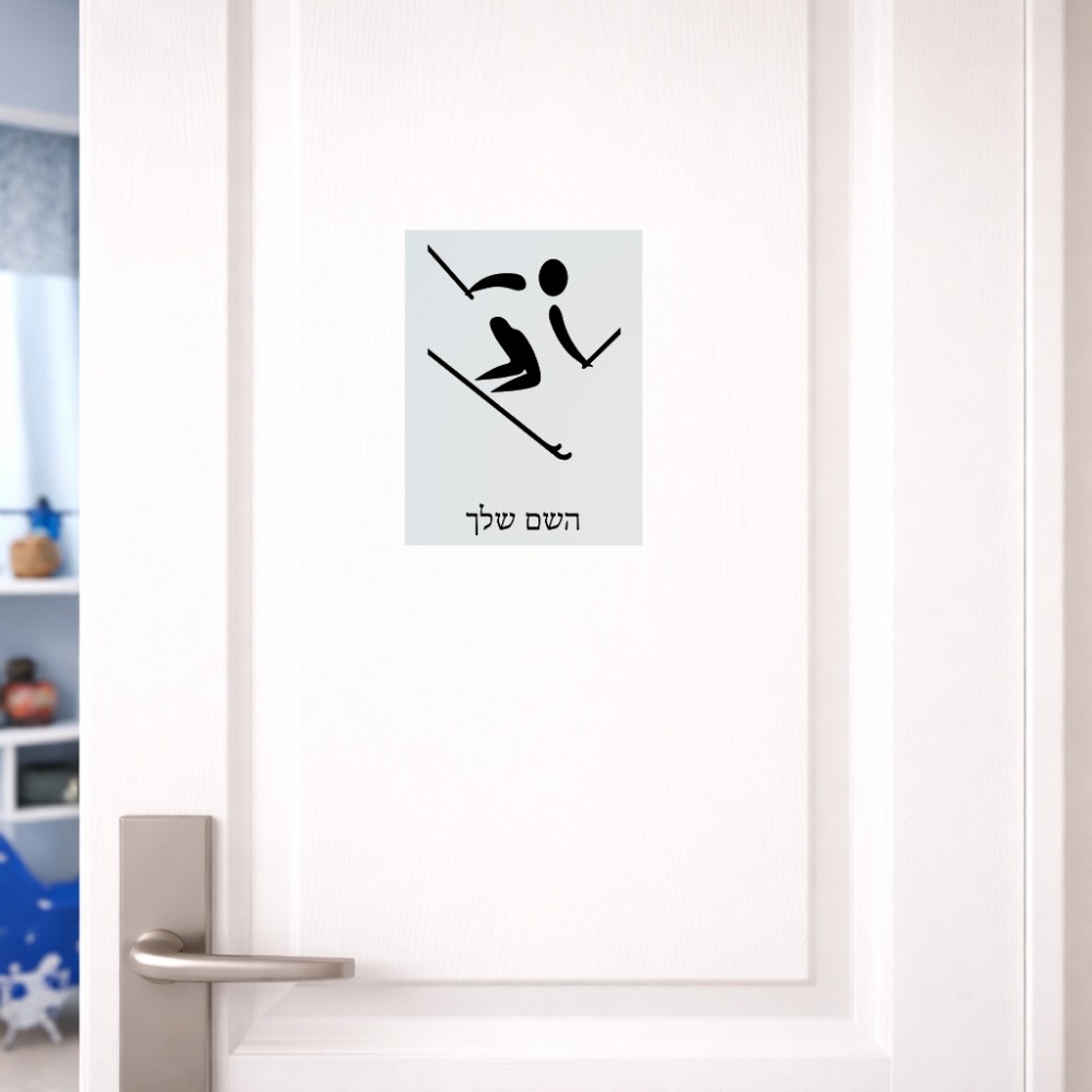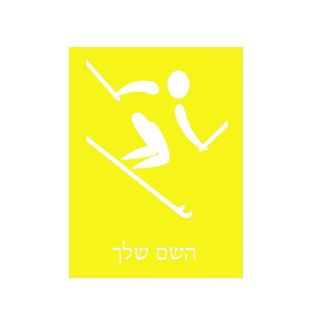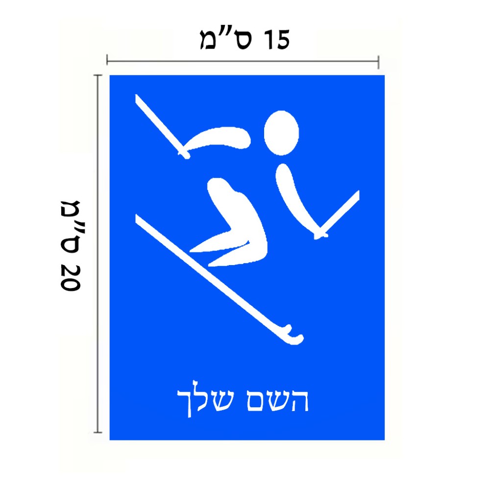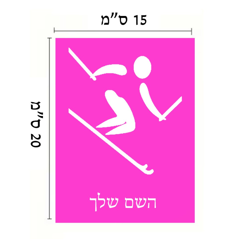 שלט אלומיניום קטן לחדר בעיצוב אישי עם השם שלך בעיצוב סקי אולימפי גודל השלט 15 × 20 ס"מ. את השם המבוקש ניתן לציין בהזמנה, אם לא צויין אנחנו ניצור קשר לבירור.