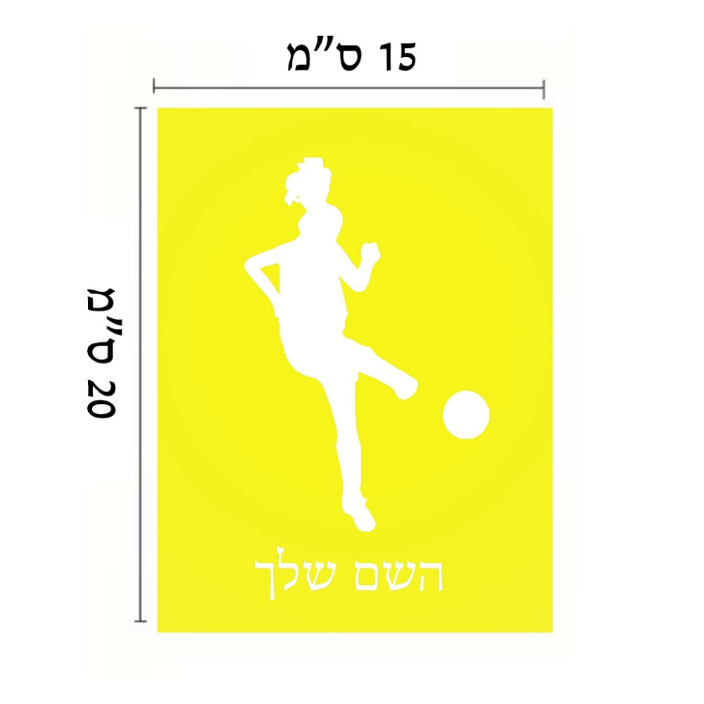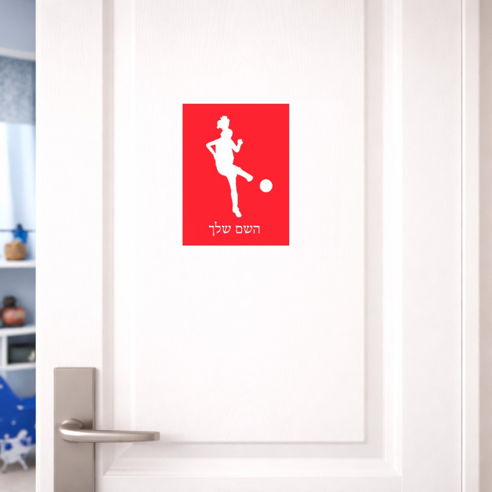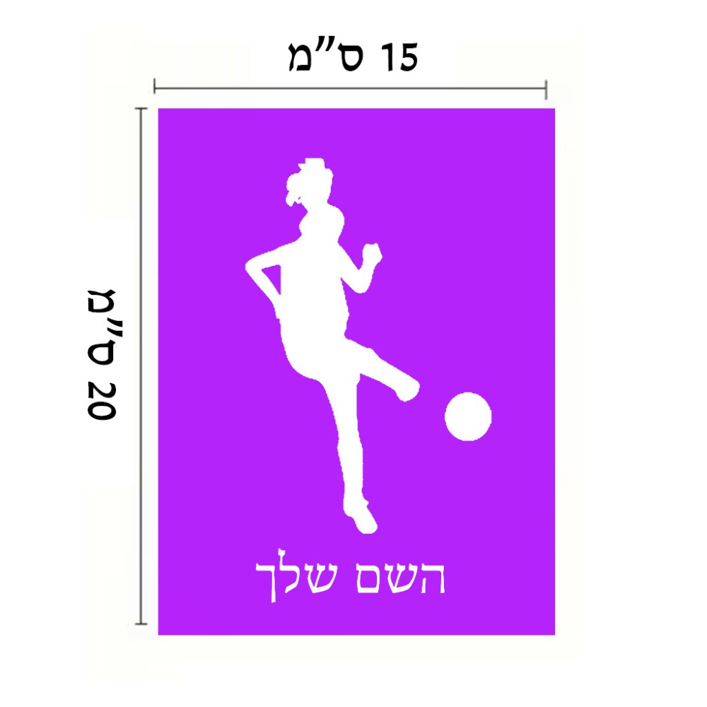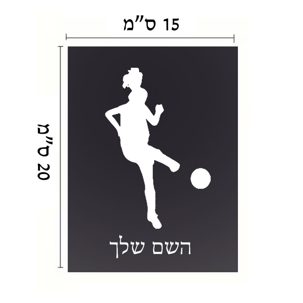 שלט אלומיניום קטן לחדר בעיצוב אישי עם השם שלך בעיצוב שחקנית כדורגל - אישה גודל השלט 15 × 20 ס"מ. את השם המבוקש ניתן לציין בהזמנה, אם לא צויין אנחנו ניצור קשר לבירור.