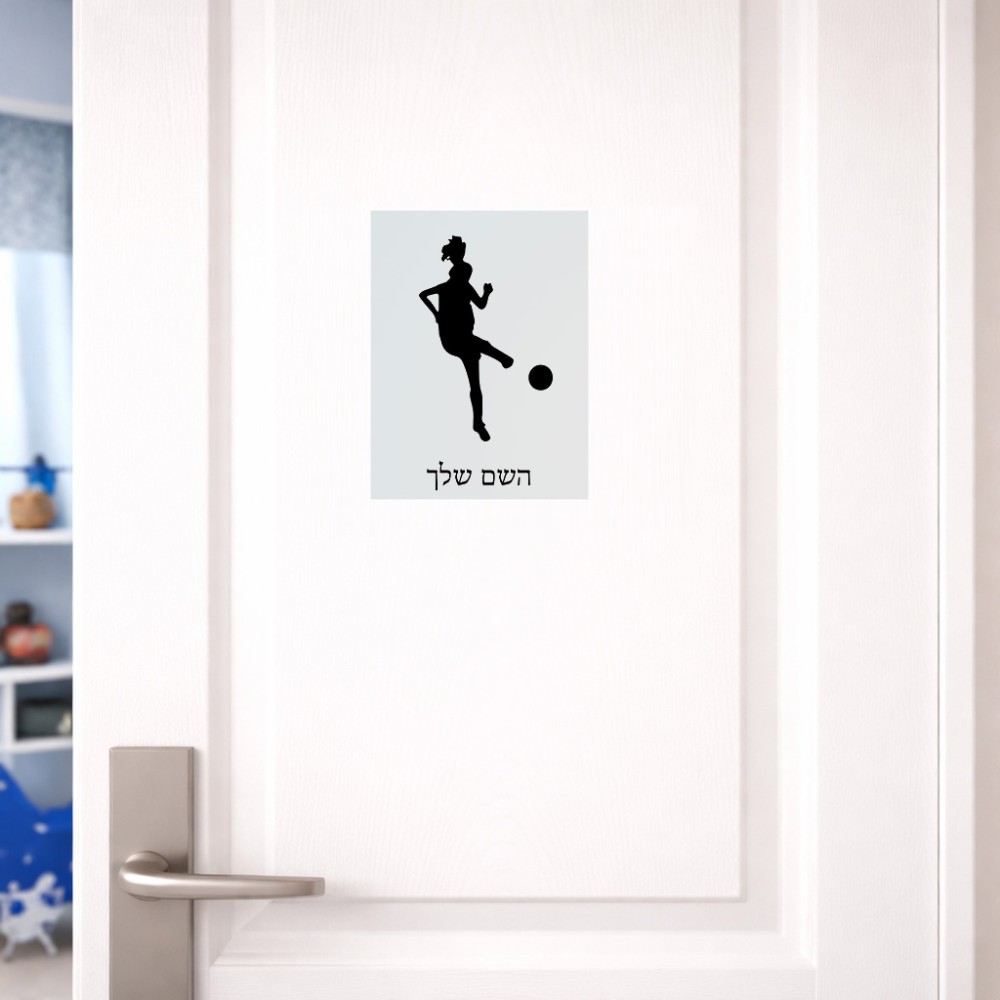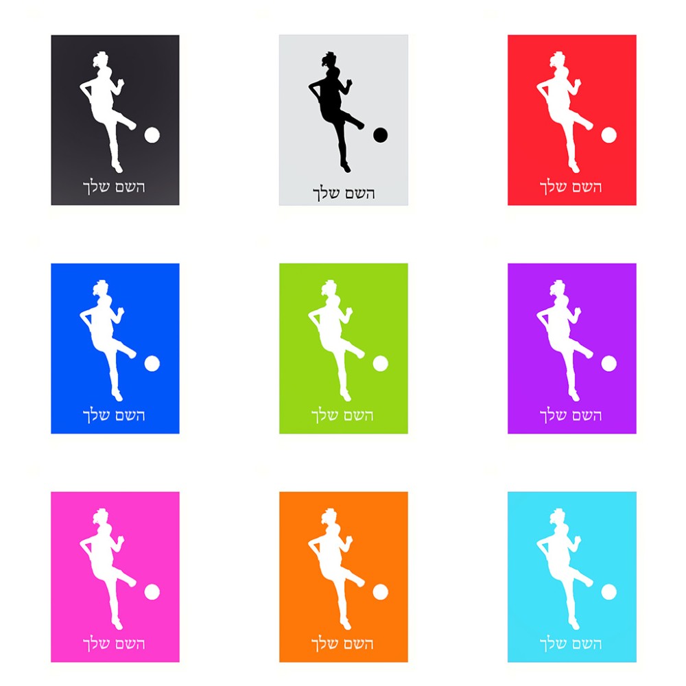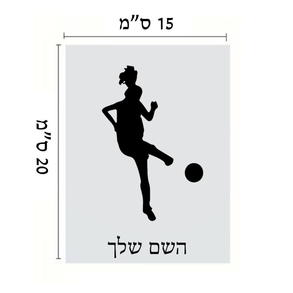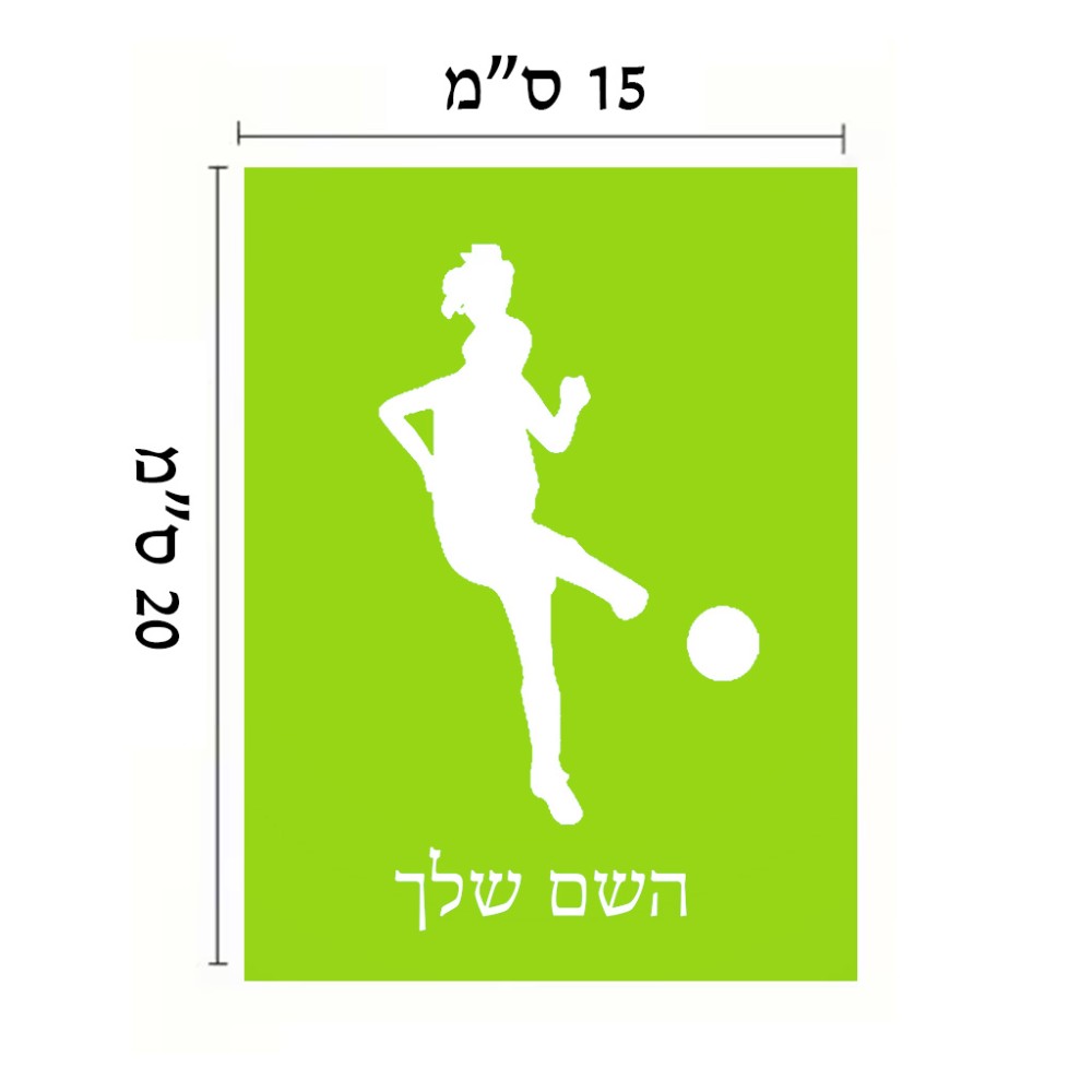 שלט אלומיניום קטן לחדר בעיצוב אישי עם השם שלך בעיצוב שחקנית כדורגל - אישה גודל השלט 15 × 20 ס"מ. את השם המבוקש ניתן לציין בהזמנה, אם לא צויין אנחנו ניצור קשר לבירור.