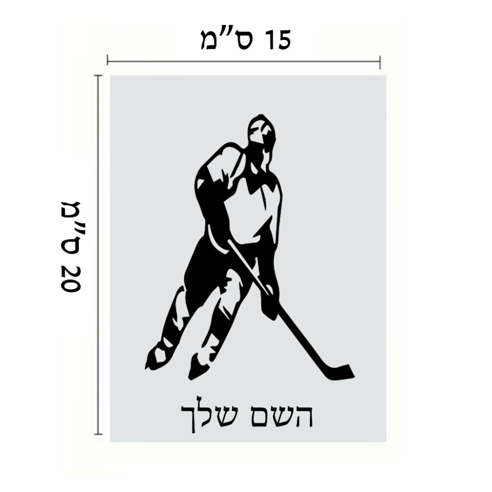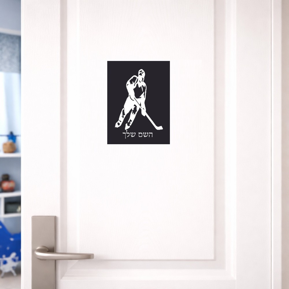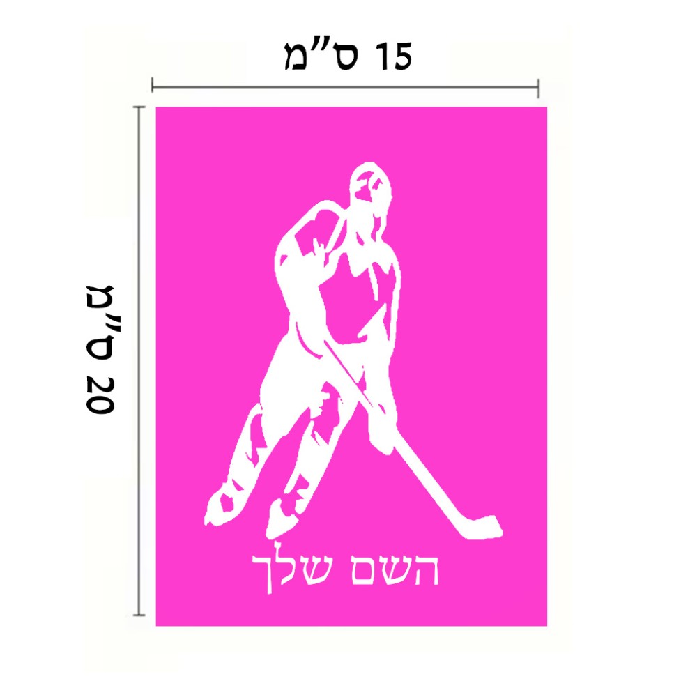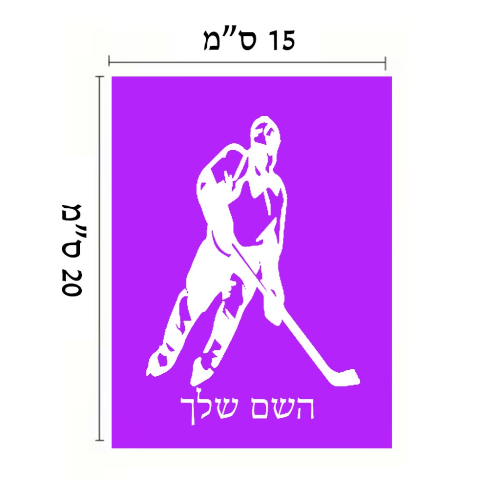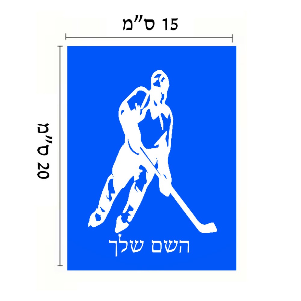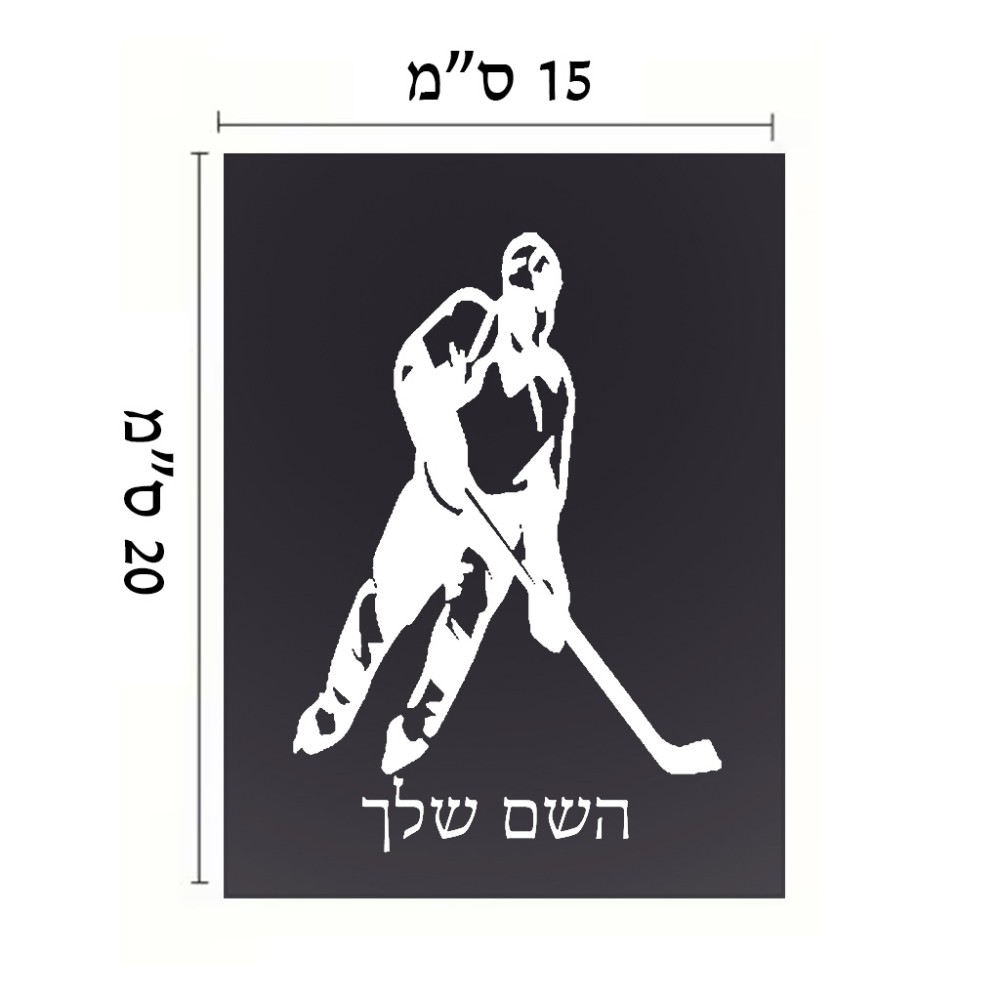 שלט אלומיניום קטן לחדר בעיצוב אישי עם השם שלך בעיצוב שחקן הוקי גודל השלט 15 × 20 ס"מ. את השם המבוקש ניתן לציין בהזמנה, אם לא צויין אנחנו ניצור קשר לבירור.