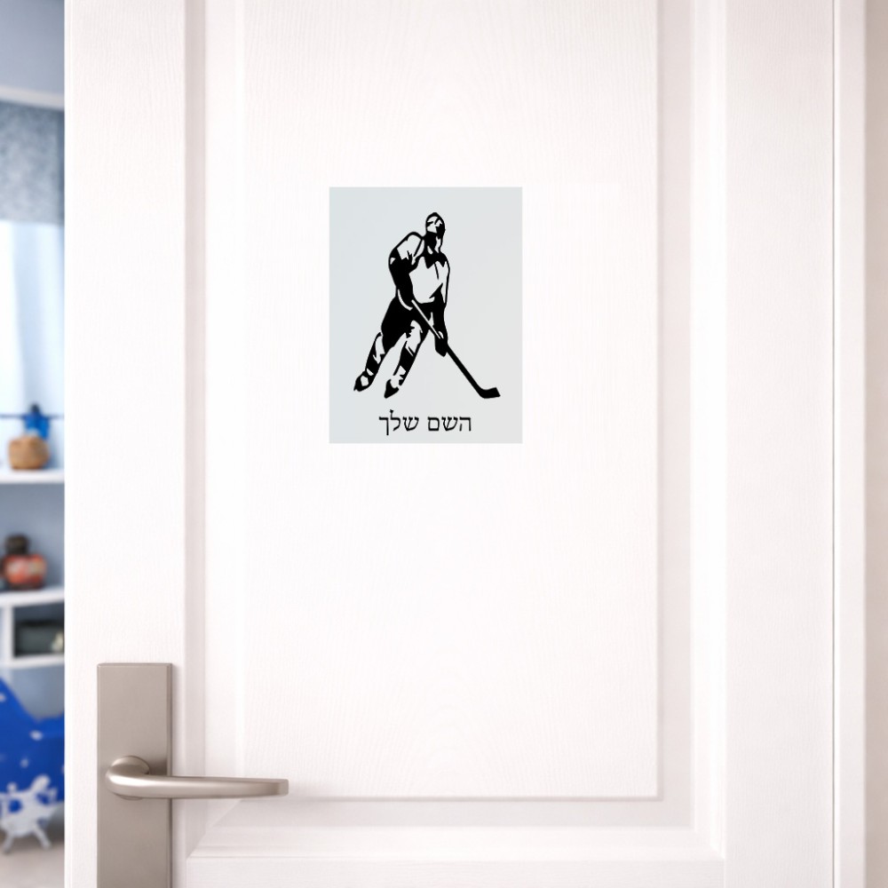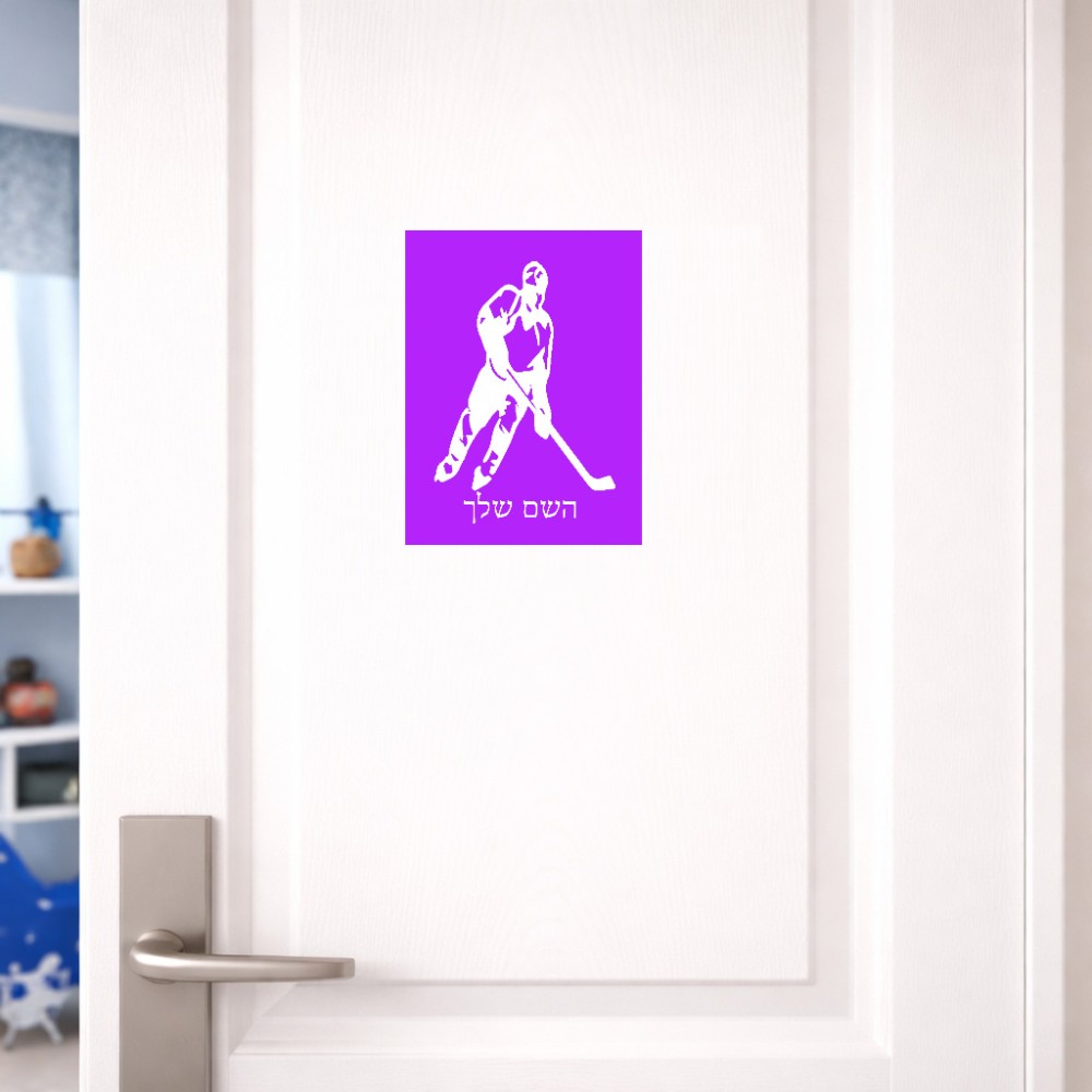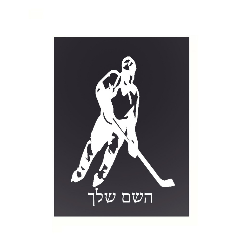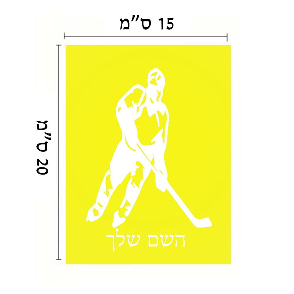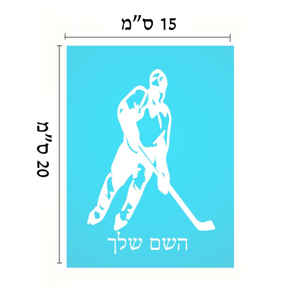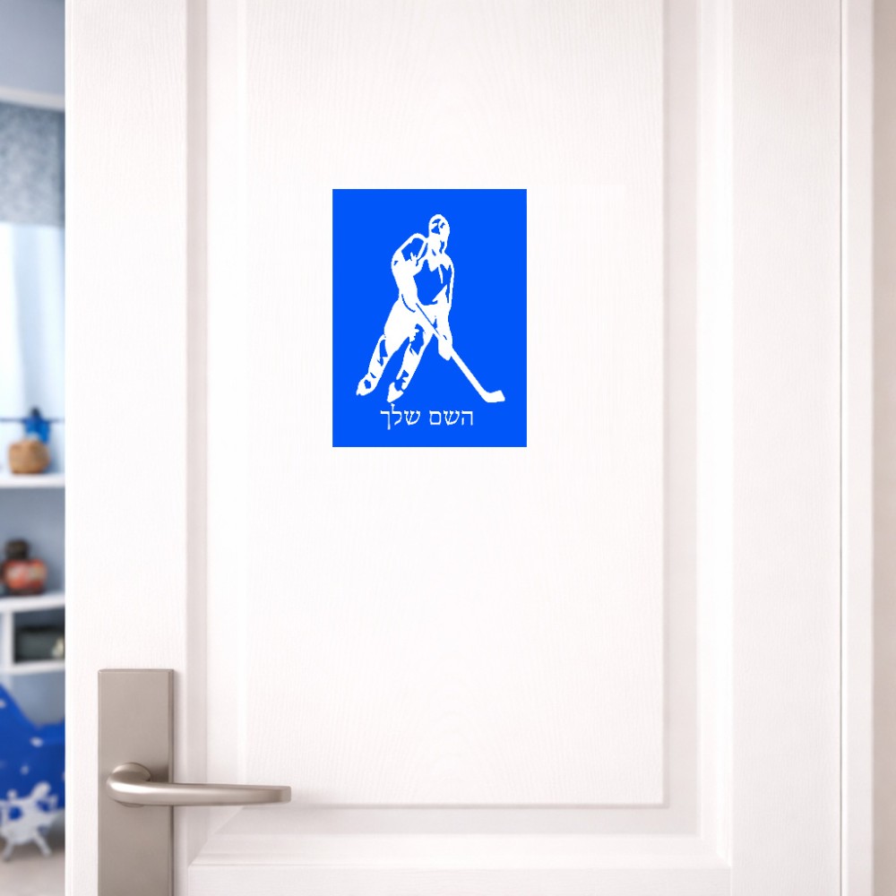 שלט אלומיניום קטן לחדר בעיצוב אישי עם השם שלך בעיצוב שחקן הוקי גודל השלט 15 × 20 ס"מ. את השם המבוקש ניתן לציין בהזמנה, אם לא צויין אנחנו ניצור קשר לבירור.