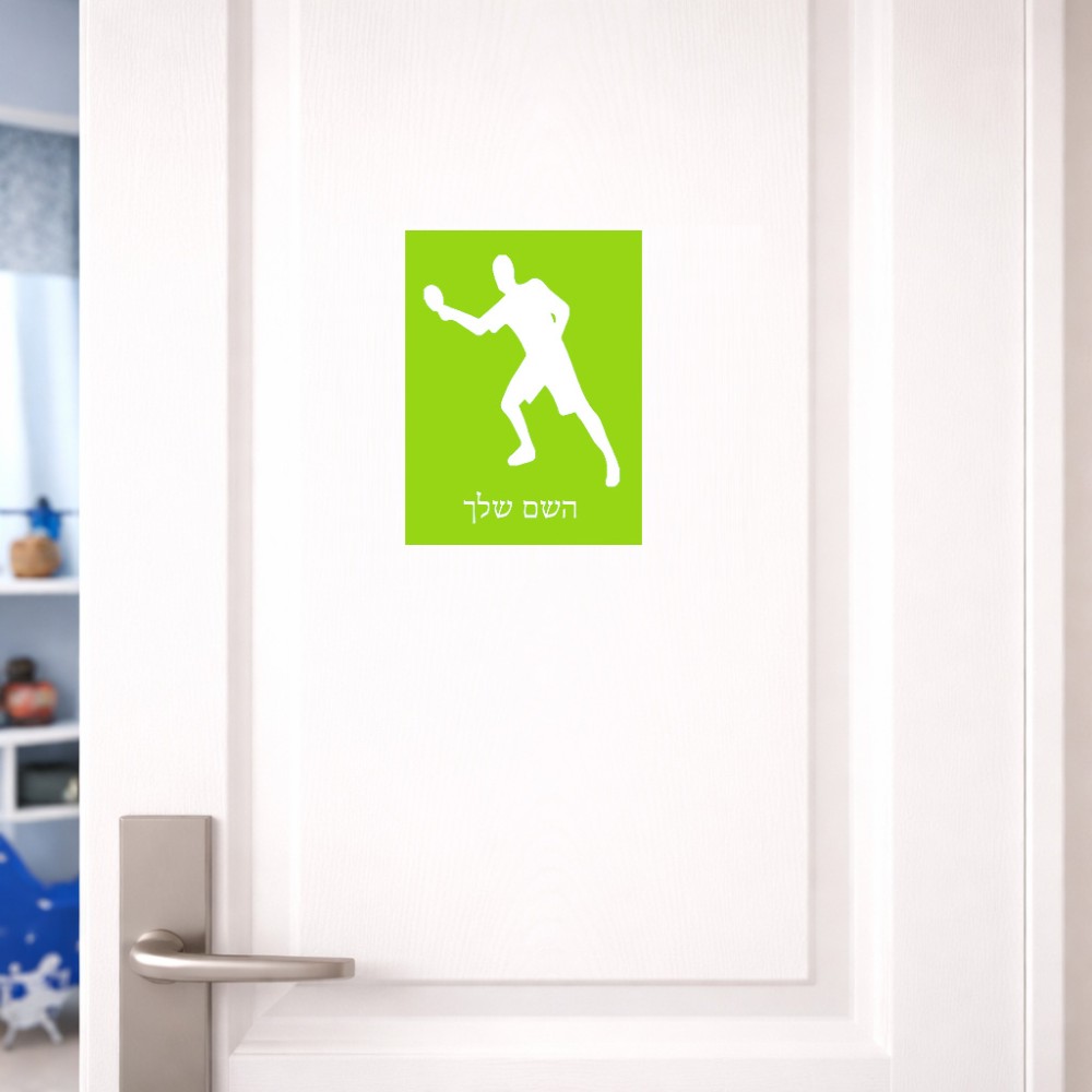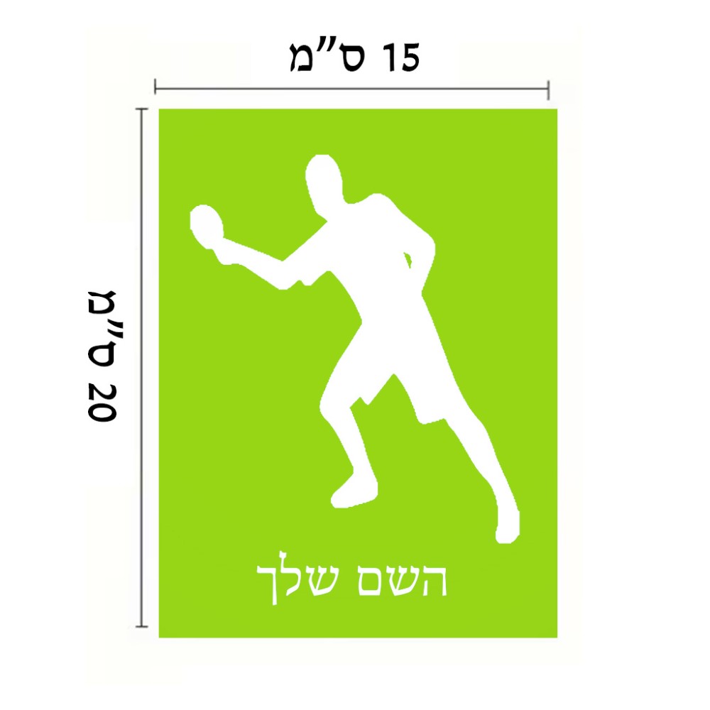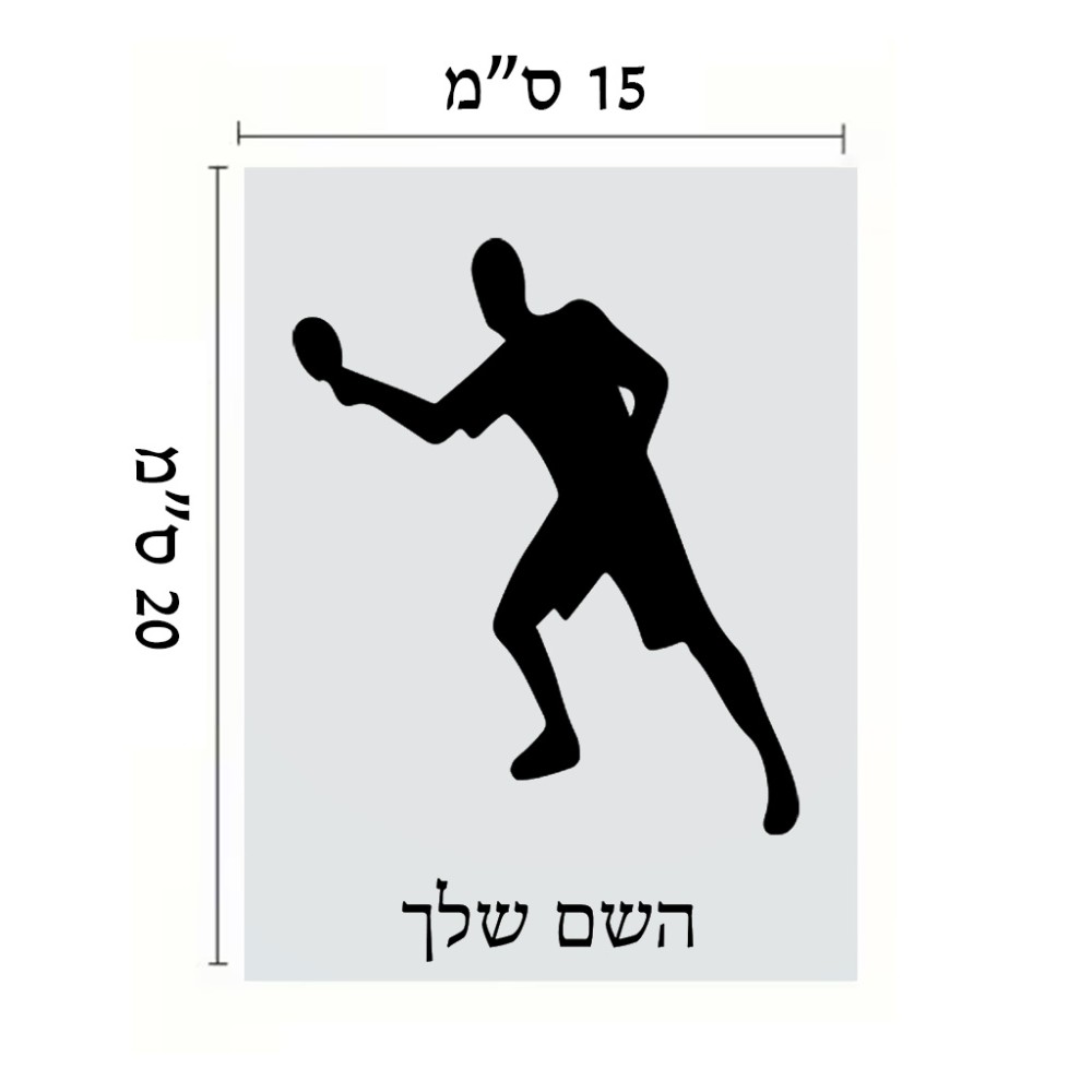 שלט אלומיניום קטן לחדר בעיצוב אישי עם השם שלך בעיצוב שחקן פינג פונג גודל השלט 15 × 20 ס"מ. את השם המבוקש ניתן לציין בהזמנה, אם לא צויין אנחנו ניצור קשר לבירור.