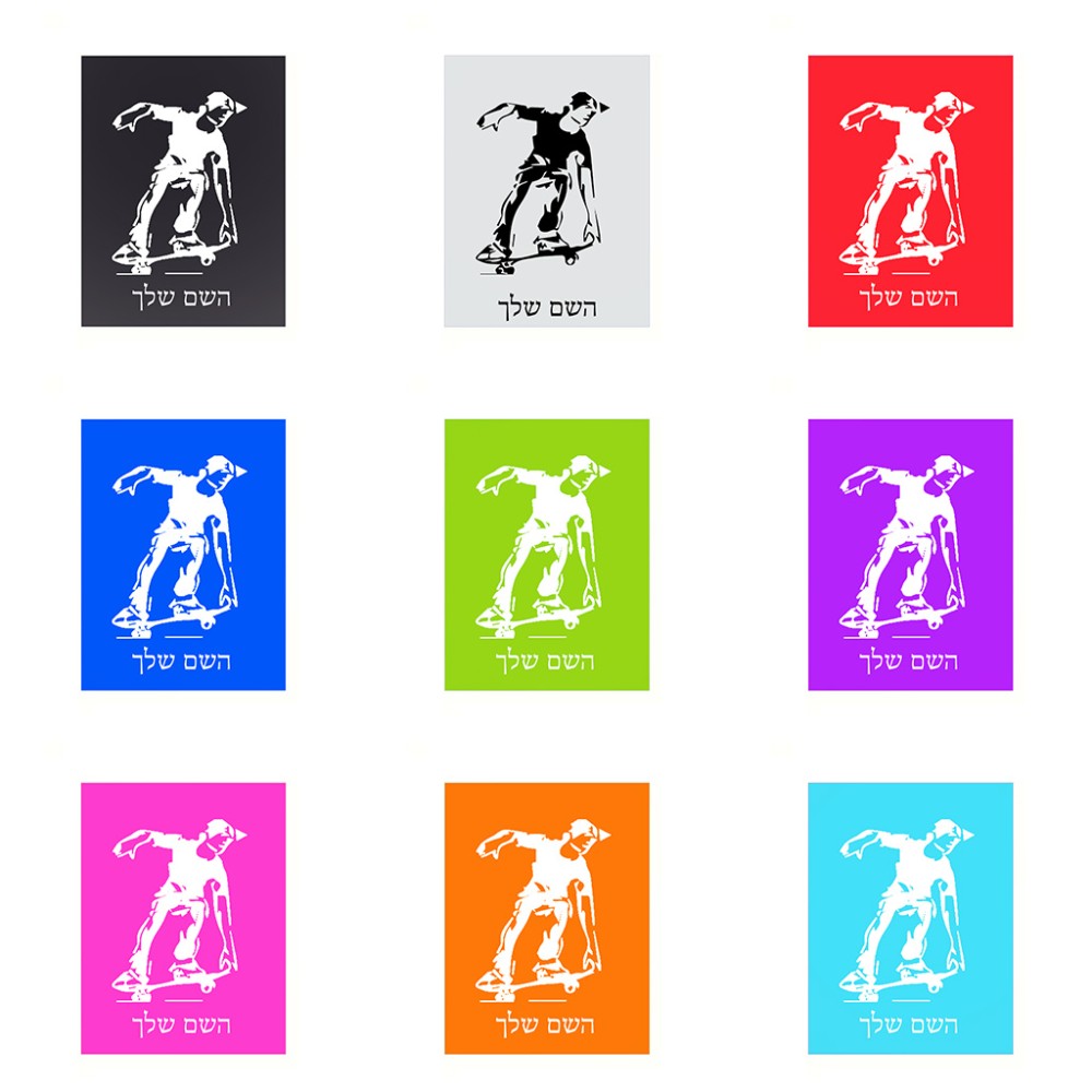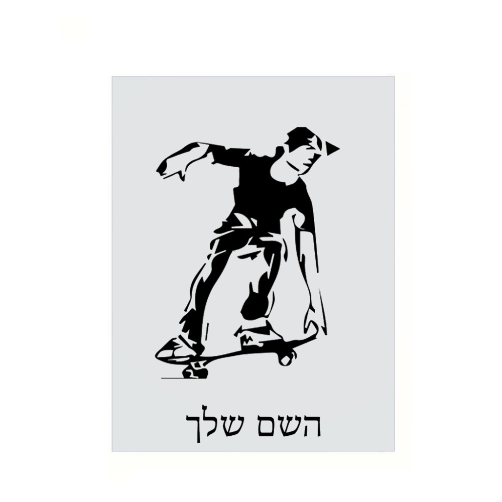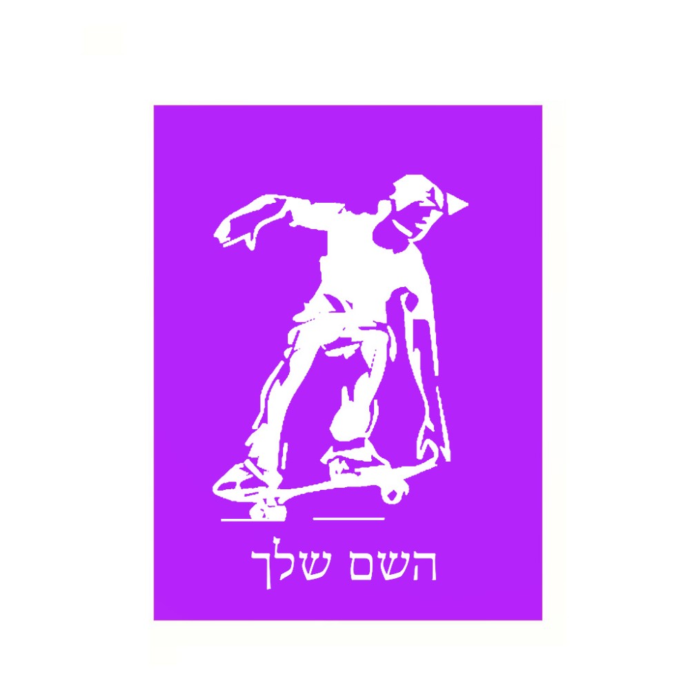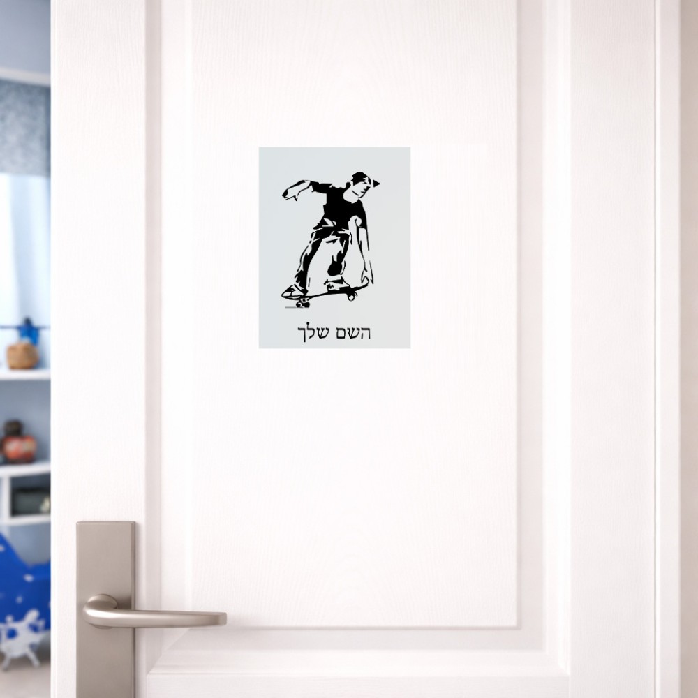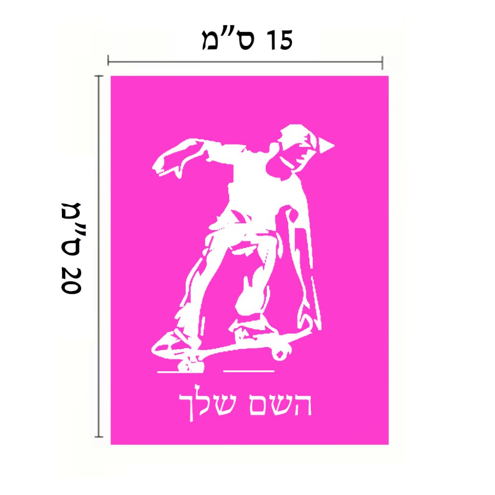 שלט אלומיניום קטן לחדר בעיצוב אישי עם השם שלך בעיצוב ילד סקייטבורד גודל השלט 15 × 20 ס"מ. את השם המבוקש ניתן לציין בהזמנה, אם לא צויין אנחנו ניצור קשר לבירור.