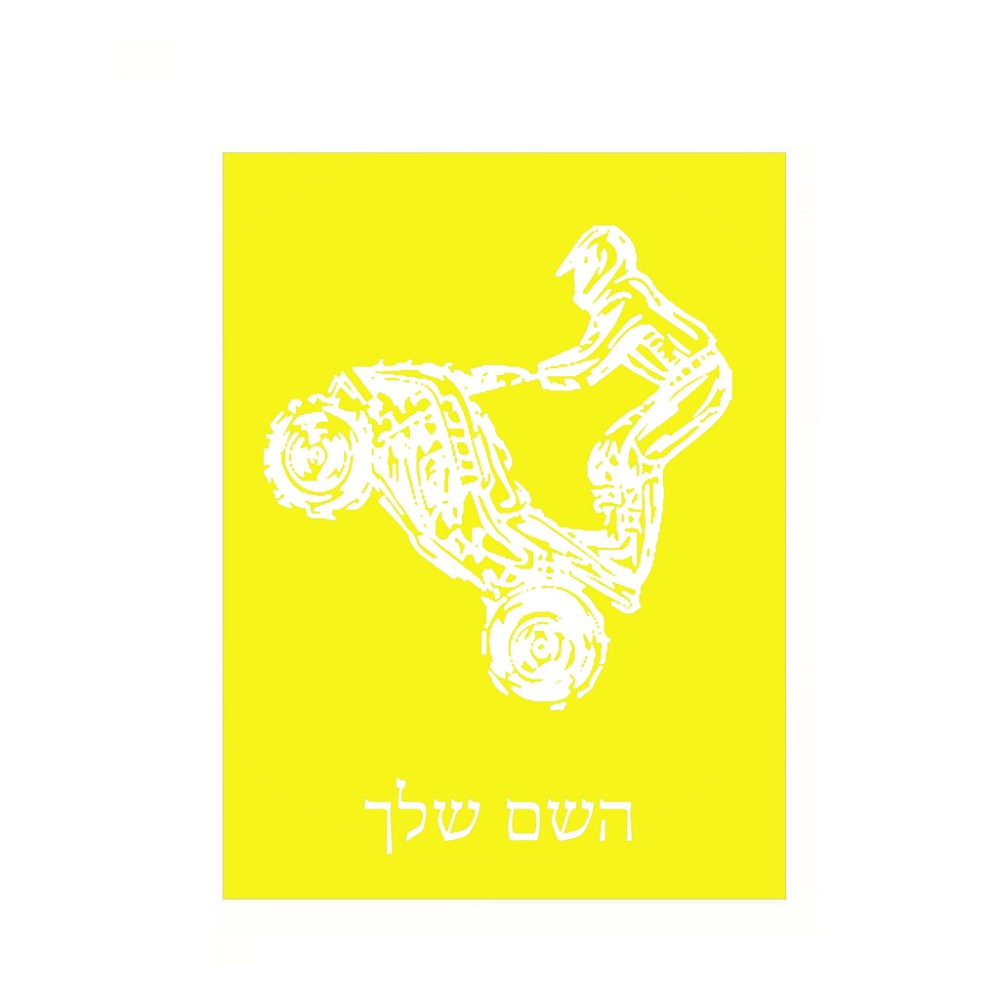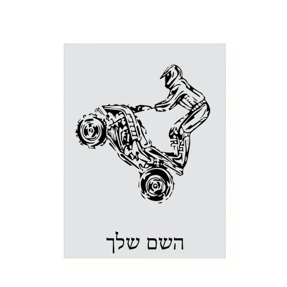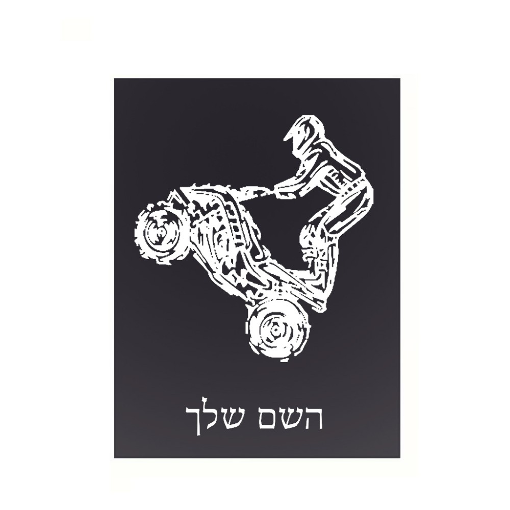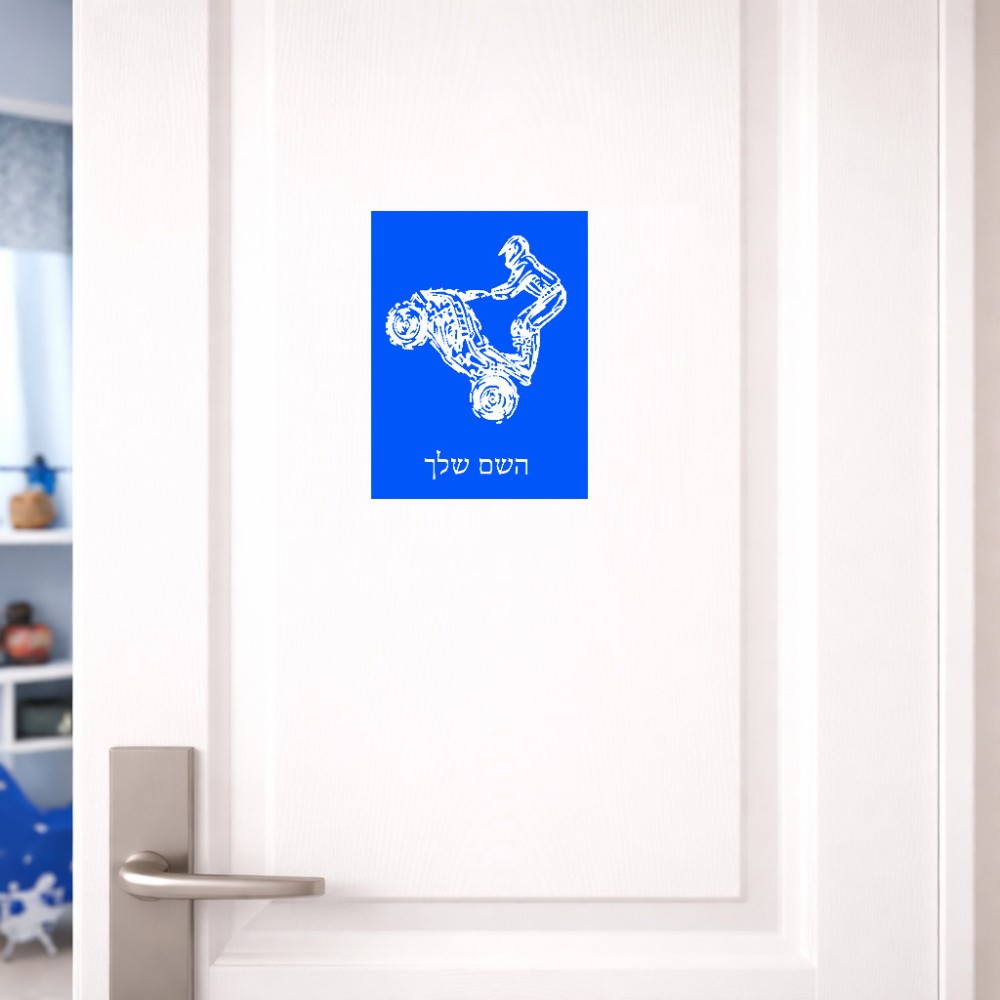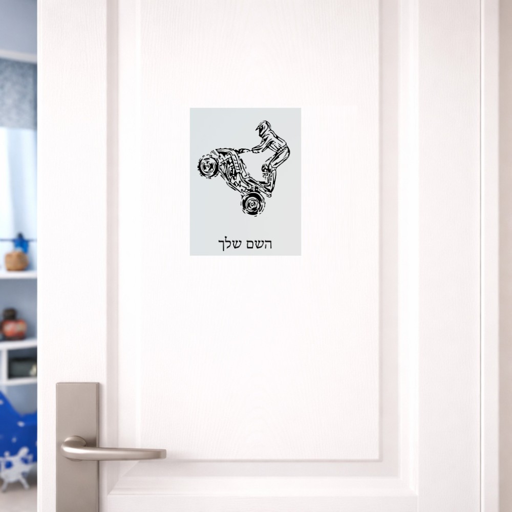 שלט אלומיניום קטן לחדר בעיצוב אישי עם השם שלך בעיצוב רוכב טרקטורונים גודל השלט 15 × 20 ס"מ. את השם המבוקש ניתן לציין בהזמנה, אם לא צויין אנחנו ניצור קשר לבירור.