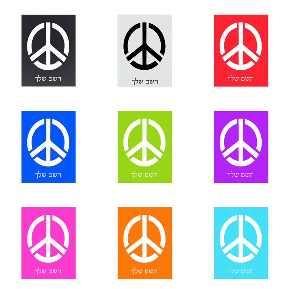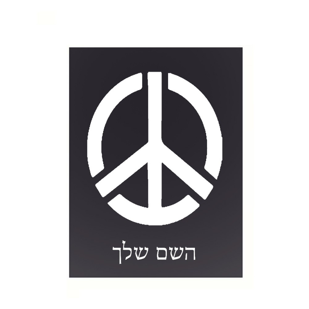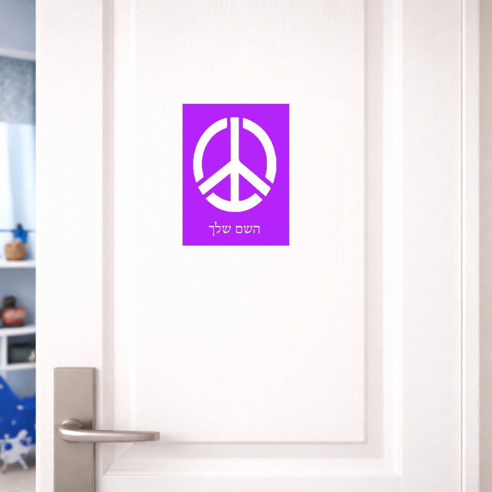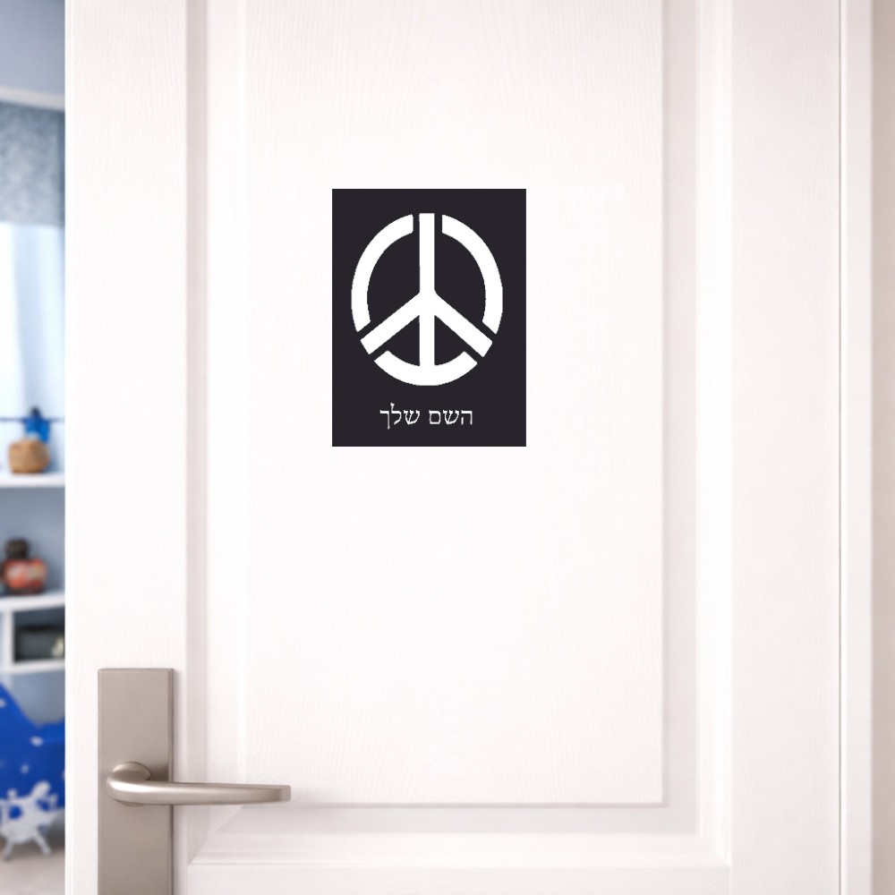 שלט אלומיניום קטן לחדר בעיצוב אישי עם השם שלך בעיצוב סמל השלום גודל השלט 15 × 20 ס"מ. את השם המבוקש ניתן לציין בהזמנה, אם לא צויין אנחנו ניצור קשר לבירור.