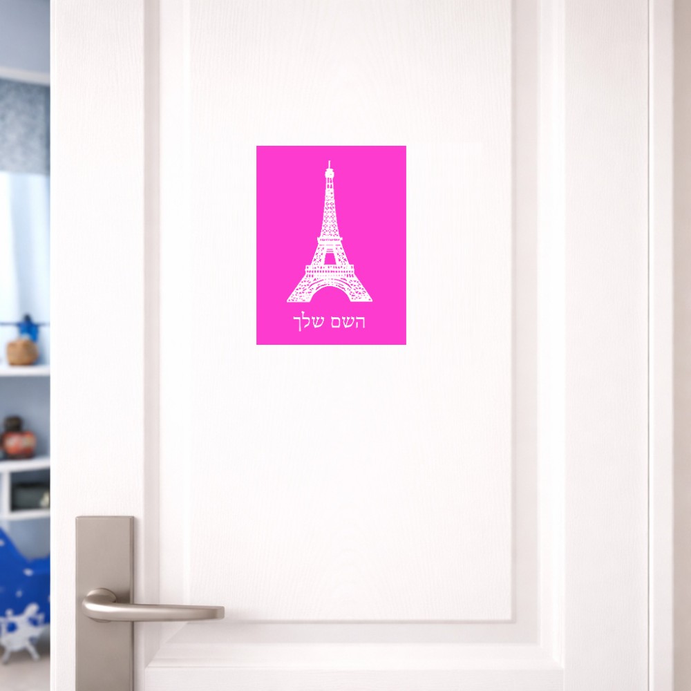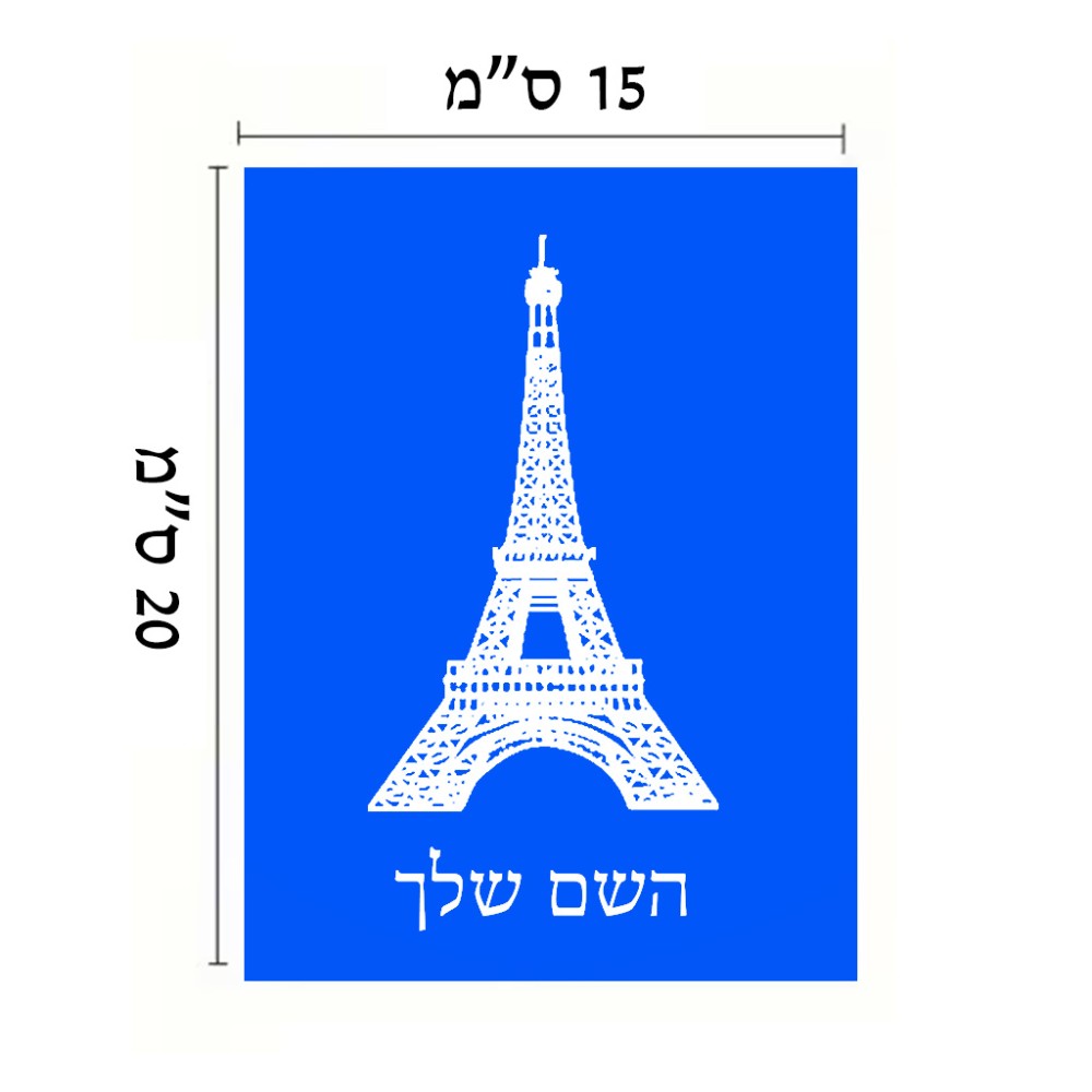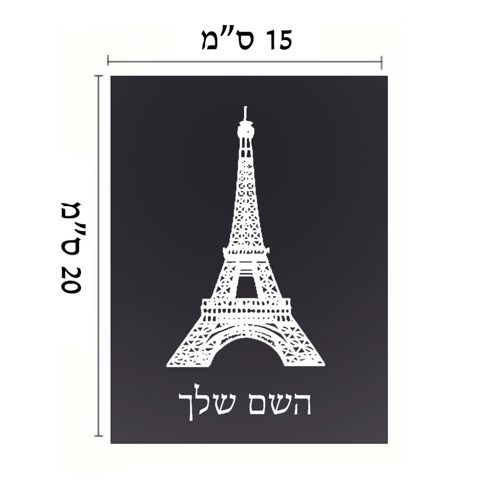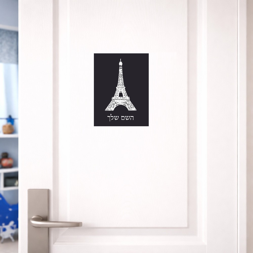 שלט אלומיניום קטן לחדר בעיצוב אישי עם השם שלך בעיצוב מגדל אייפל גודל השלט 15 × 20 ס"מ. את השם המבוקש ניתן לציין בהזמנה, אם לא צויין אנחנו ניצור קשר לבירור.