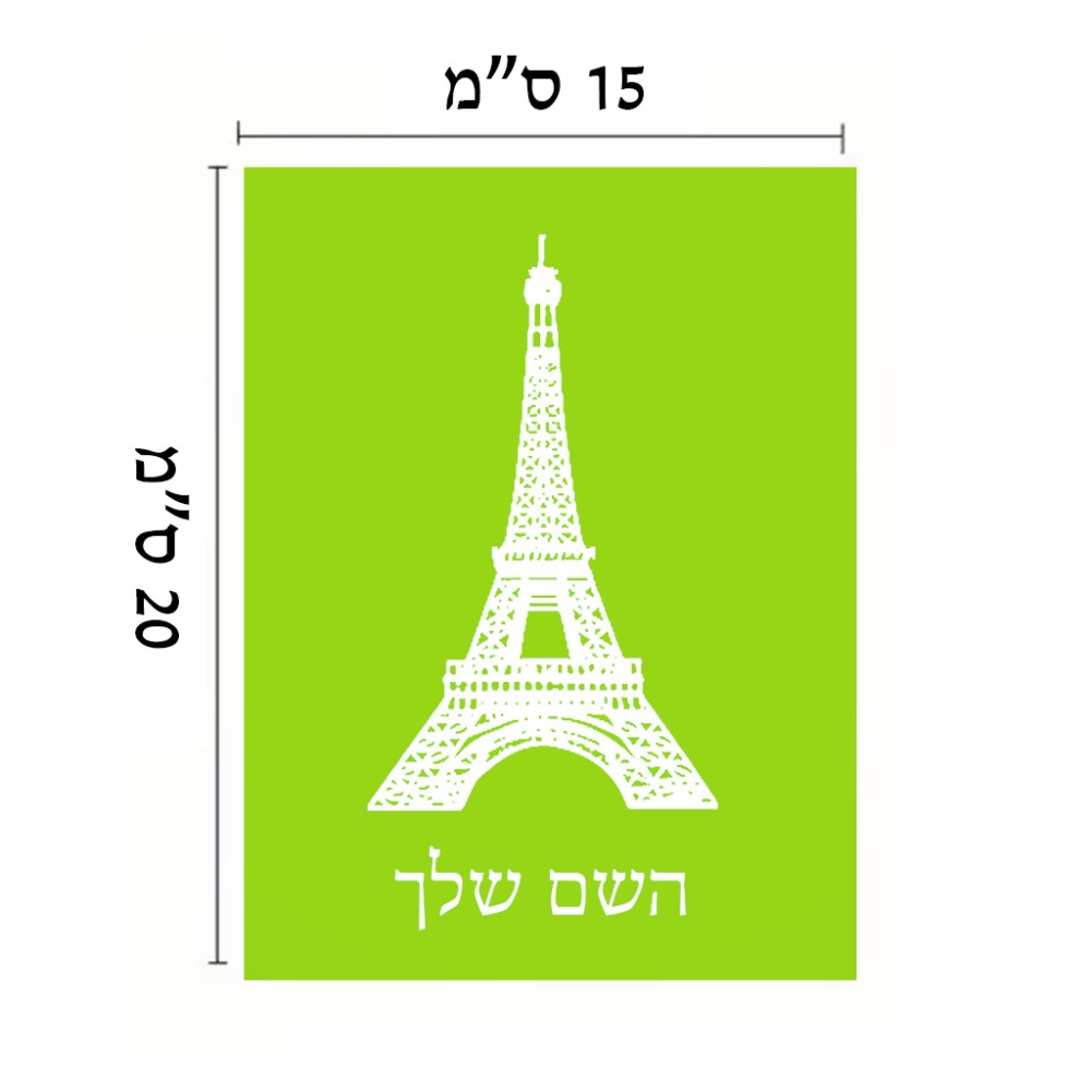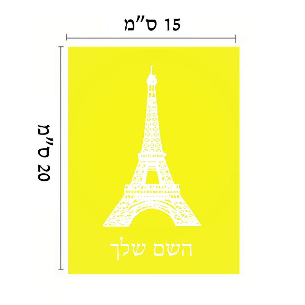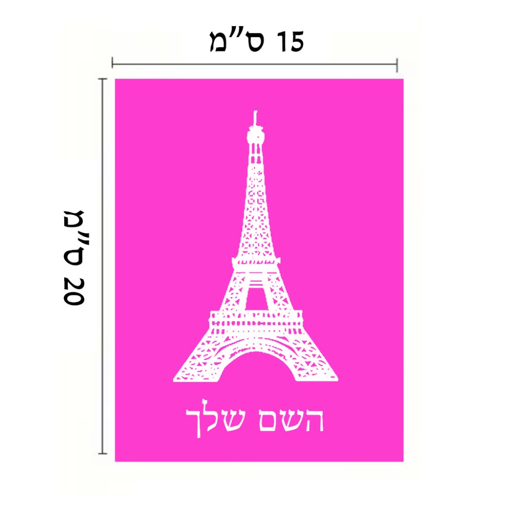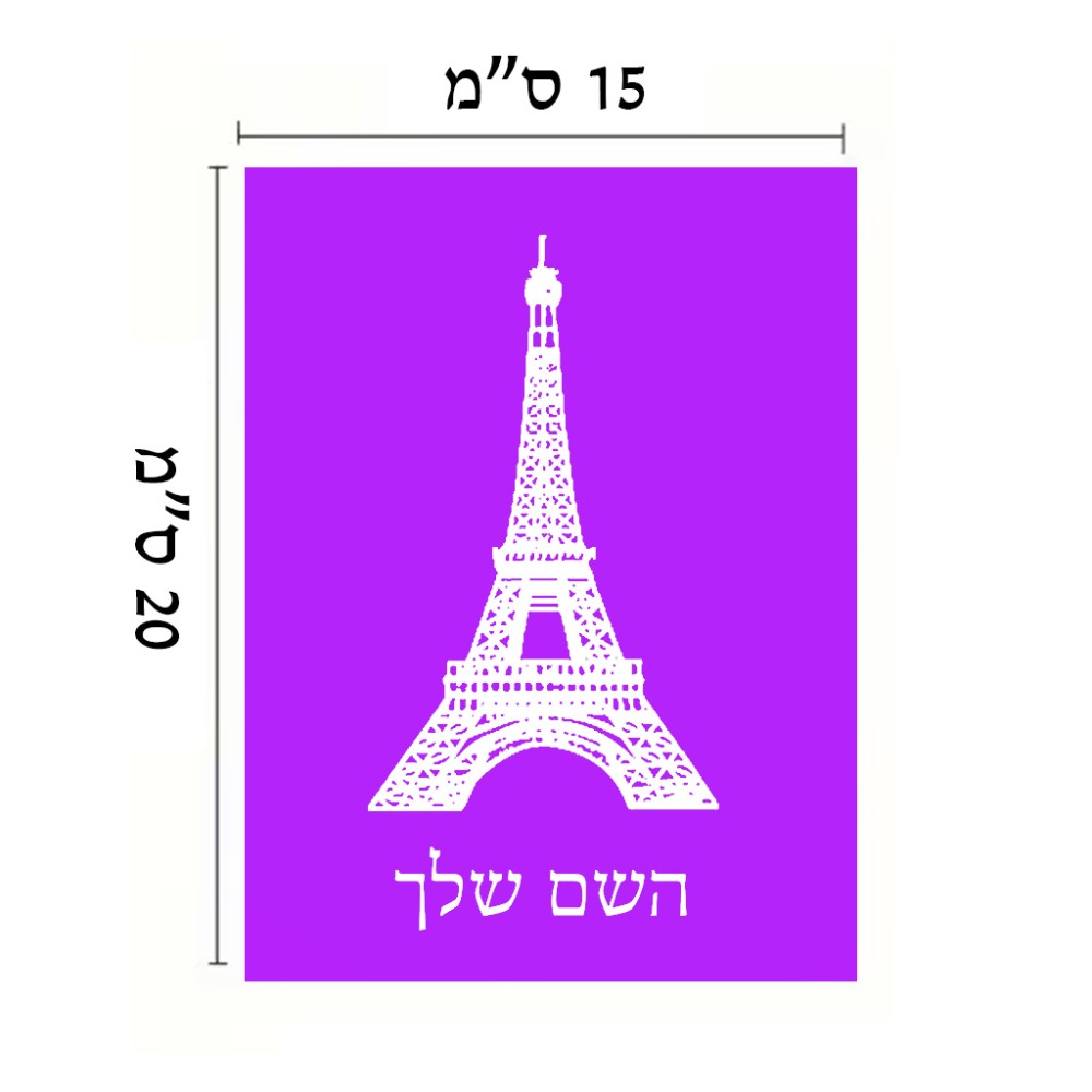 שלט אלומיניום קטן לחדר בעיצוב אישי עם השם שלך בעיצוב מגדל אייפל גודל השלט 15 × 20 ס"מ. את השם המבוקש ניתן לציין בהזמנה, אם לא צויין אנחנו ניצור קשר לבירור.