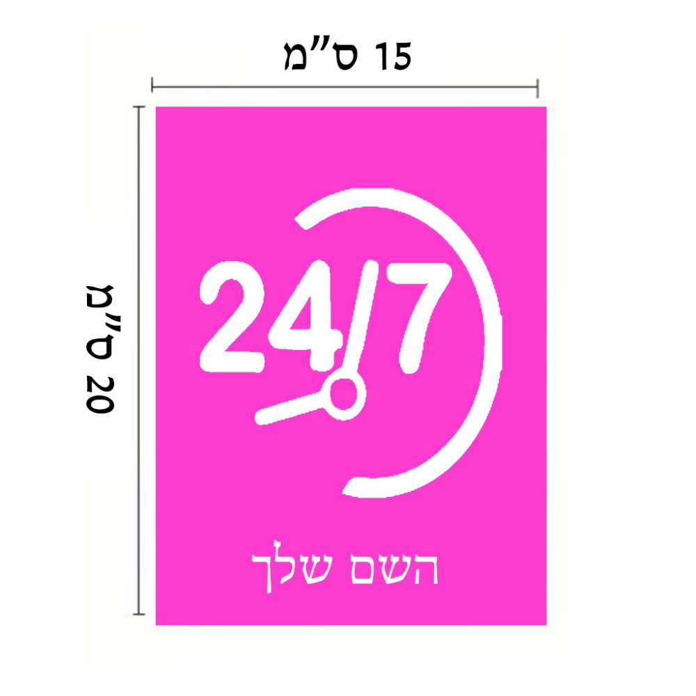שלט אלומיניום קטן לחדר בעיצוב אישי עם השם שלך בעיצוב 24 ביולי גודל השלט 15 × 20 ס"מ. את השם המבוקש ניתן לציין בהזמנה, אם לא צויין אנחנו ניצור קשר לבירור.