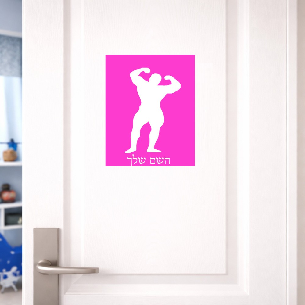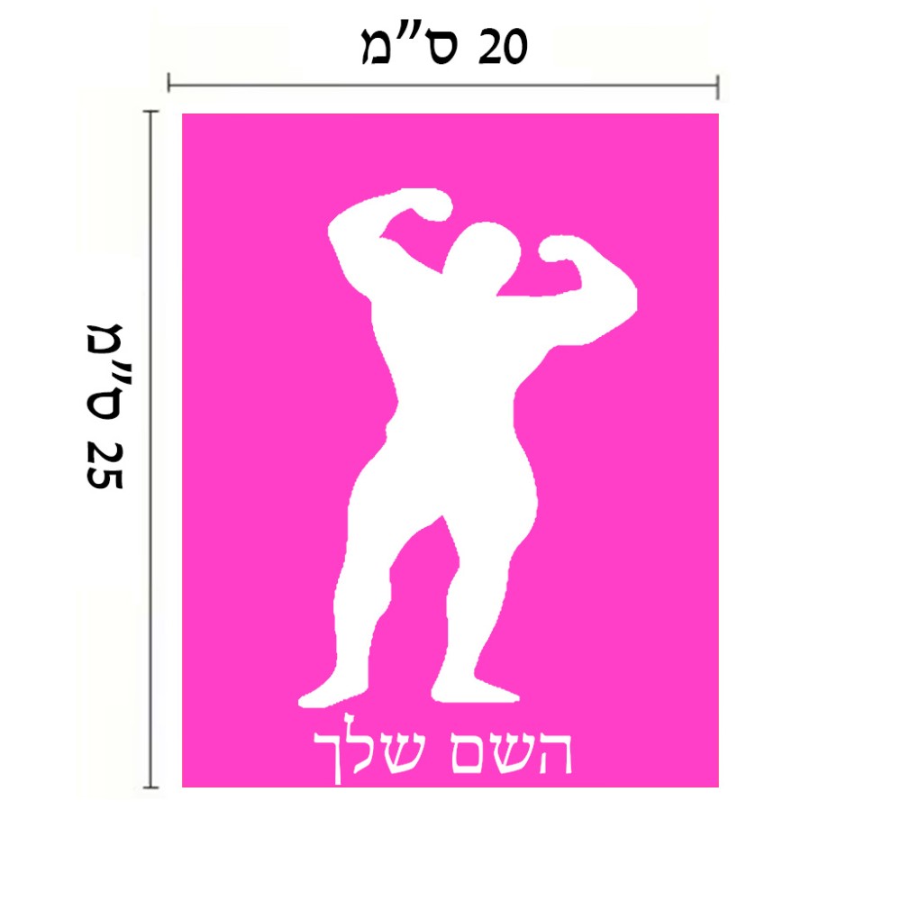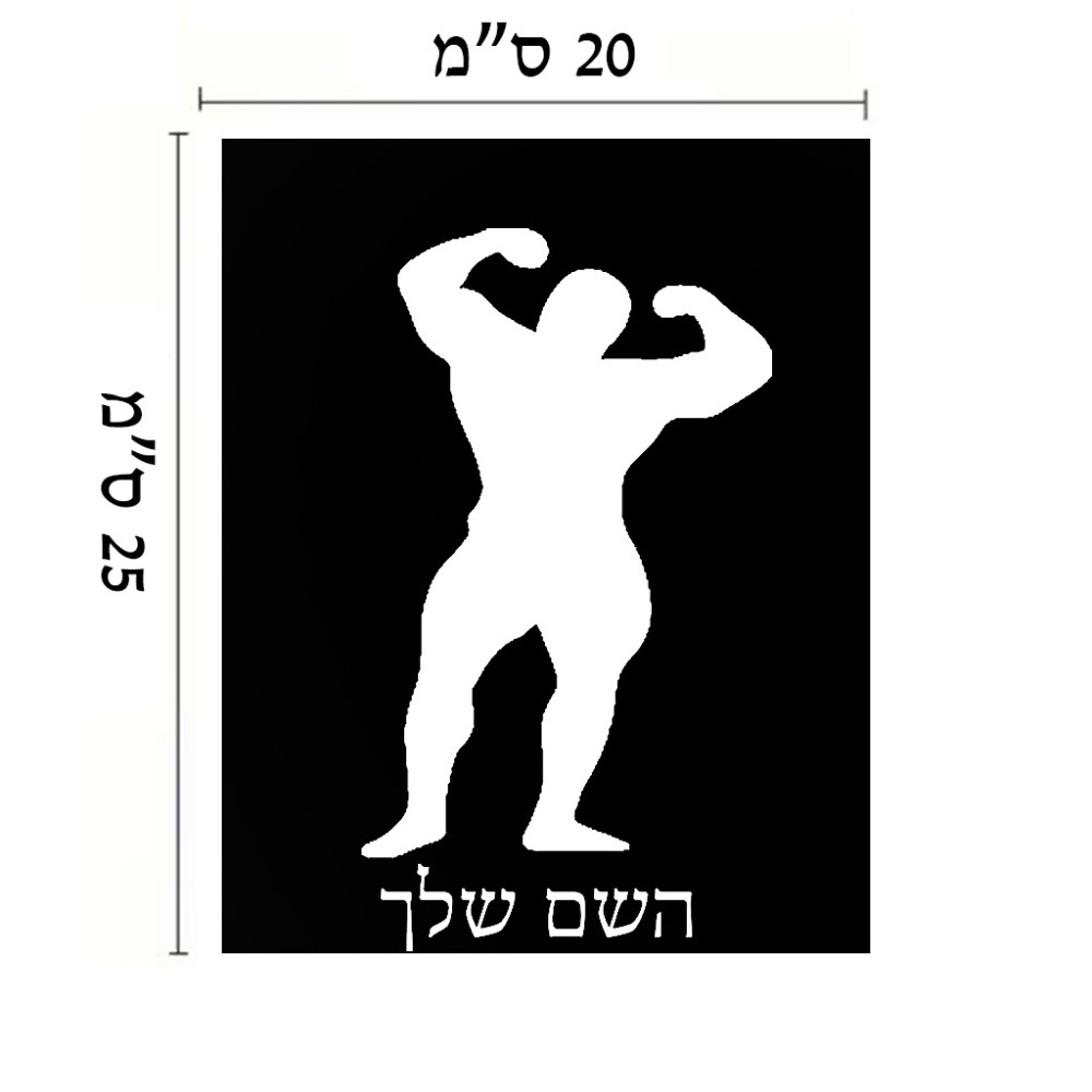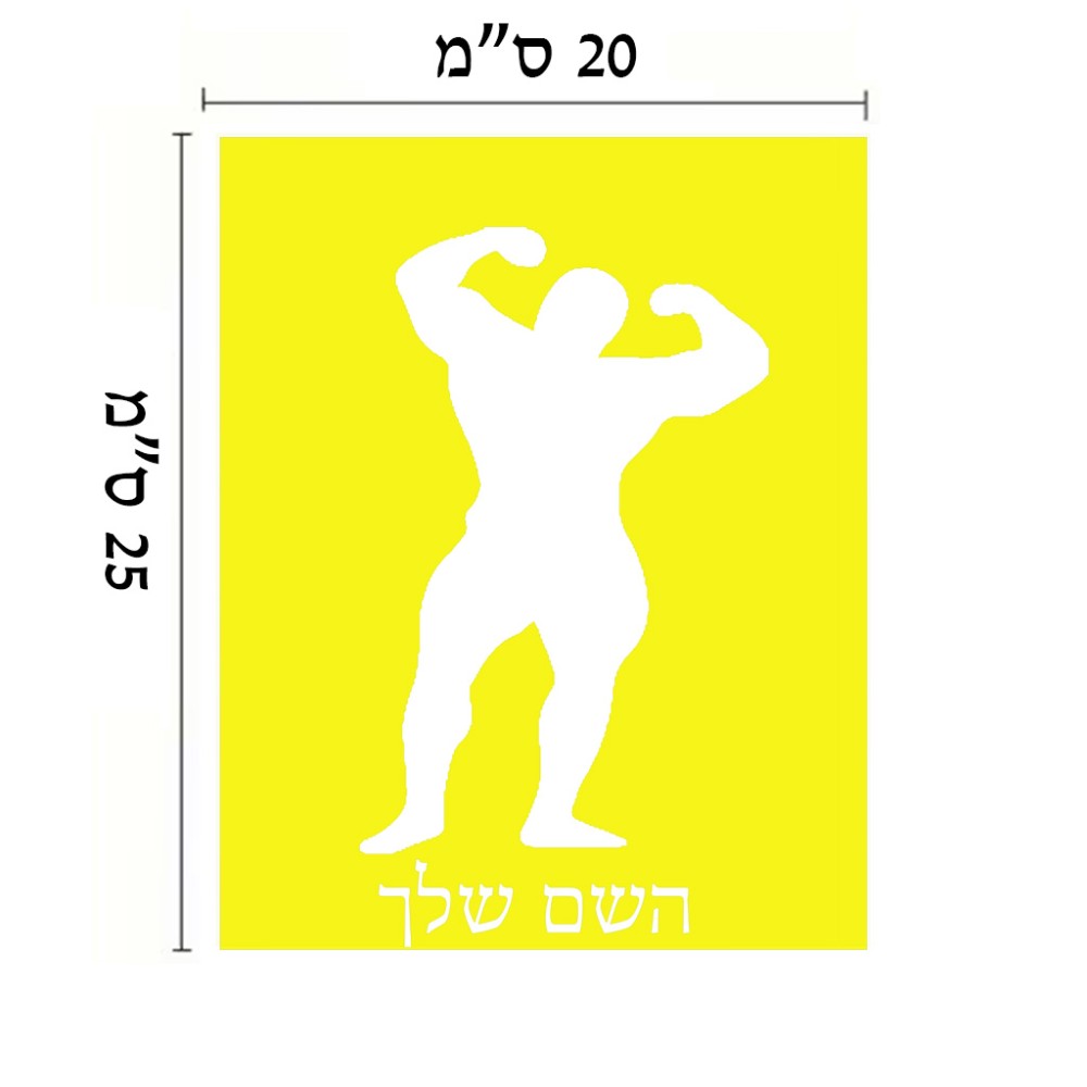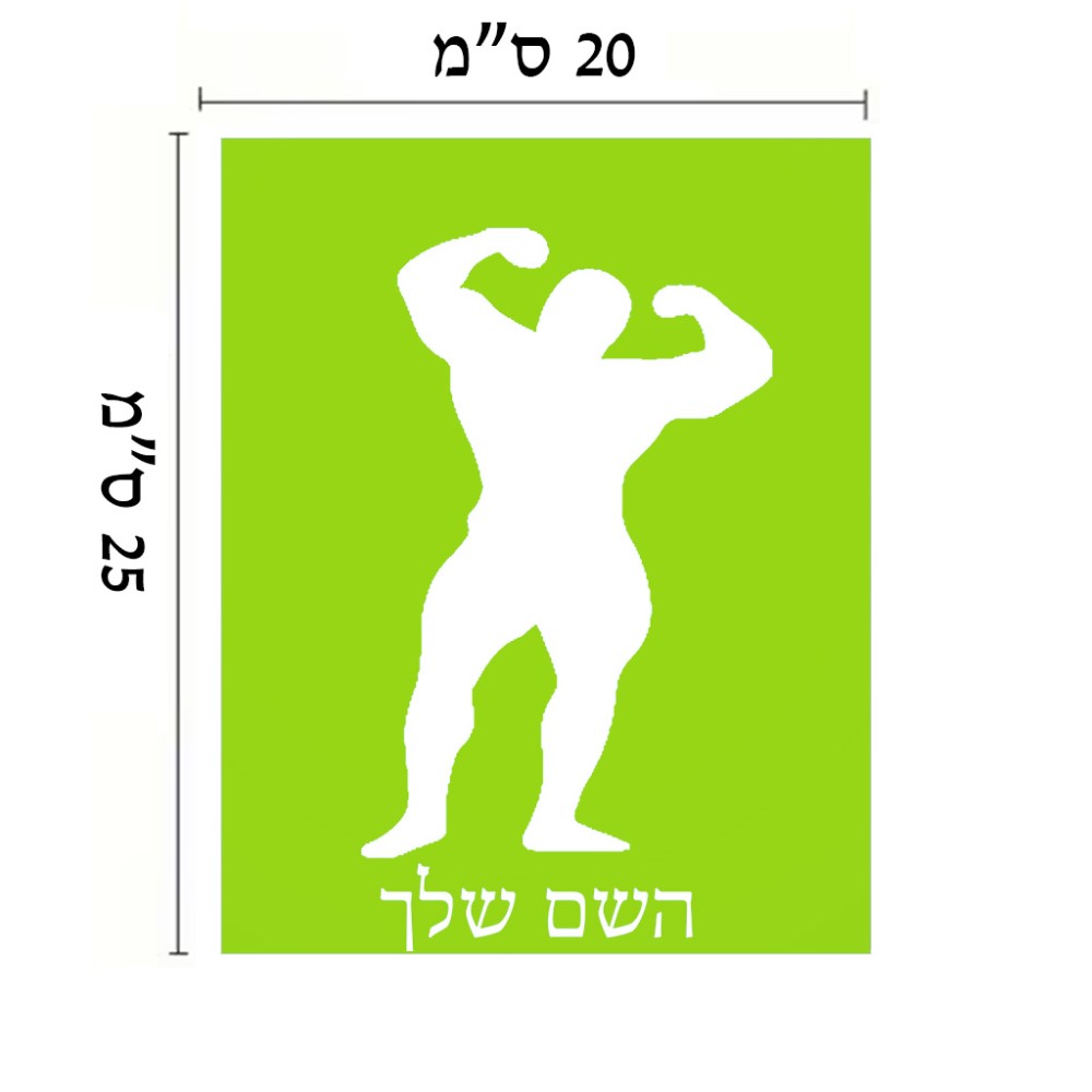 שלט אלומיניום גדול לחדר בעיצוב אישי עם השם שלך בעיצוב פיתוח גוף גודל השלט 20 × 25 ס"מ. את השם המבוקש ניתן לציין בהזמנה, אם לא צויין אנחנו ניצור קשר לבירור.