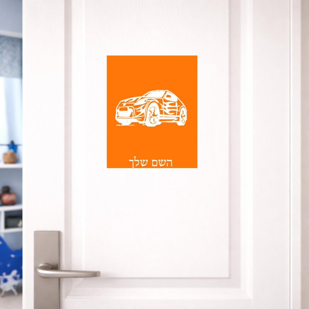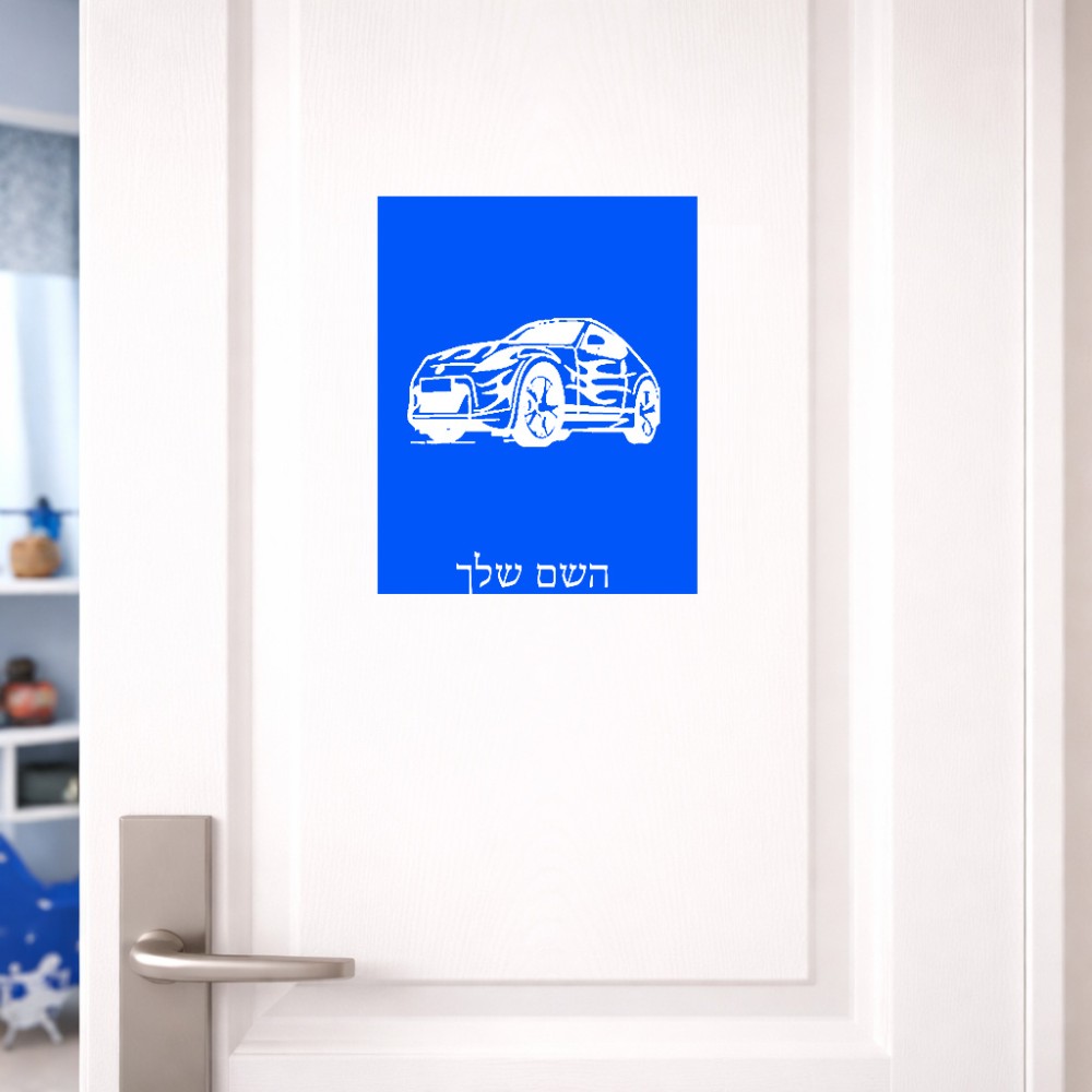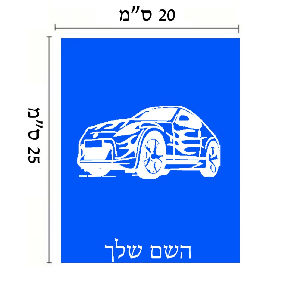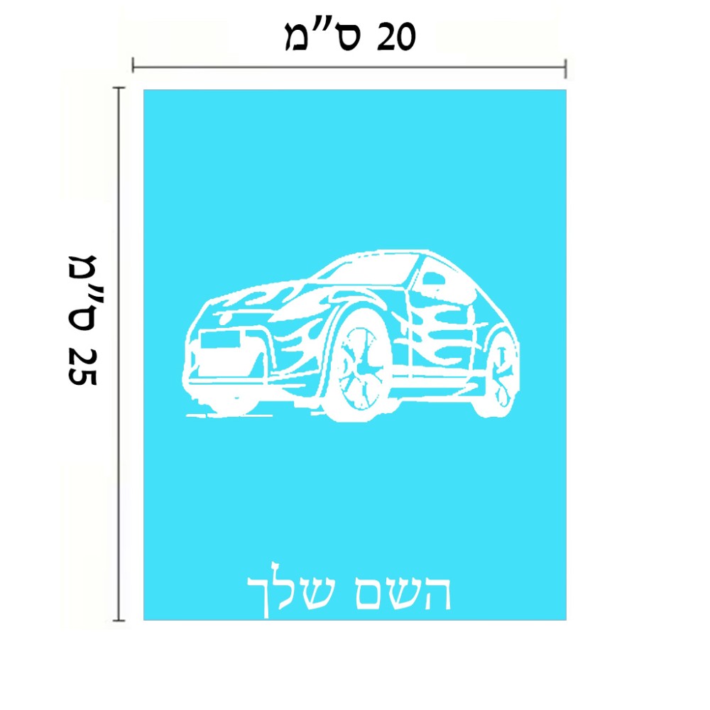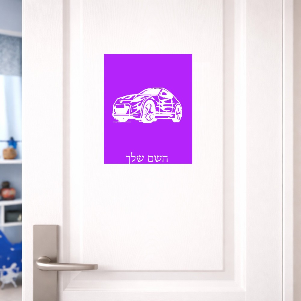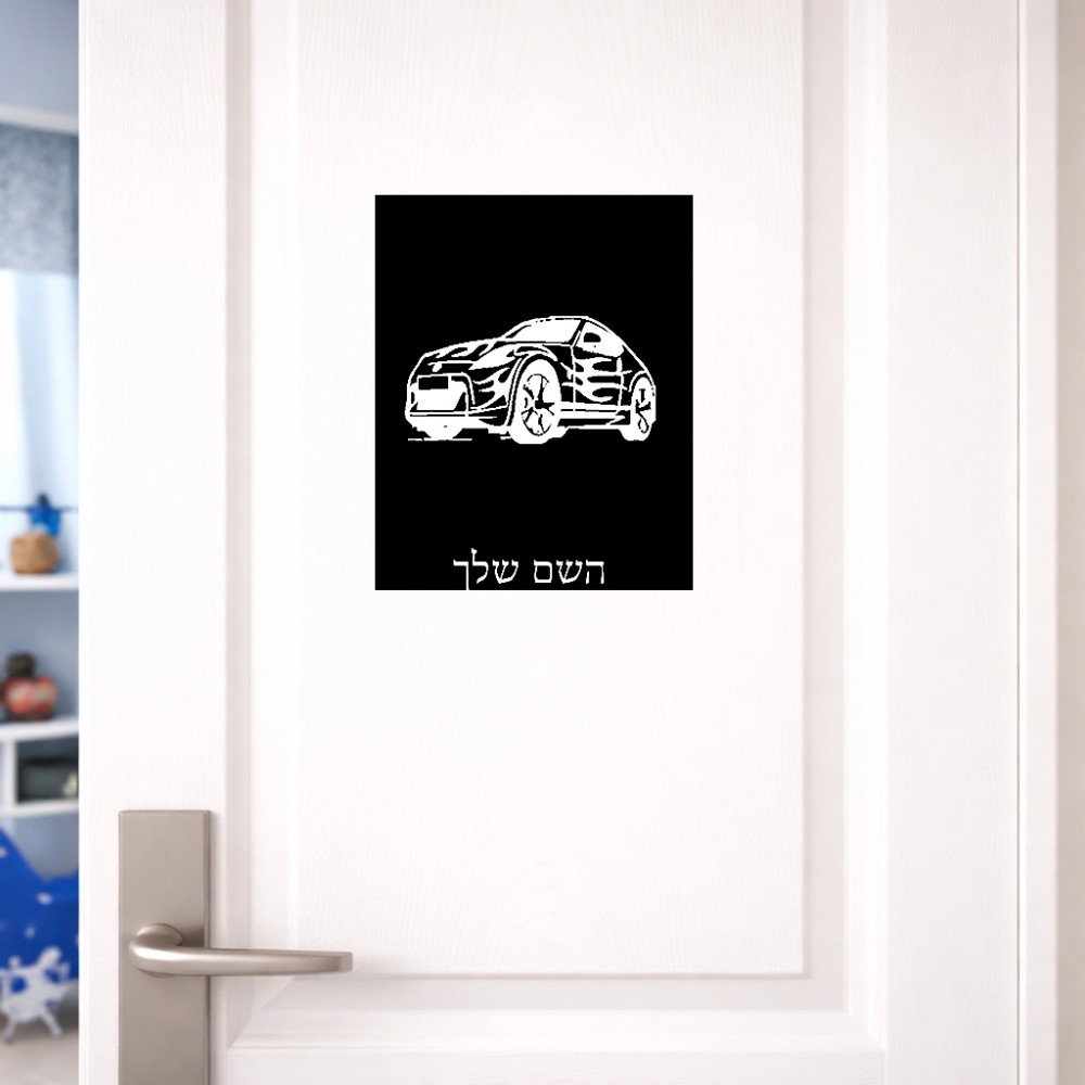 שלט אלומיניום גדול לחדר בעיצוב אישי עם השם שלך בעיצוב מכונית גודל השלט 20 × 25 ס"מ. את השם המבוקש ניתן לציין בהזמנה, אם לא צויין אנחנו ניצור קשר לבירור.