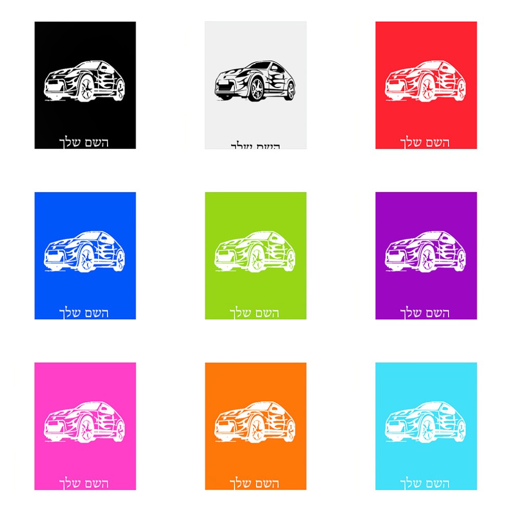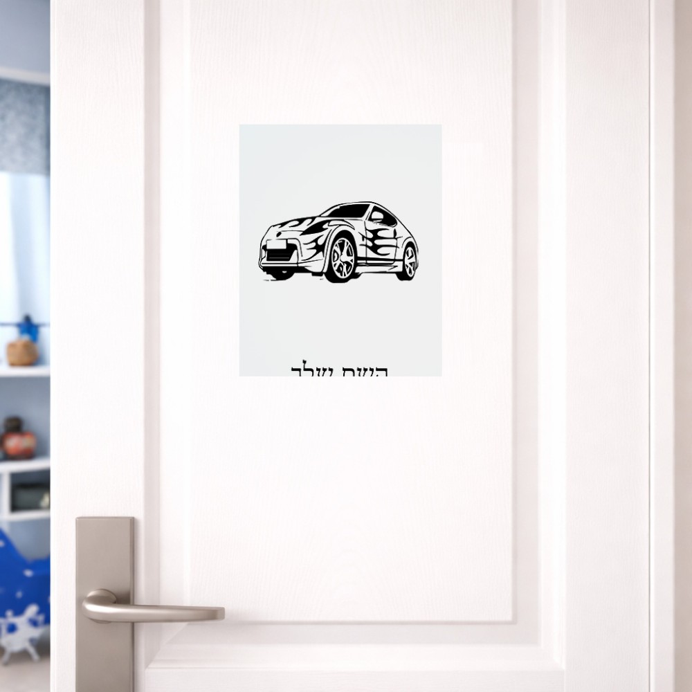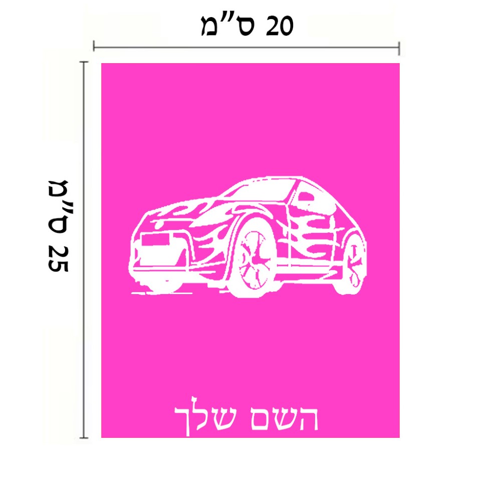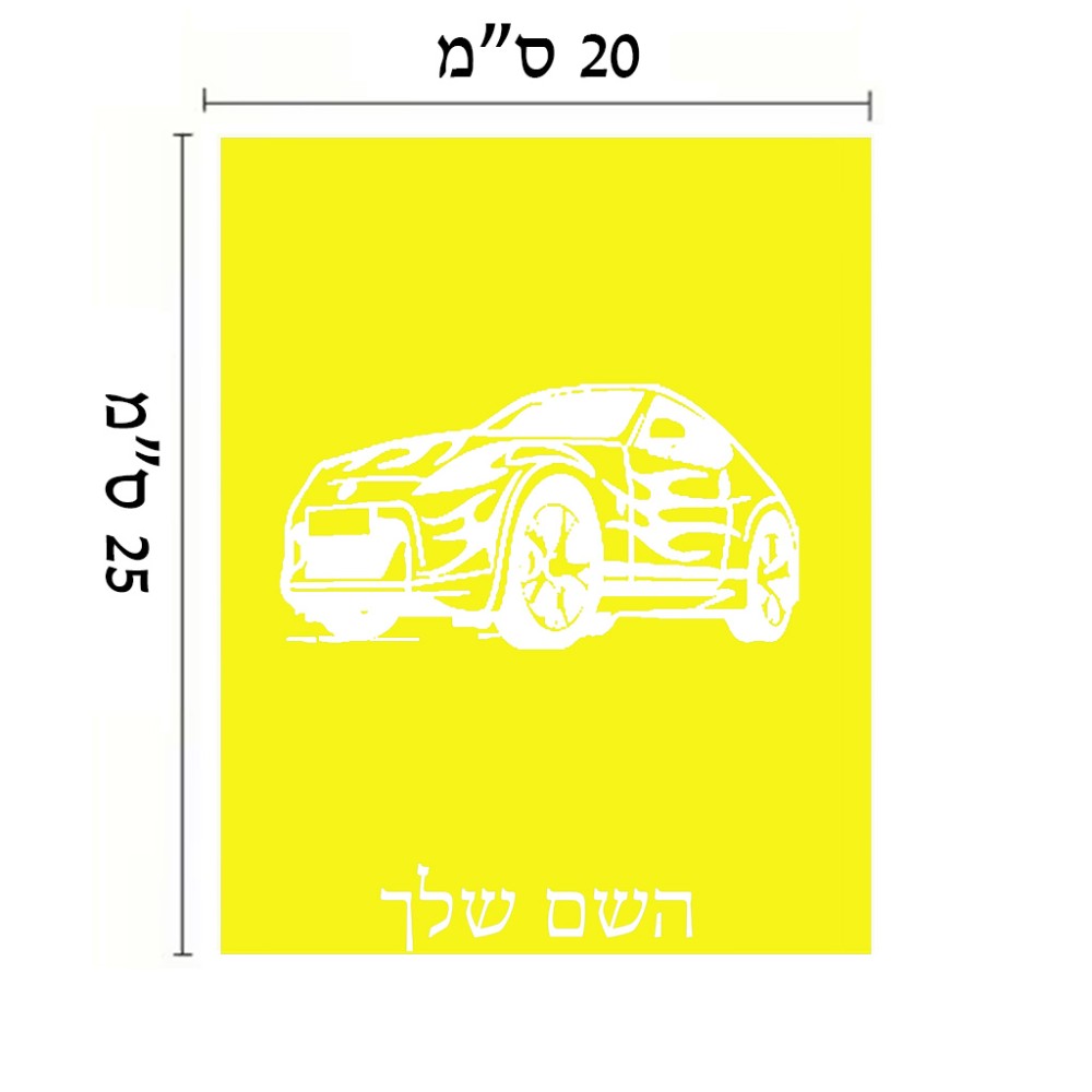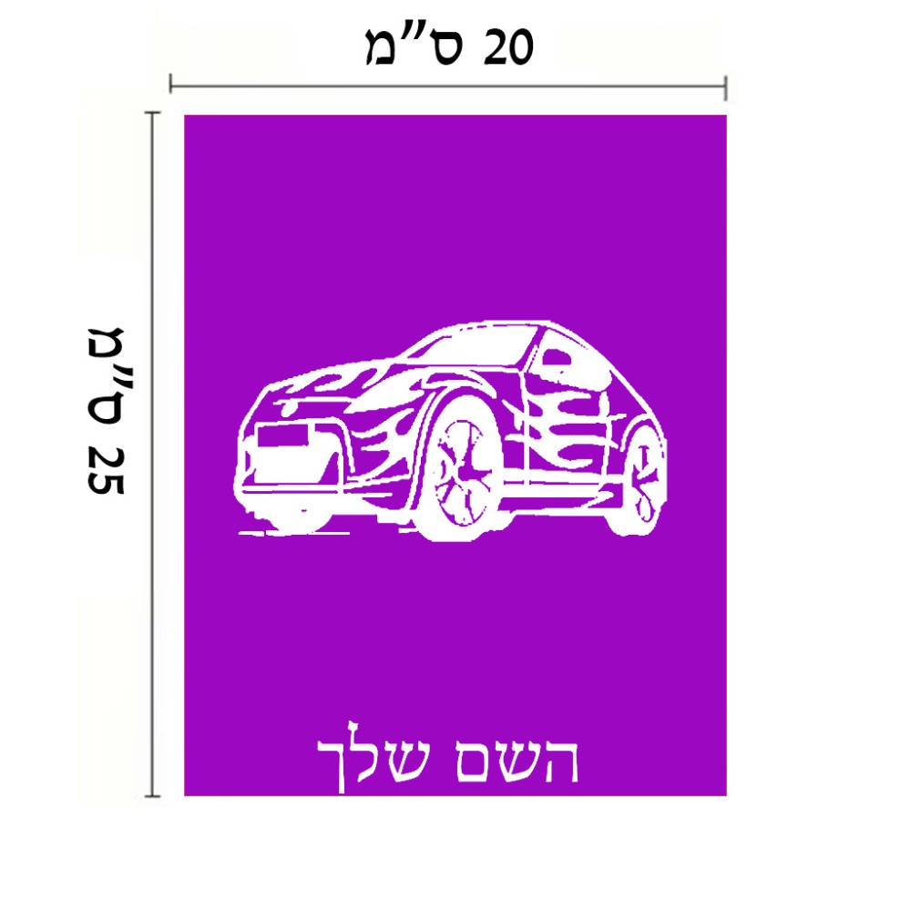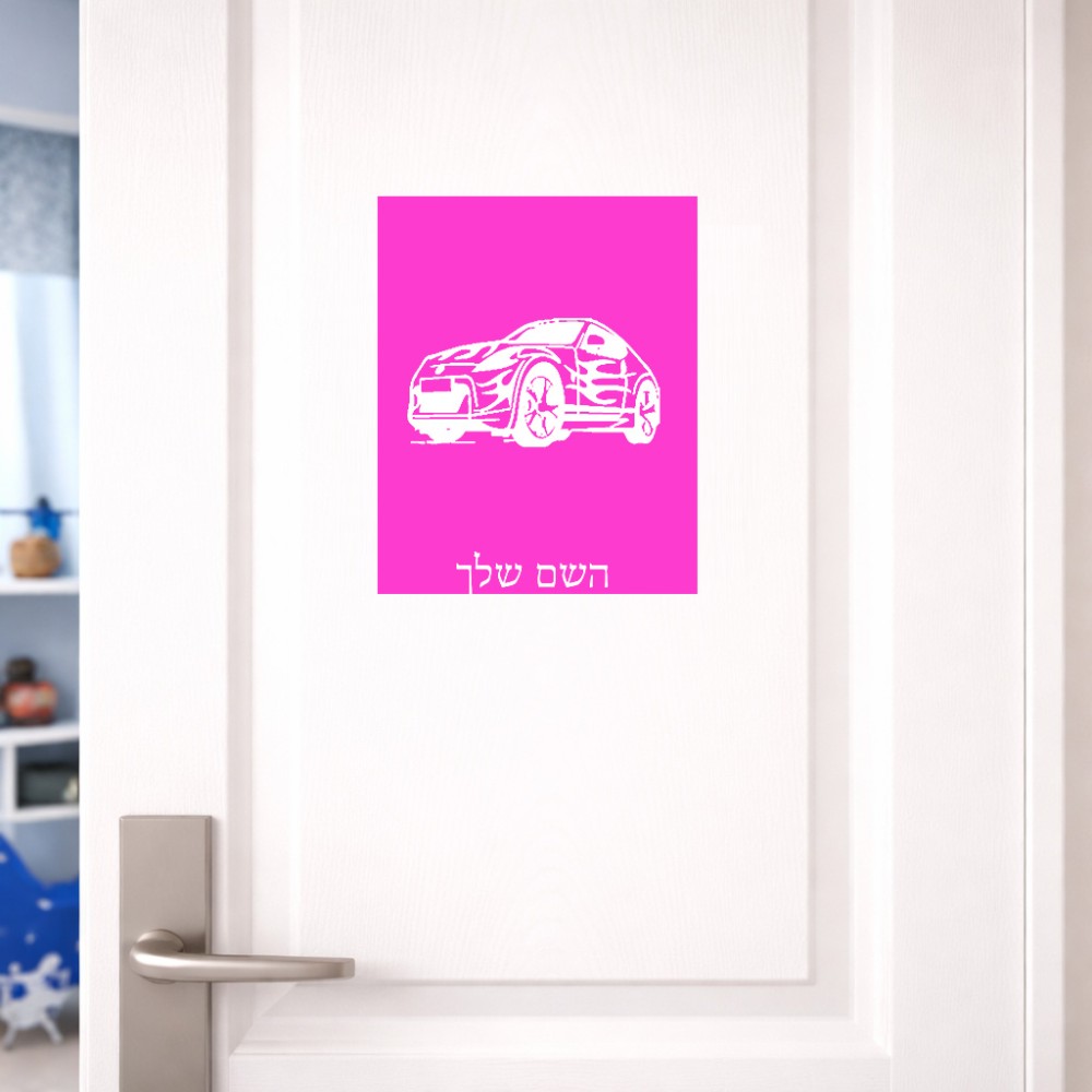 שלט אלומיניום גדול לחדר בעיצוב אישי עם השם שלך בעיצוב מכונית גודל השלט 20 × 25 ס"מ. את השם המבוקש ניתן לציין בהזמנה, אם לא צויין אנחנו ניצור קשר לבירור.