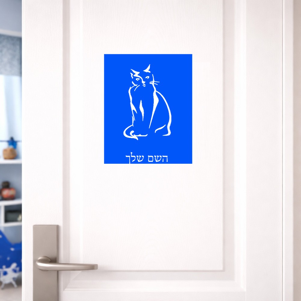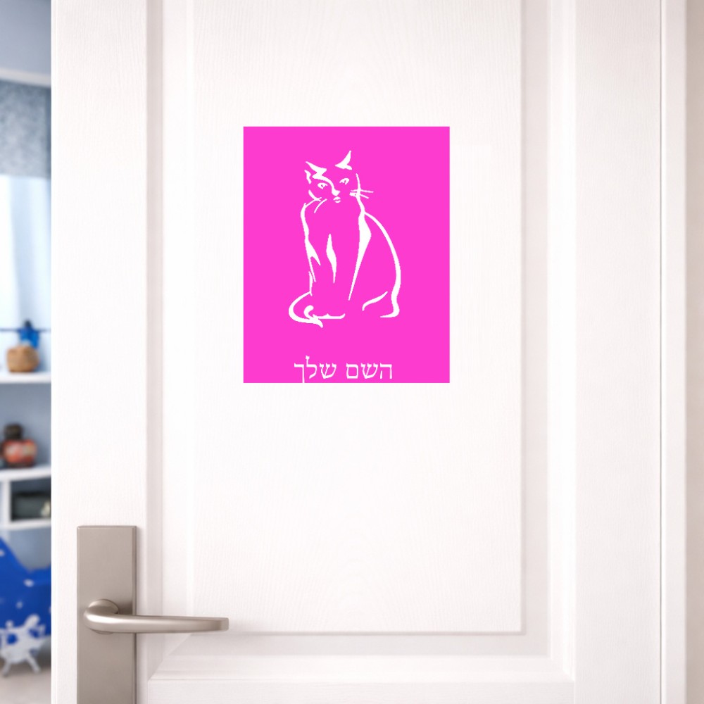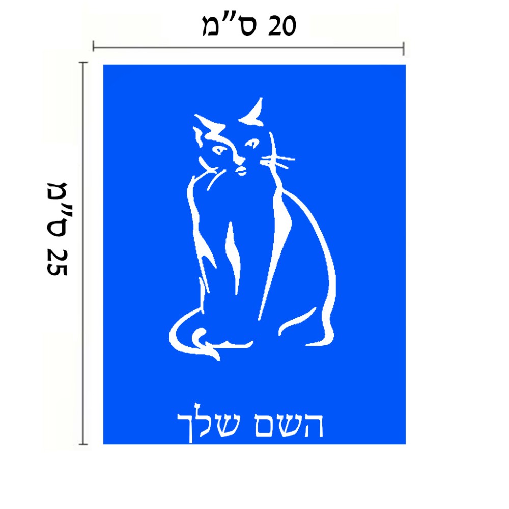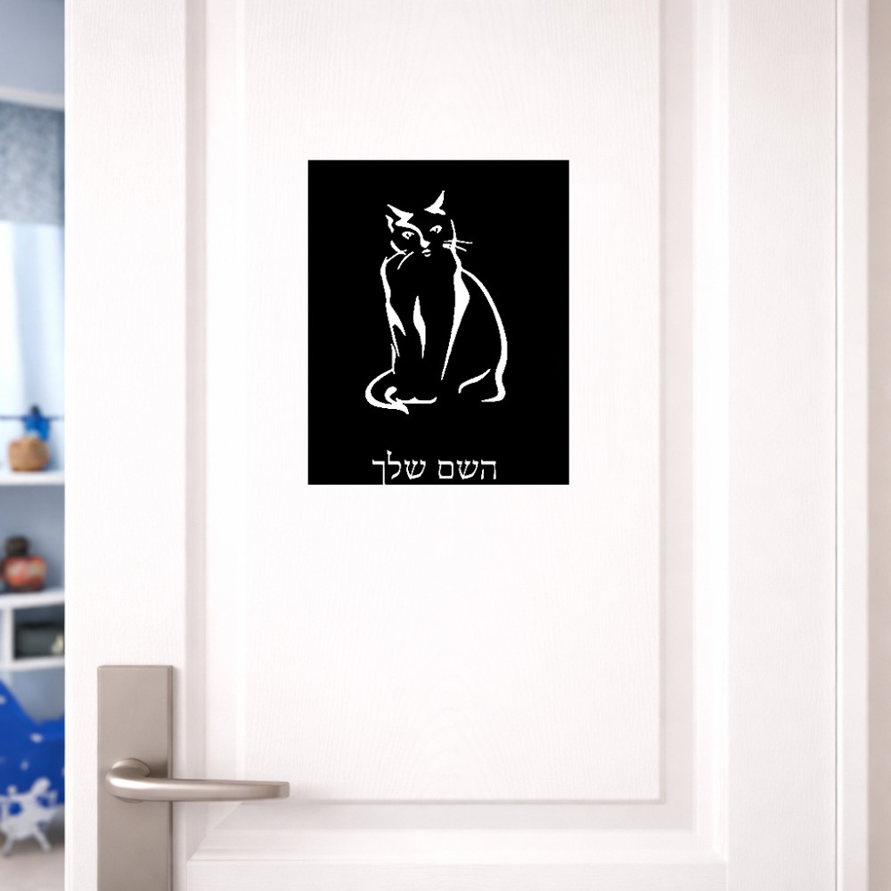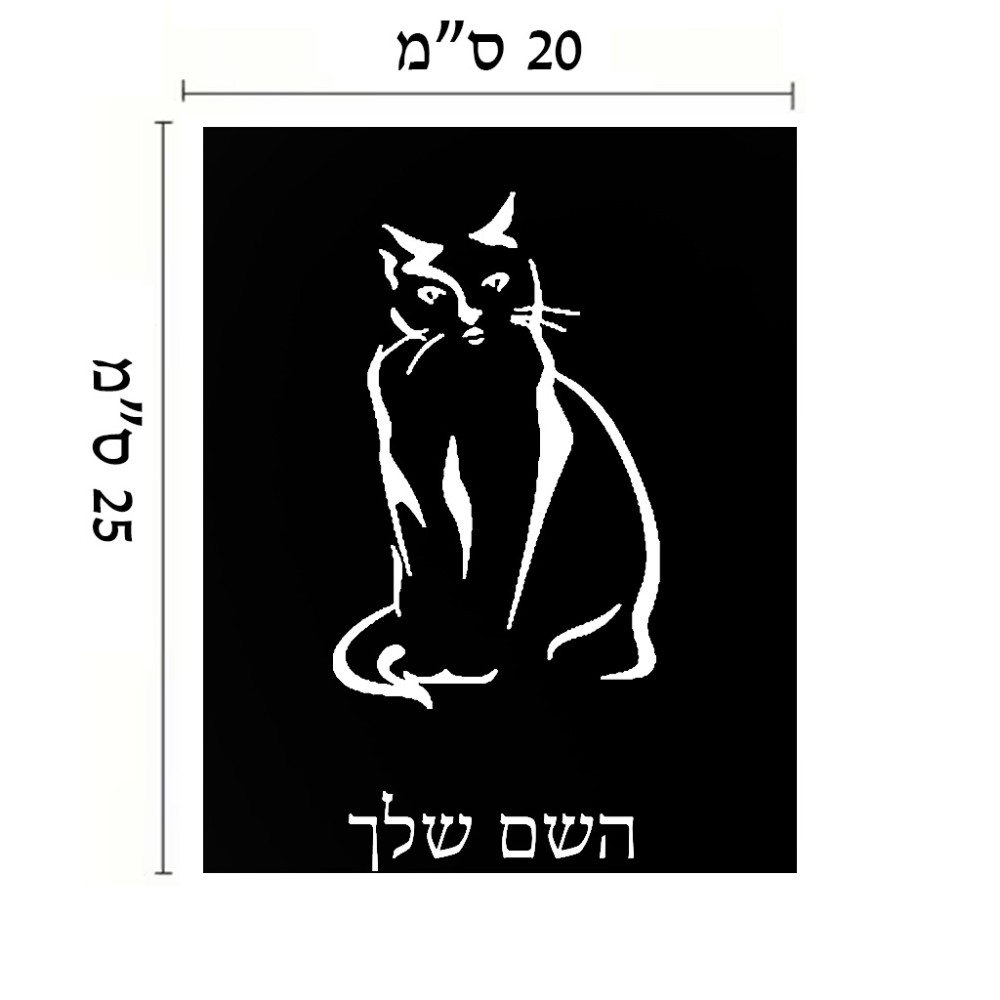 שלט אלומיניום גדול לחדר בעיצוב אישי עם השם שלך בעיצוב חתול גודל השלט 20 × 25 ס"מ. את השם המבוקש ניתן לציין בהזמנה, אם לא צויין אנחנו ניצור קשר לבירור.