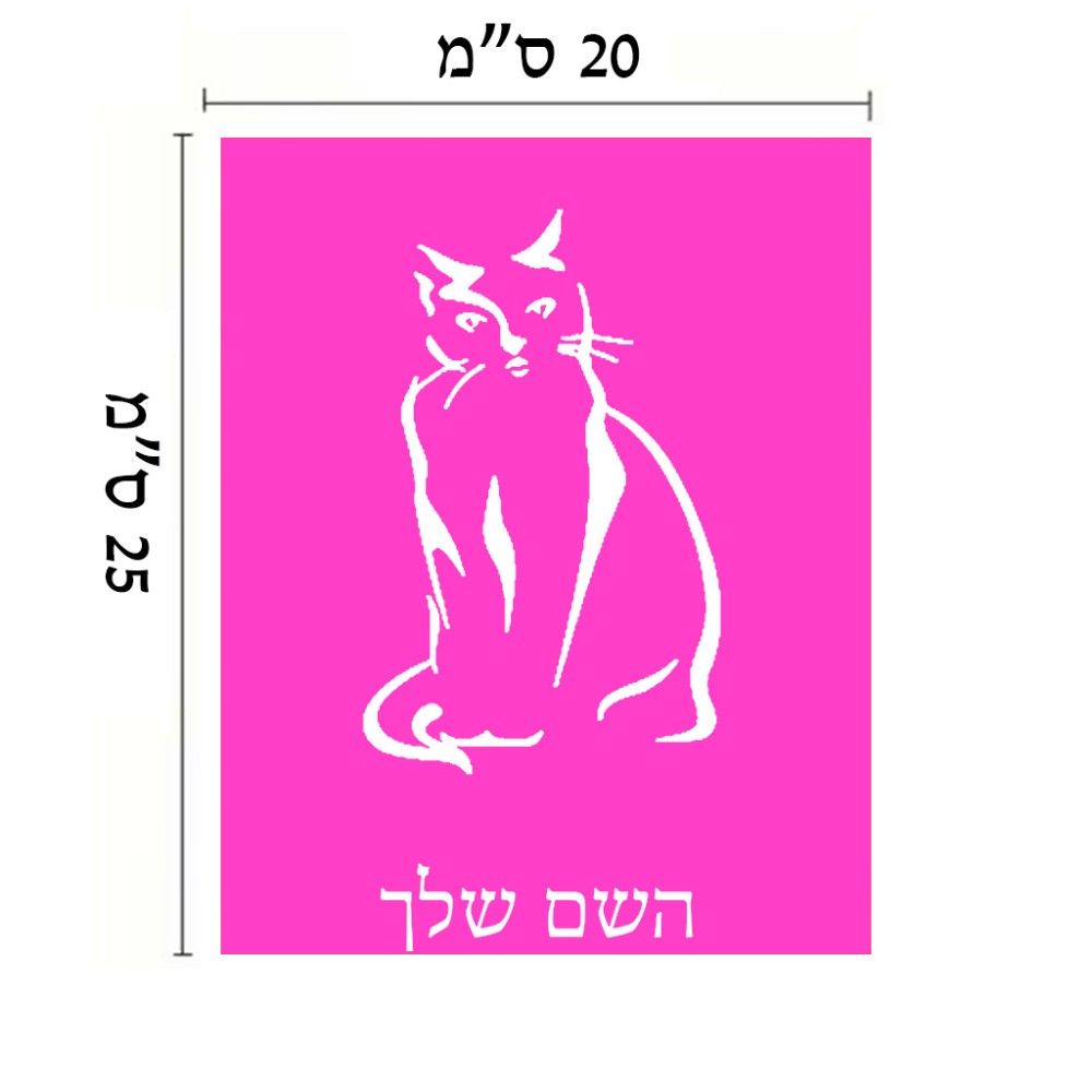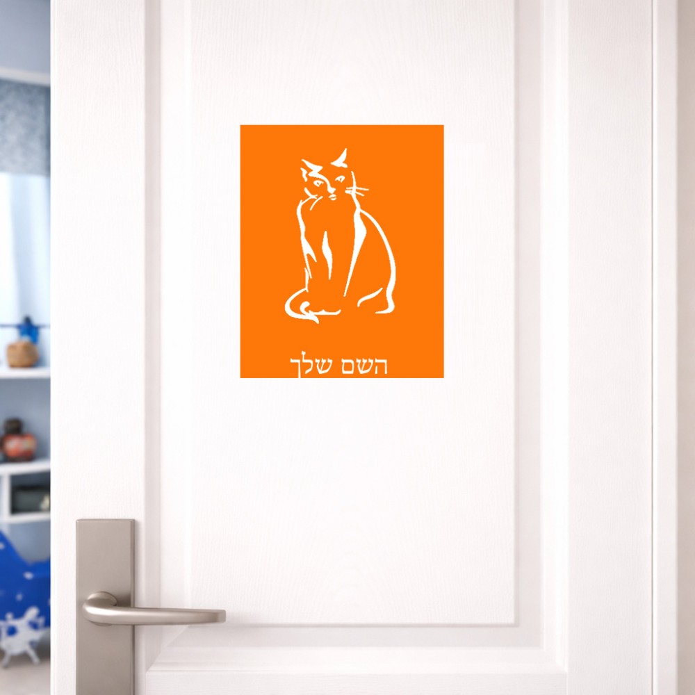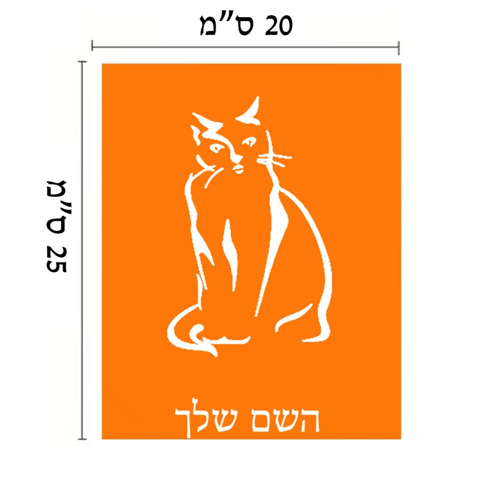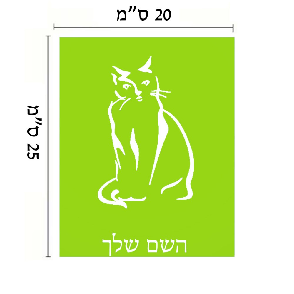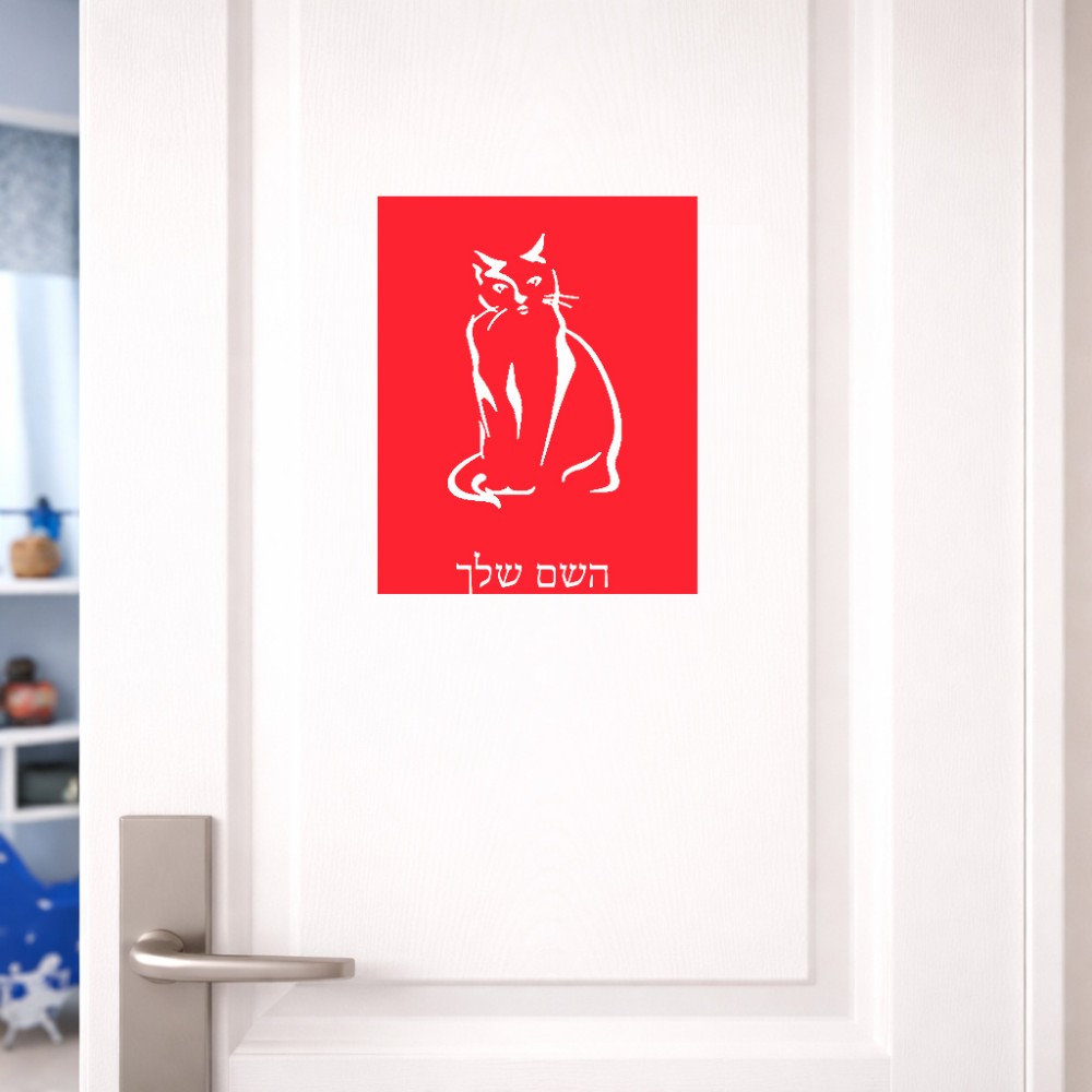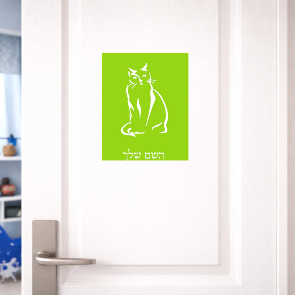 שלט אלומיניום גדול לחדר בעיצוב אישי עם השם שלך בעיצוב חתול גודל השלט 20 × 25 ס"מ. את השם המבוקש ניתן לציין בהזמנה, אם לא צויין אנחנו ניצור קשר לבירור.