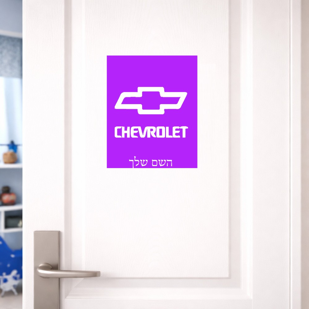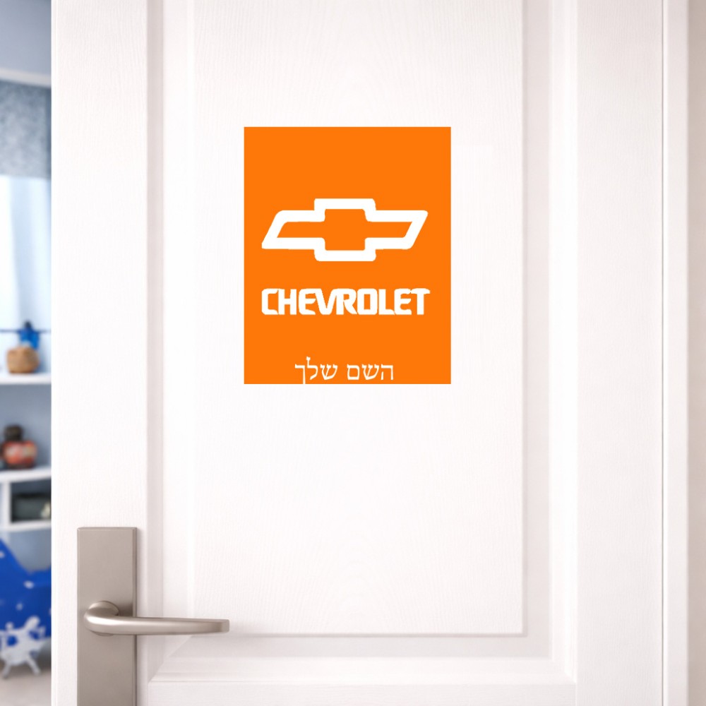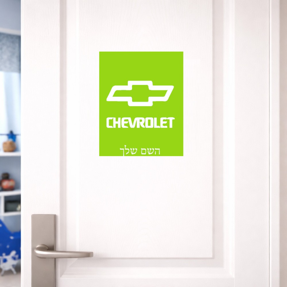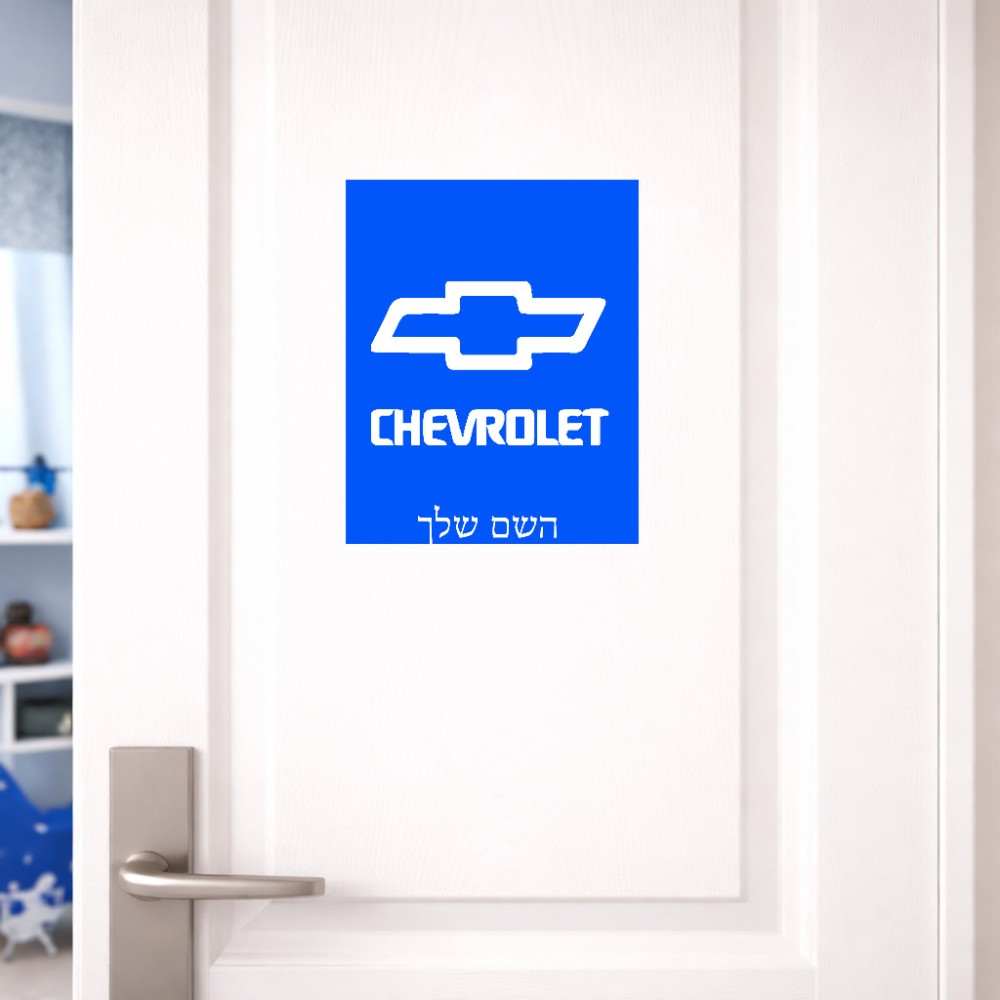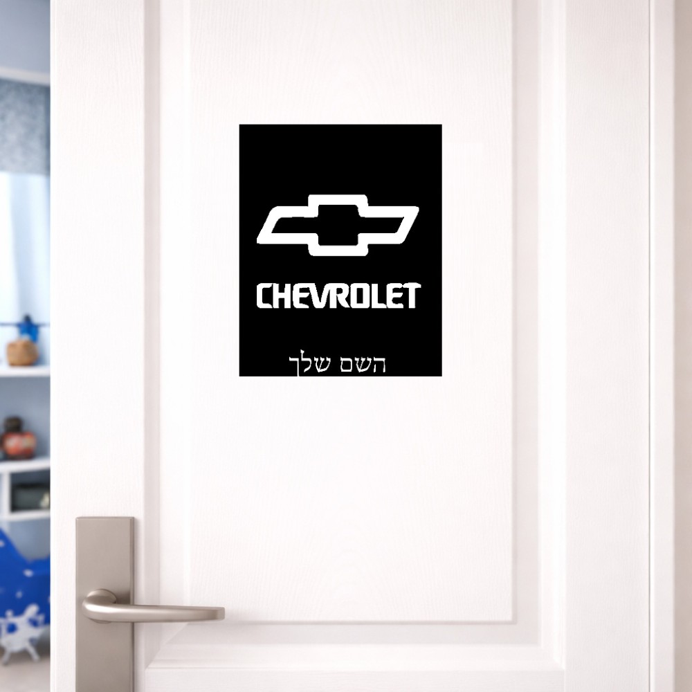 שלט אלומיניום גדול לחדר בעיצוב אישי עם השם שלך בעיצוב שברולט גודל השלט 20 × 25 ס"מ.