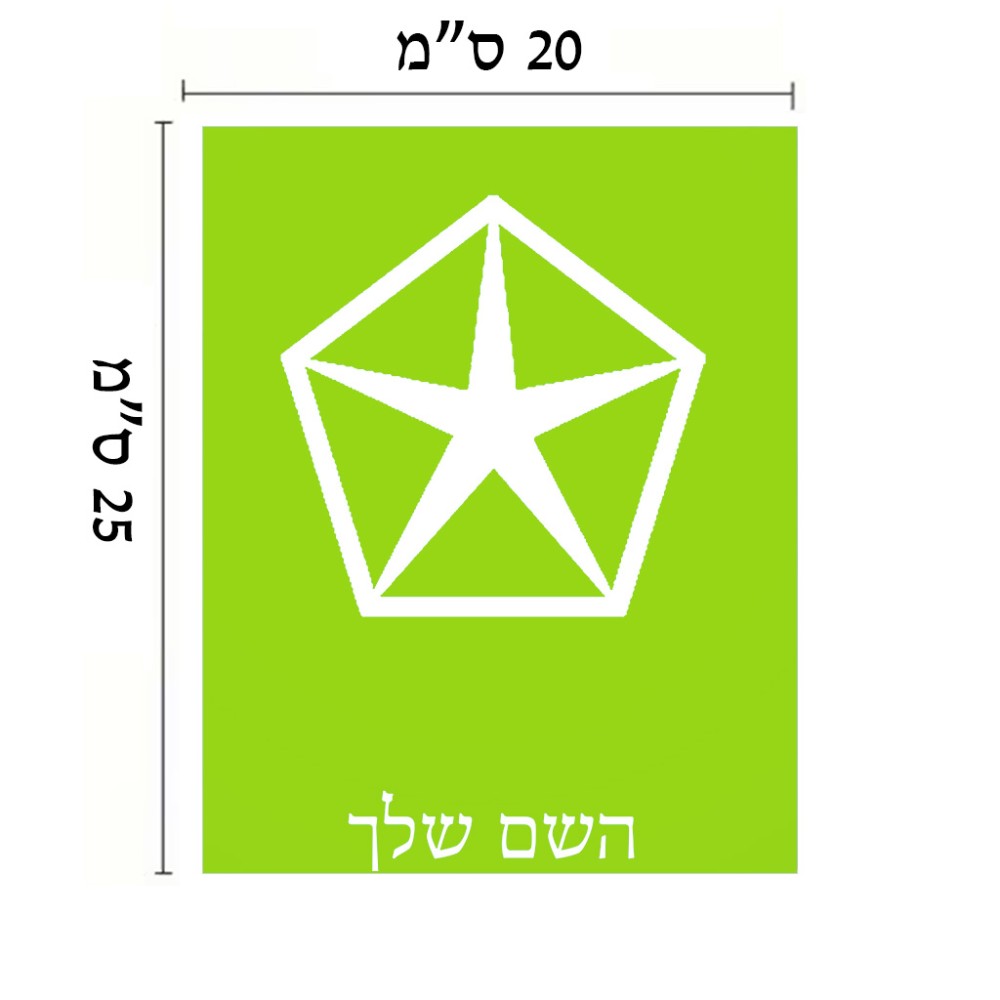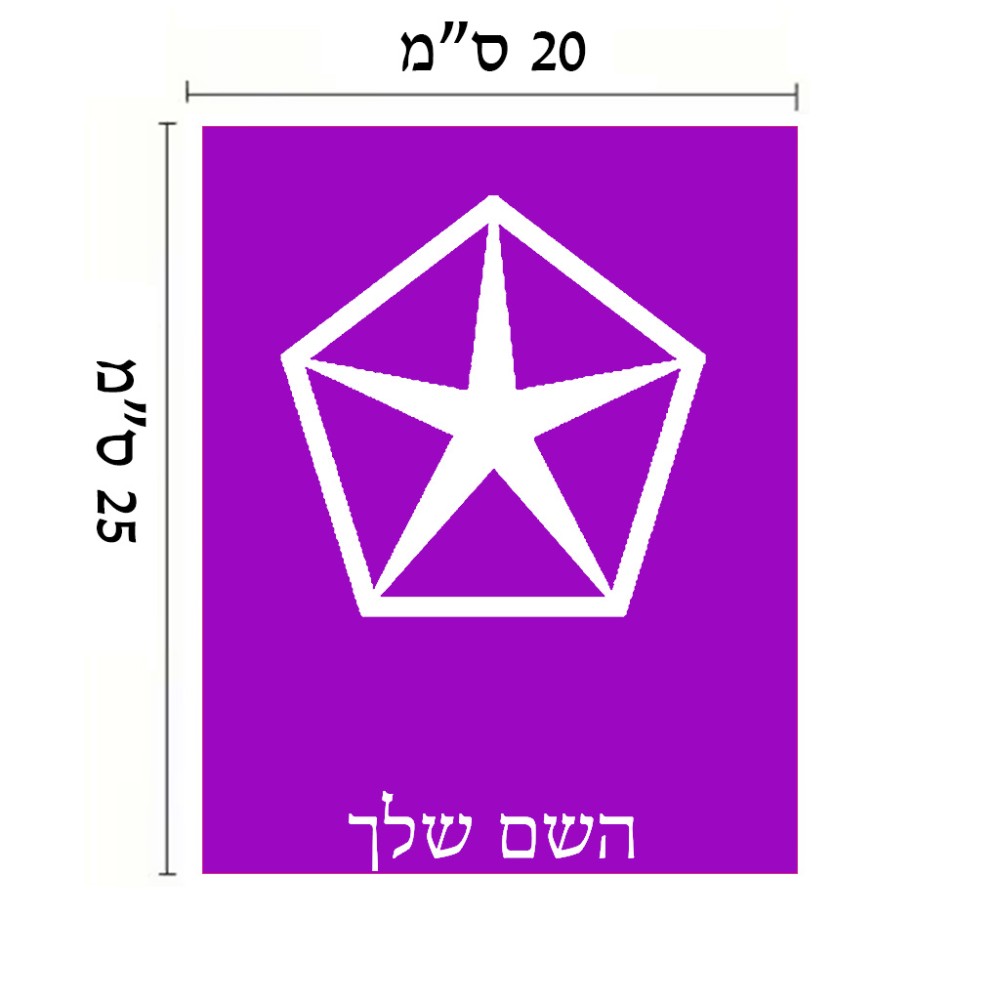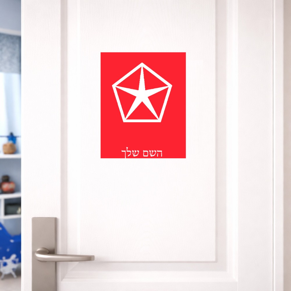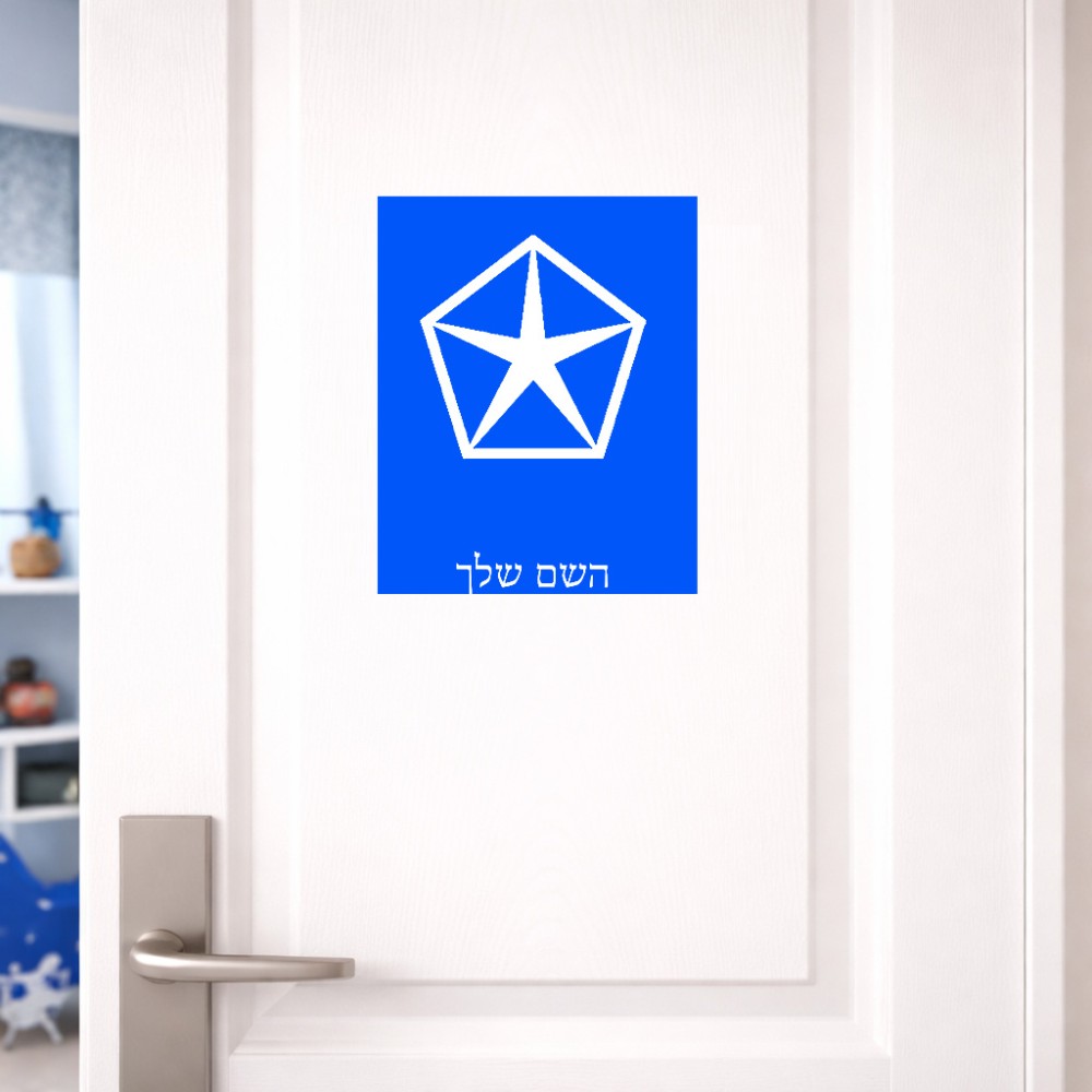 שלט אלומיניום גדול לחדר בעיצוב אישי עם השם שלך בעיצוב קרייזלר גודל השלט 20 × 25 ס"מ. את השם המבוקש ניתן לציין בהזמנה, אם לא צויין אנחנו ניצור קשר לבירור.