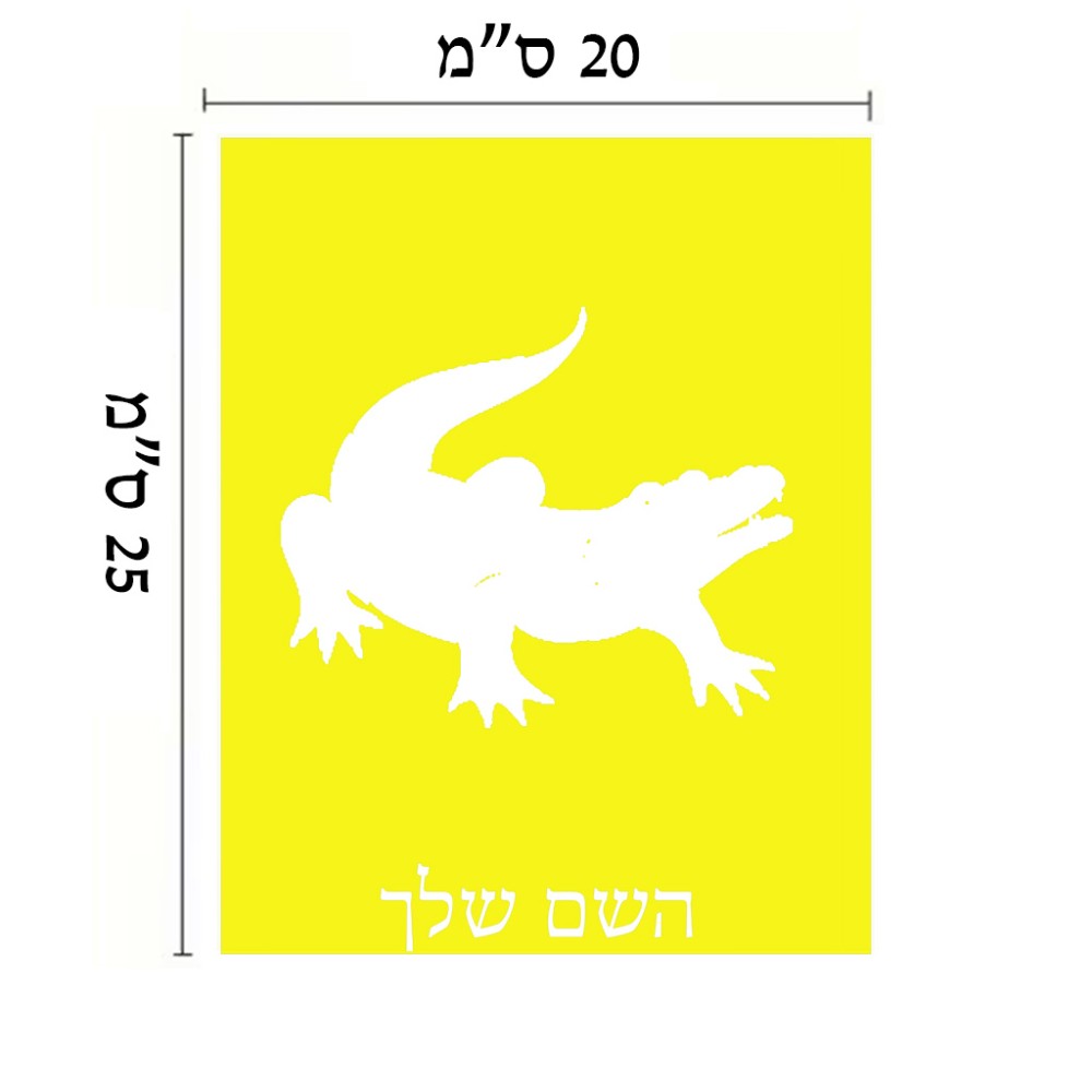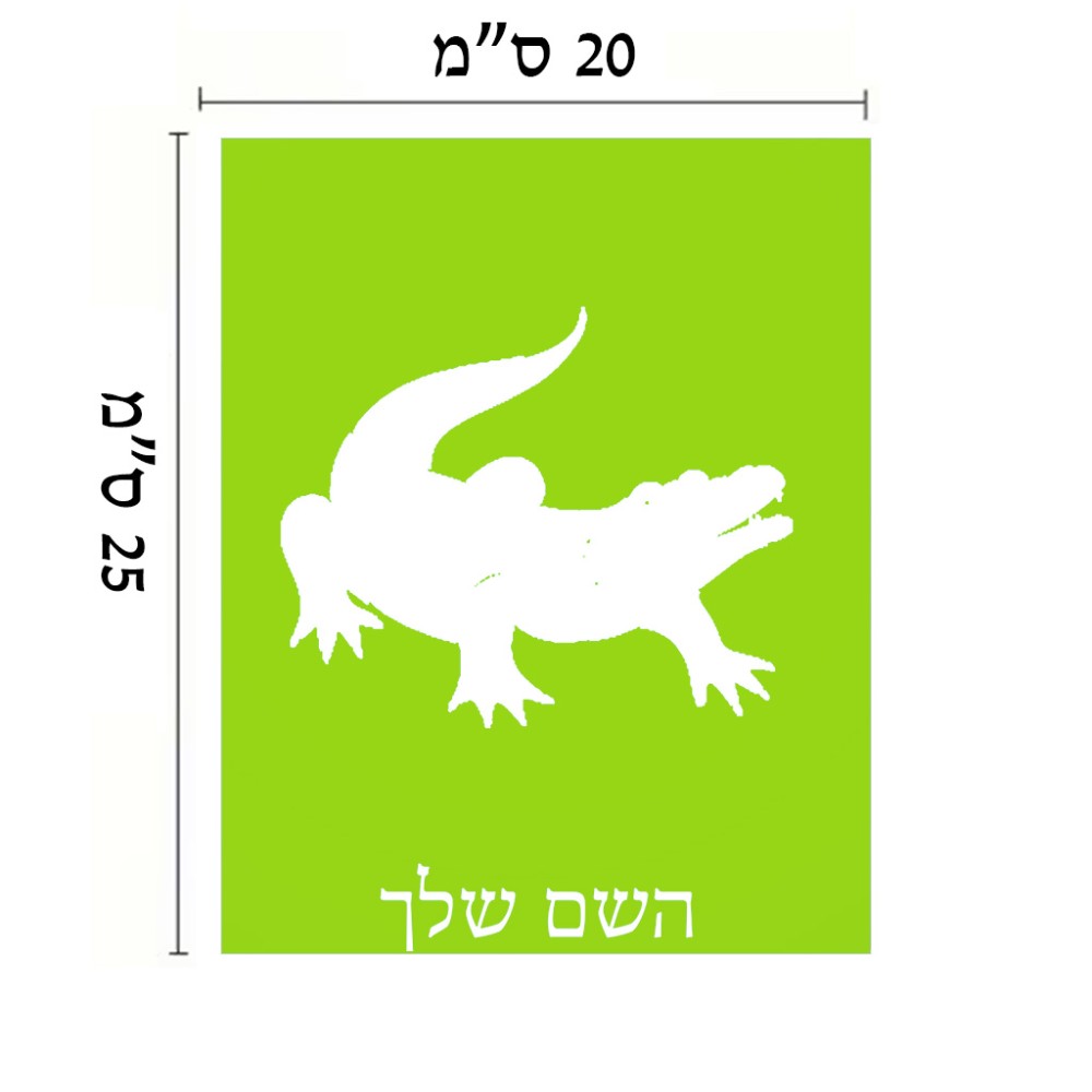 שלט אלומיניום גדול לחדר בעיצוב אישי עם השם שלך בעיצוב תנין גודל השלט 20 × 25 ס"מ. את השם המבוקש ניתן לציין בהזמנה, אם לא צויין אנחנו ניצור קשר לבירור.