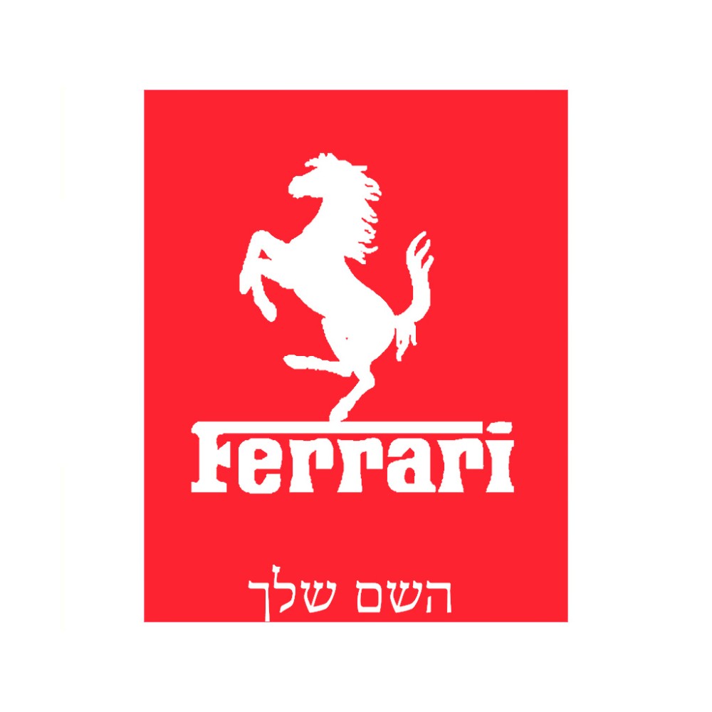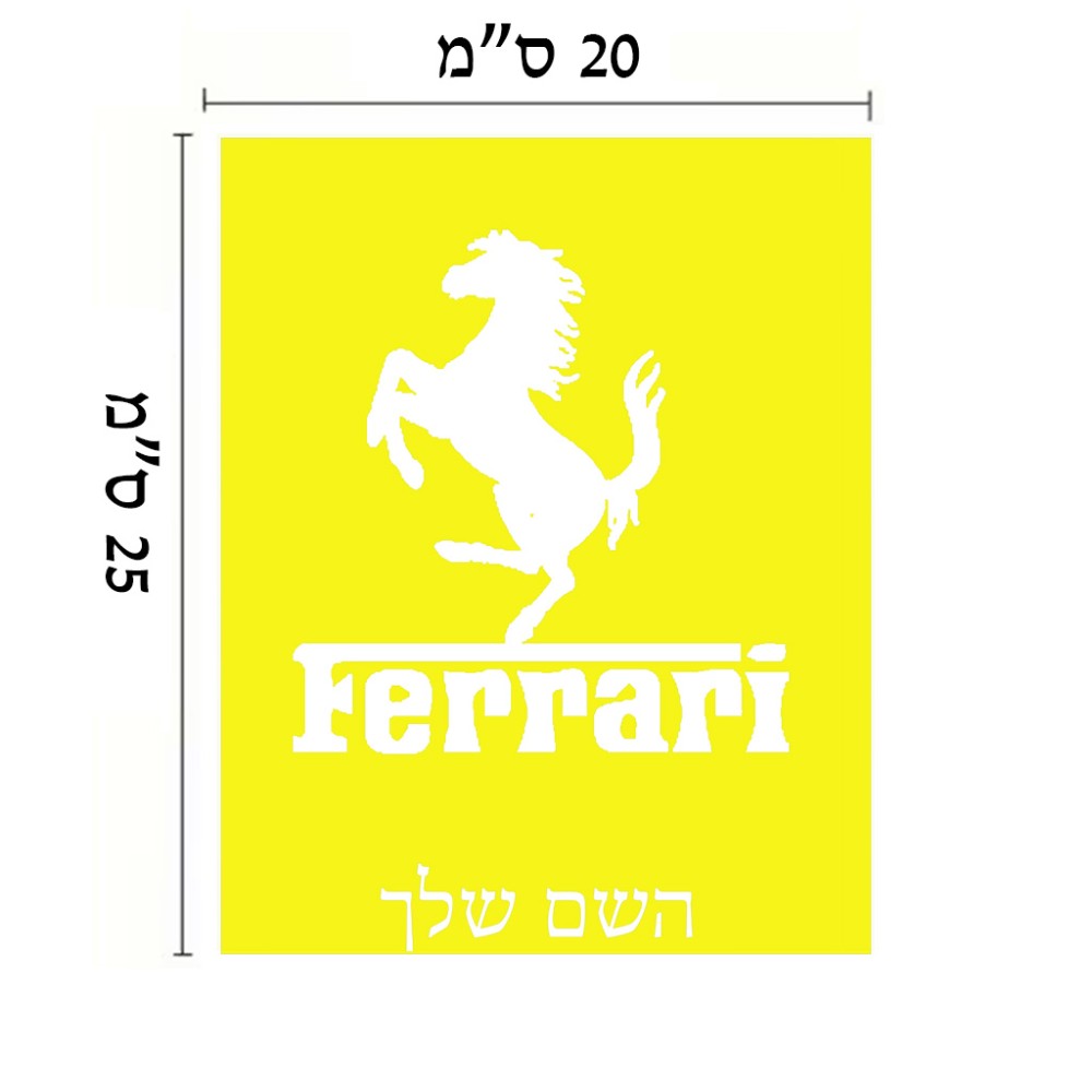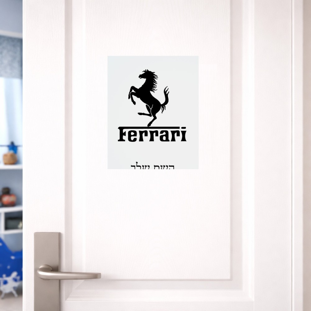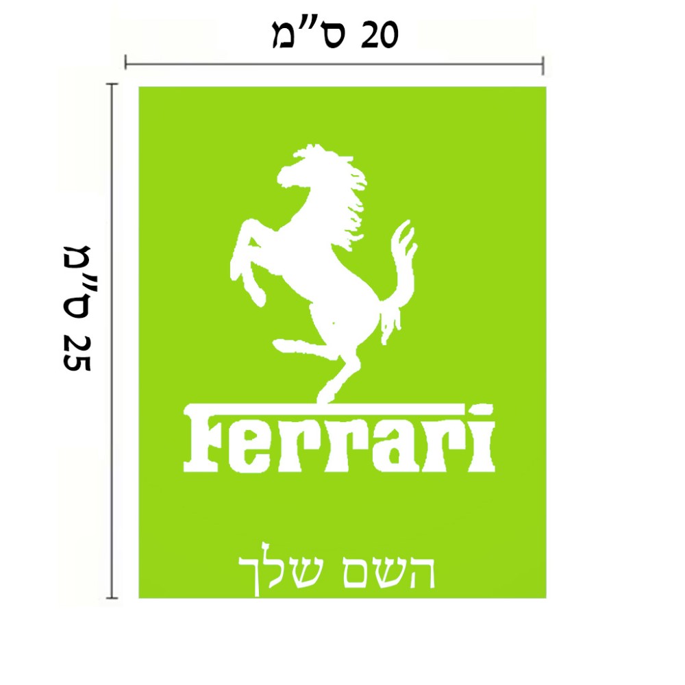 שלט אלומיניום גדול לחדר בעיצוב אישי עם השם שלך בעיצוב פרארי גודל השלט 20 × 25 ס"מ. את השם המבוקש ניתן לציין בהזמנה, אם לא צויין אנחנו ניצור קשר לבירור.