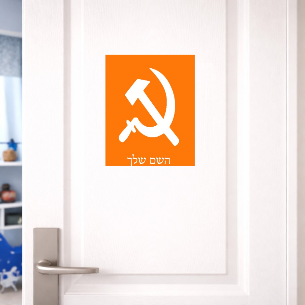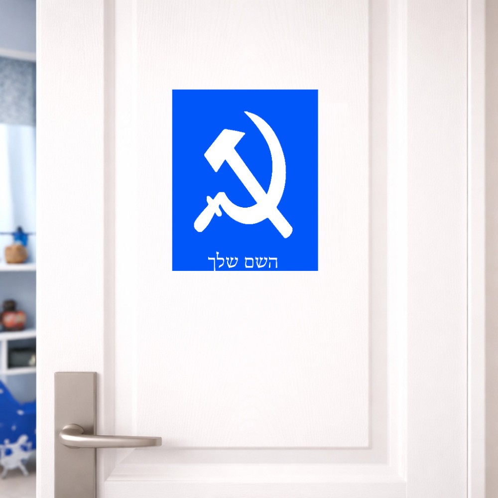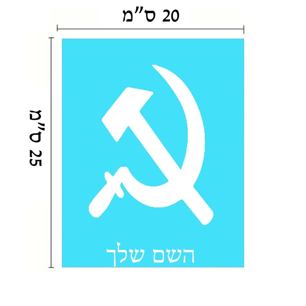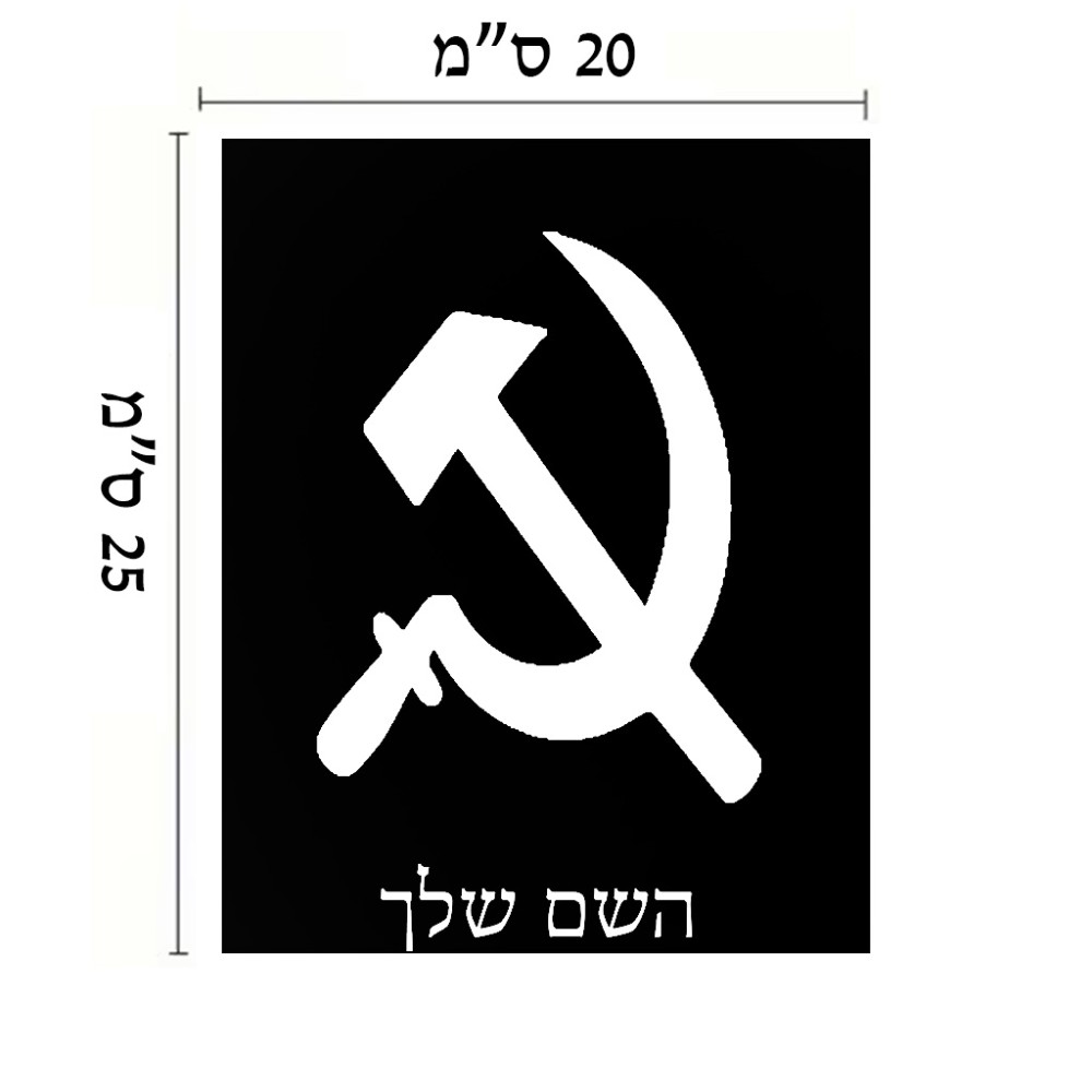 שלט אלומיניום גדול לחדר בעיצוב אישי עם השם שלך בעיצוב פטיש ומגל גודל השלט 20 × 25 ס"מ. את השם המבוקש ניתן לציין בהזמנה, אם לא צויין אנחנו ניצור קשר לבירור.